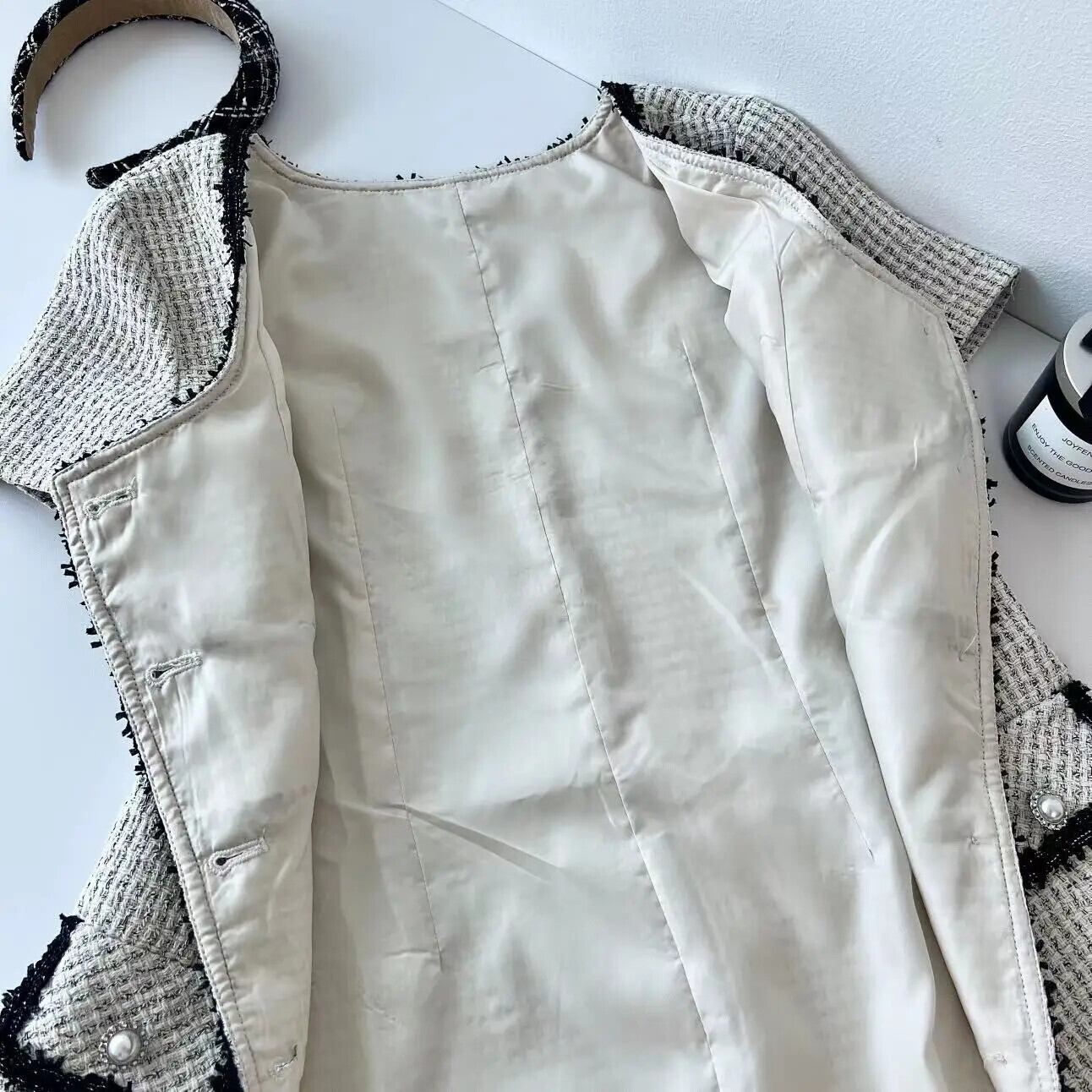 洗濯で取れるような汚れや簡単に直せる程度のボタンの緩み、縫製の歪み、シワ、多少のほつれなどは(クレーム対象外)になりますので、予めご了承ください。