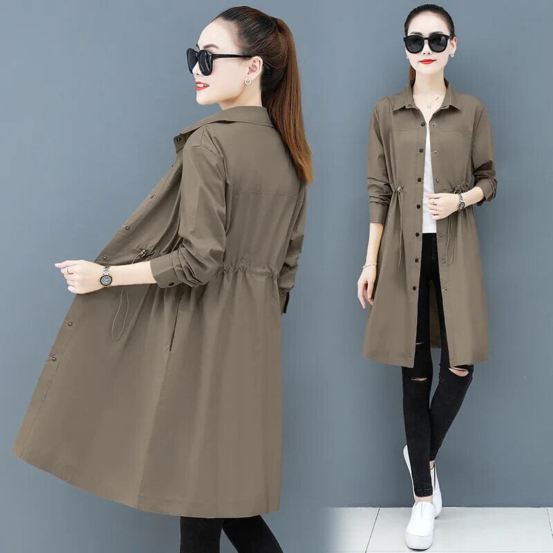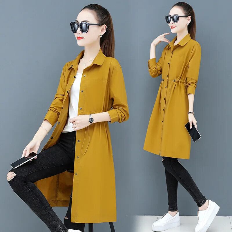 春秋中年ロングウインドブレーカーマザーカーキイエローブラックレディーストレンチ スプリング 春物 オータム 秋物