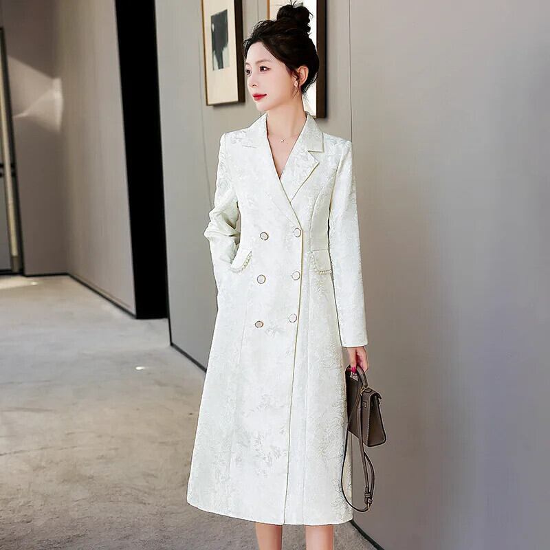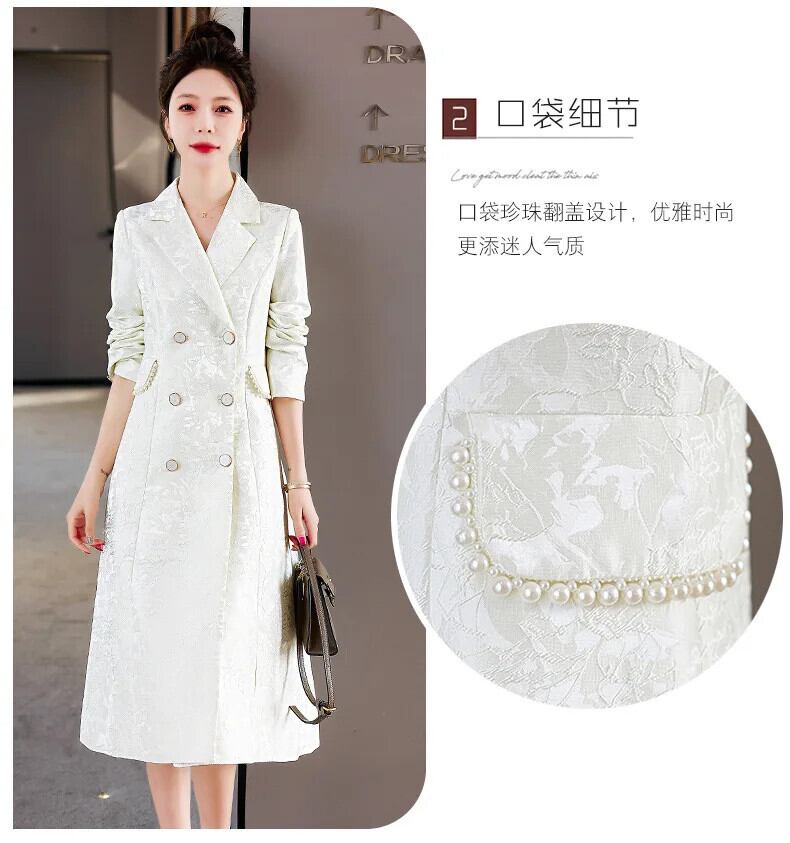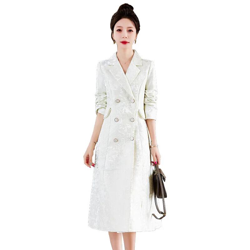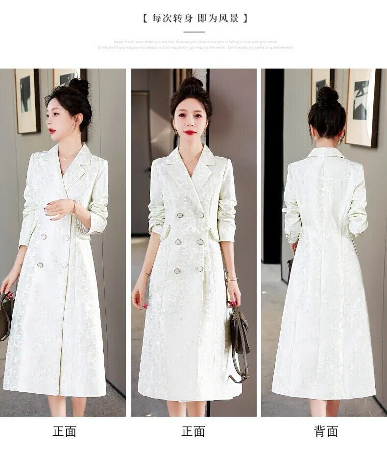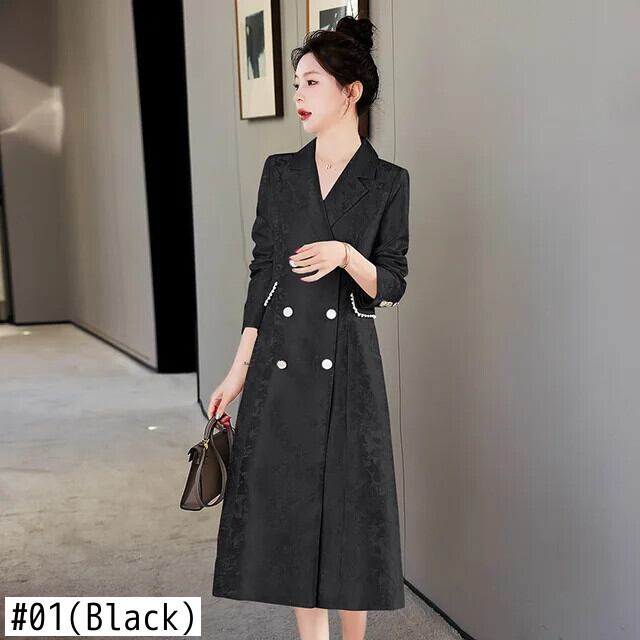 春秋レディーススリムフィットロングウインドブレーカーダブルブレストコートトレンチ スプリング 春物 オータム 秋物
