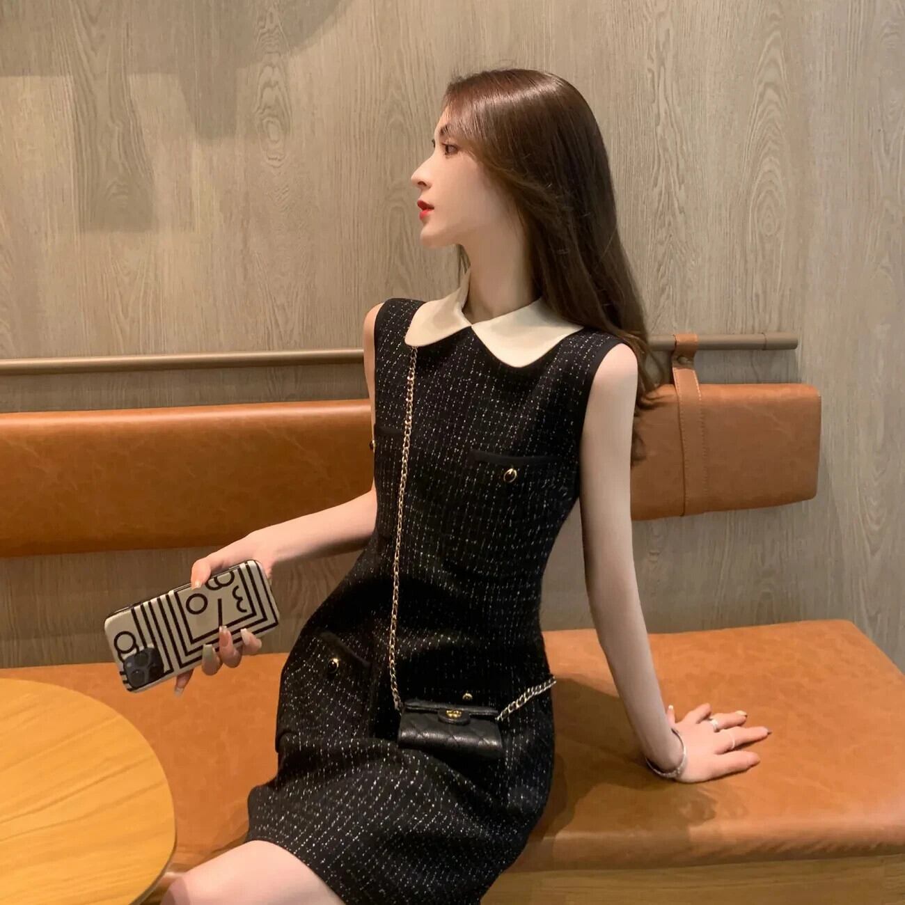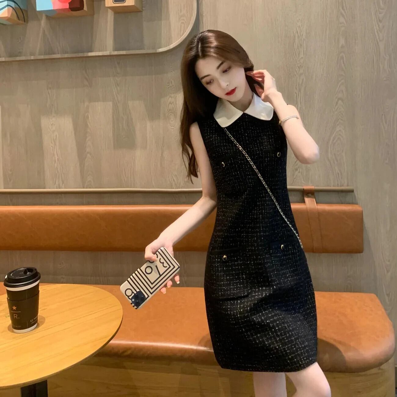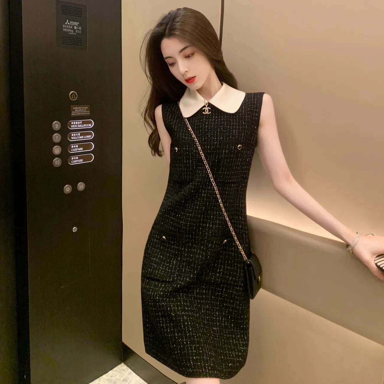夏香り人形ネックニット黒タンクトップドレス Vestidos パラローブ s ブラック サマー 夏物