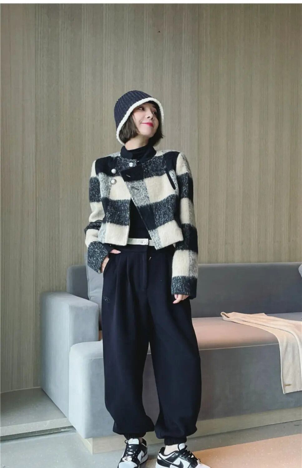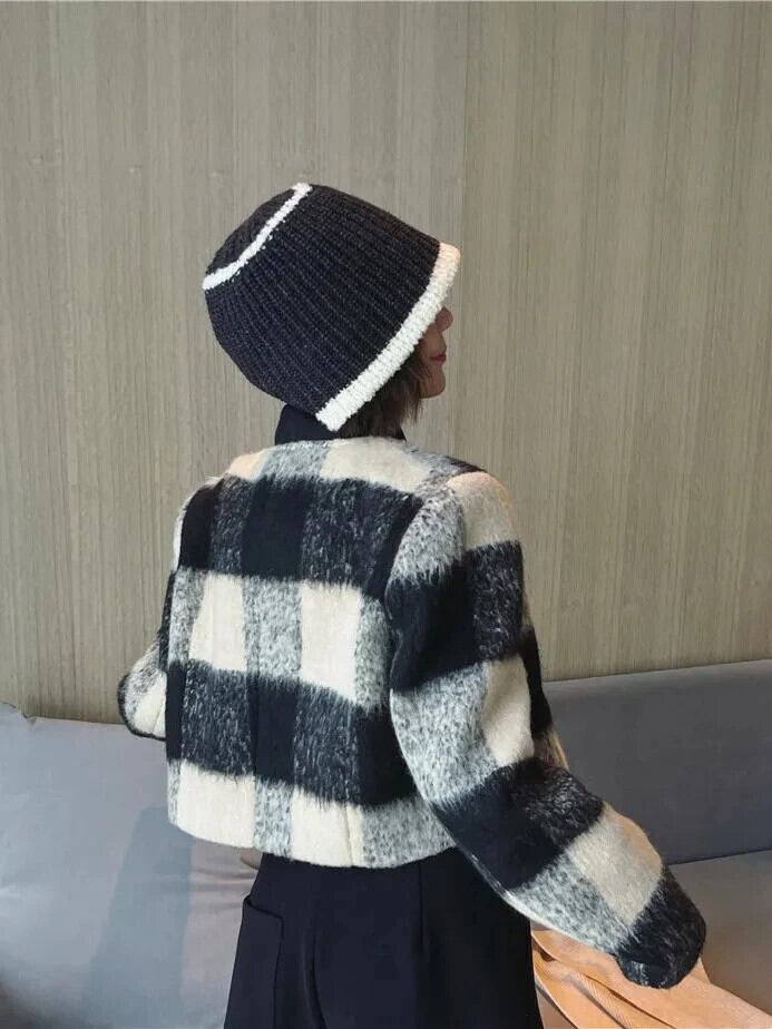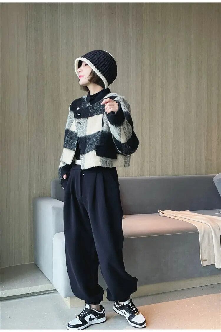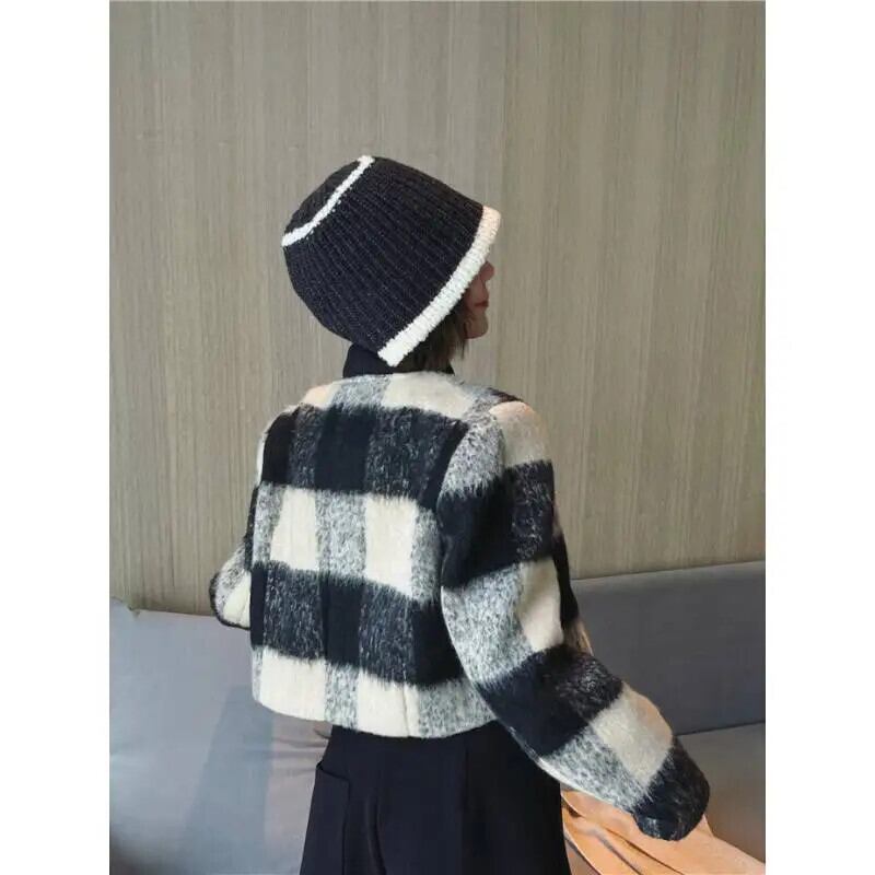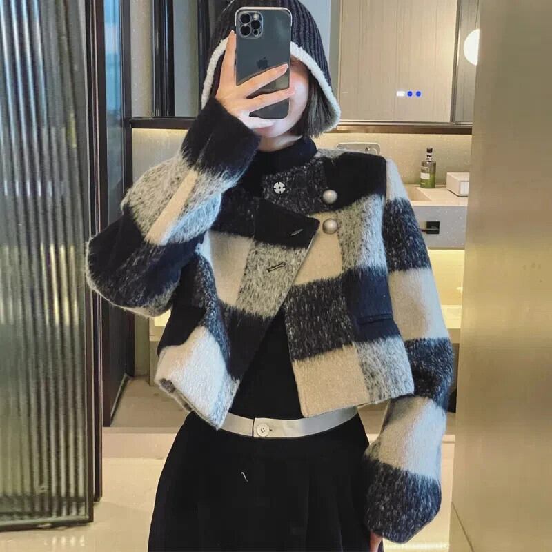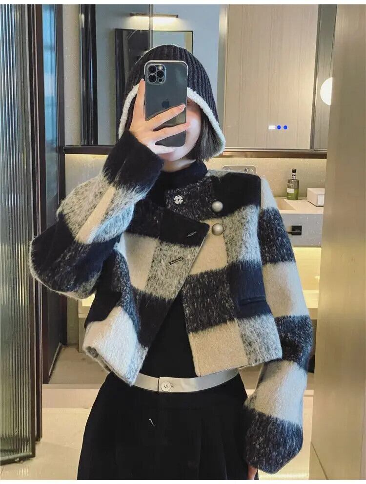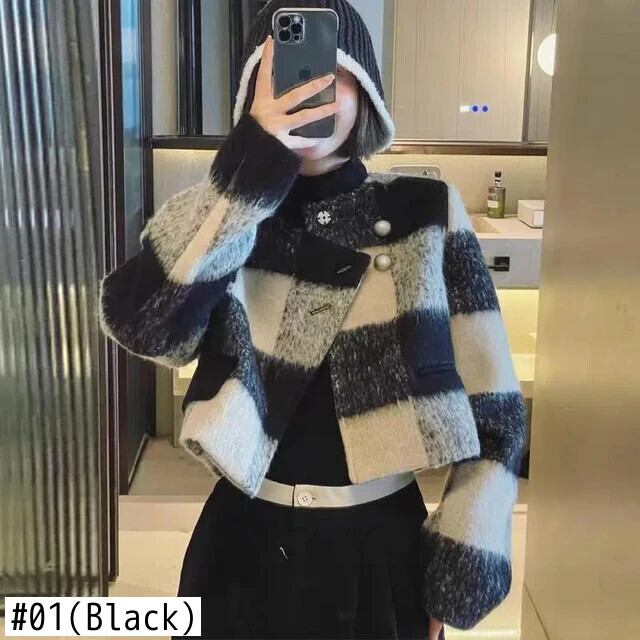 レディースシックフレンチチェック柄パッチワークツイードショートコート春秋ジャケット スプリング 春物 オータム 秋物