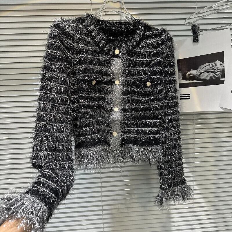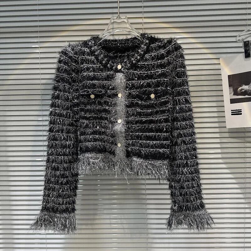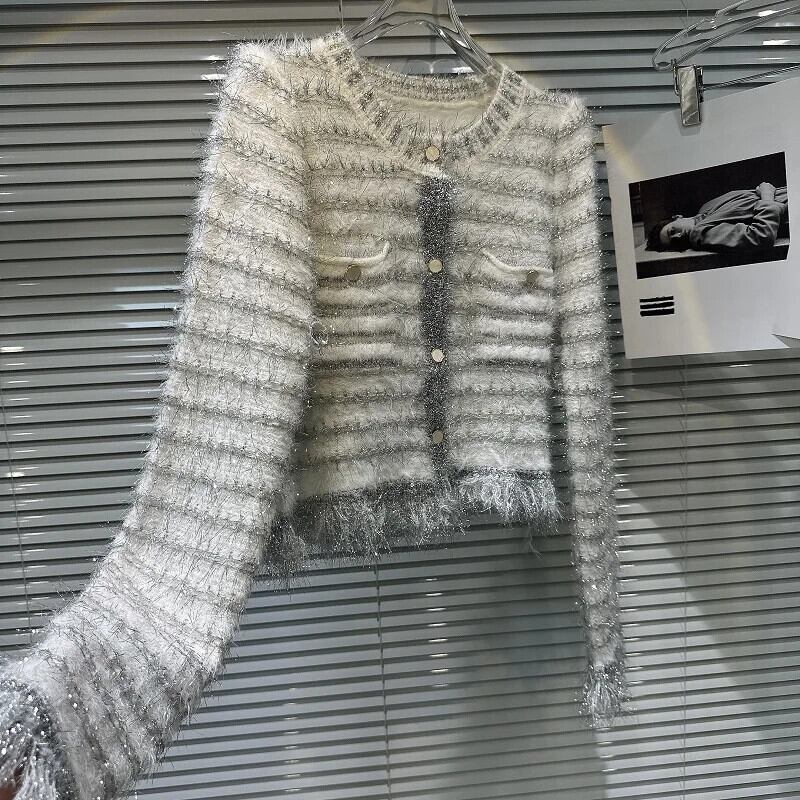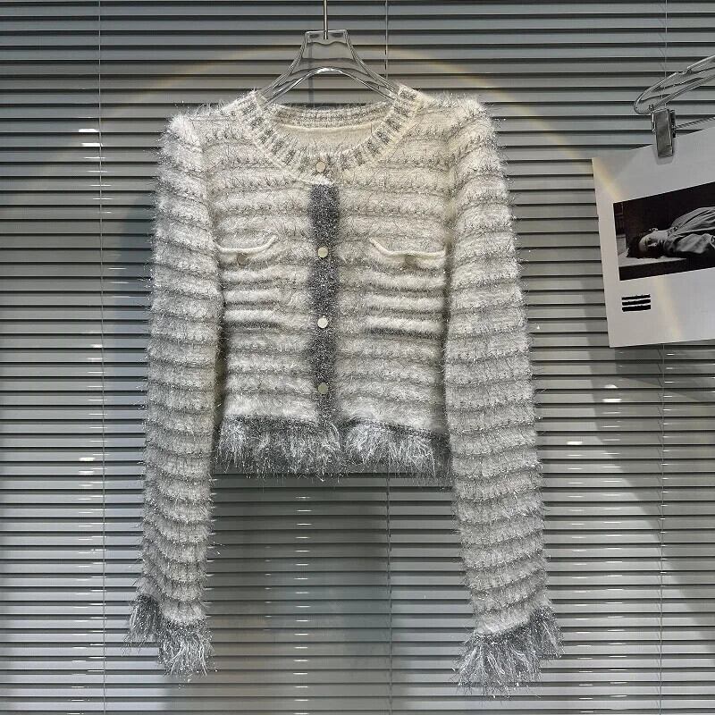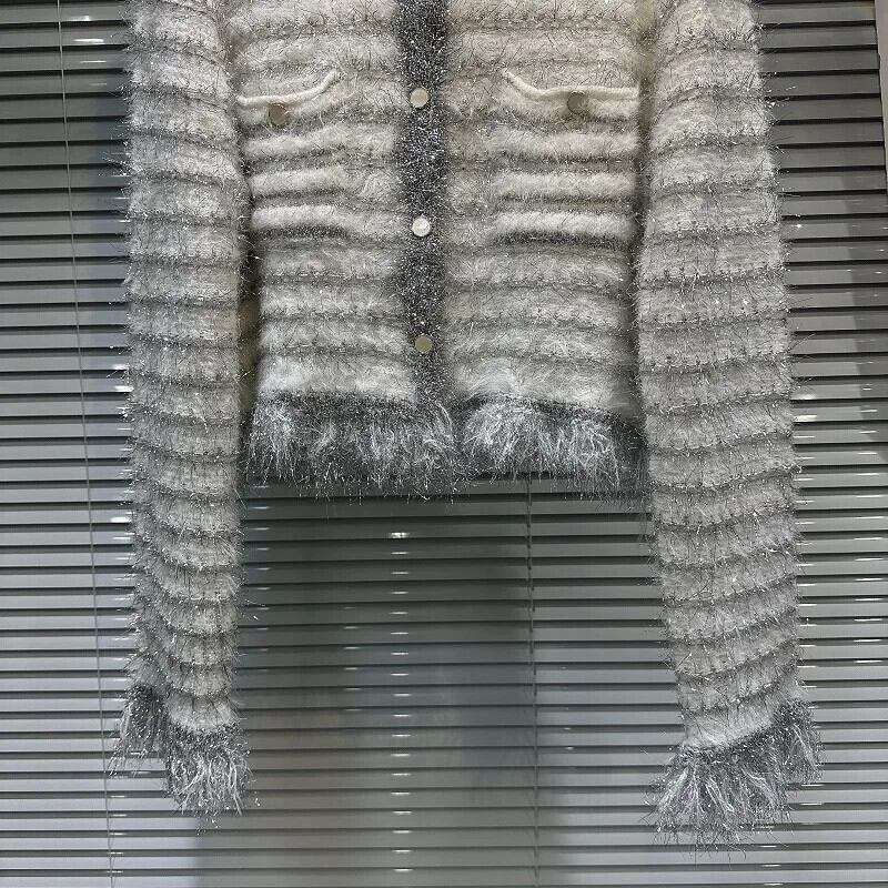 秋香り明るいポケットぬいぐるみニットセーターぬいぐるみコートカーディガン オータム 秋物 シルク
