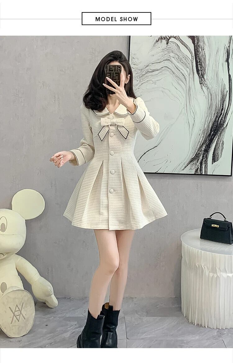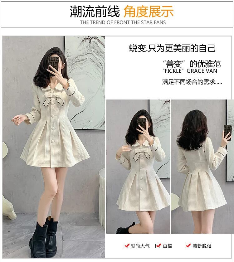 秋冬長袖香り良い風ウールドールネックドレス ロング オータム 秋物 ウィンター 冬物