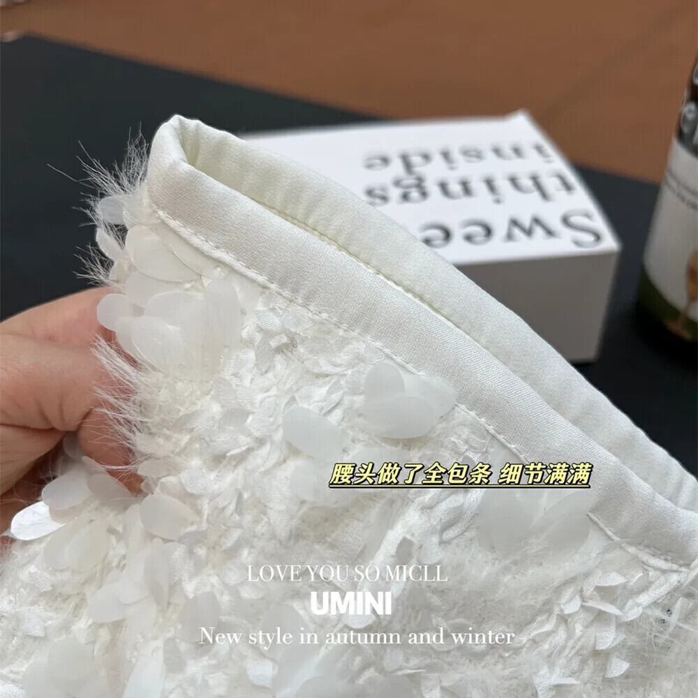 2024 レディース春秋ウエスト A ラインホワイトスパンコールスカート スプリング 春物 Aライン