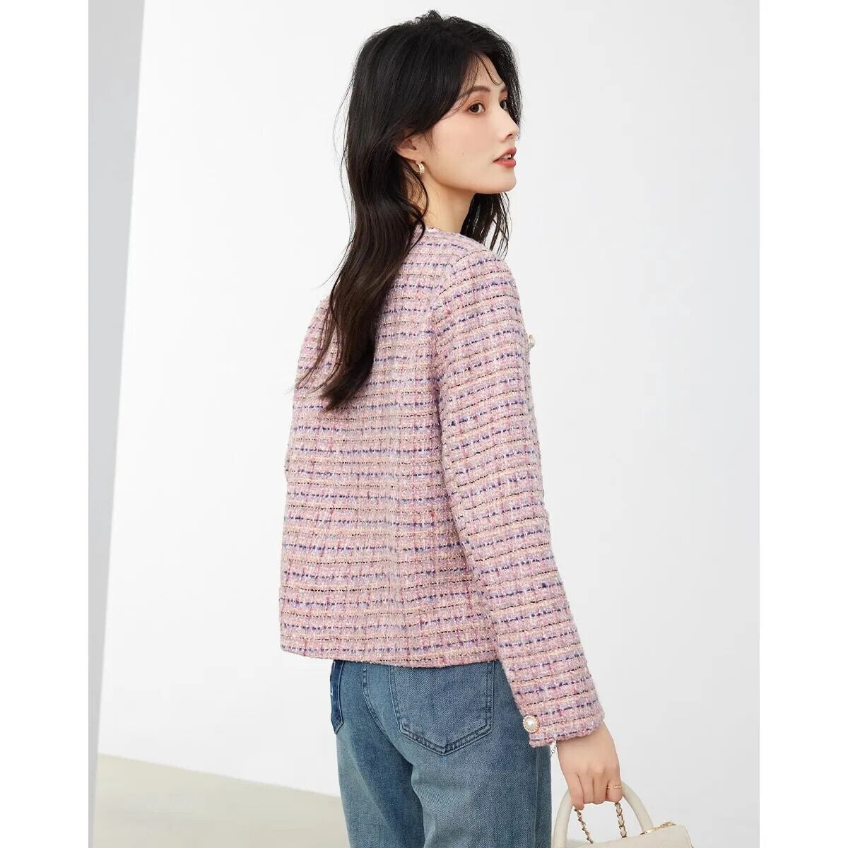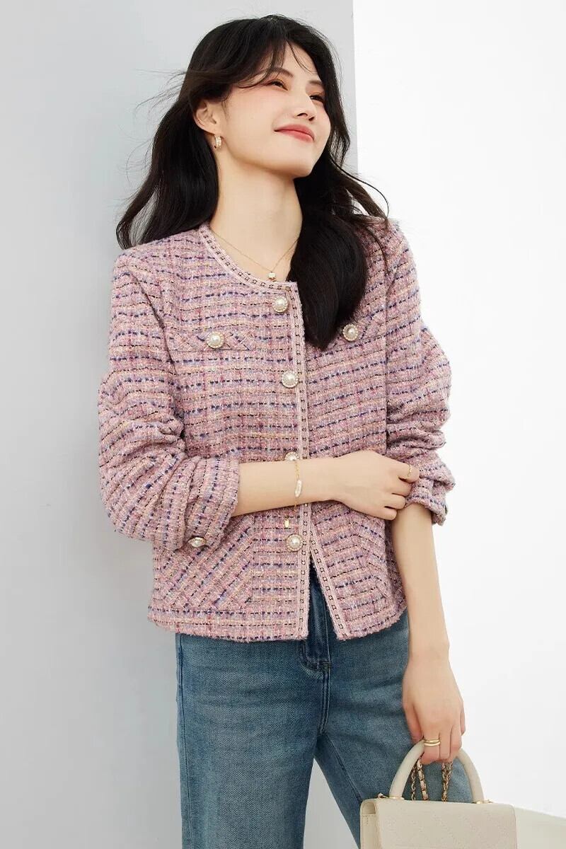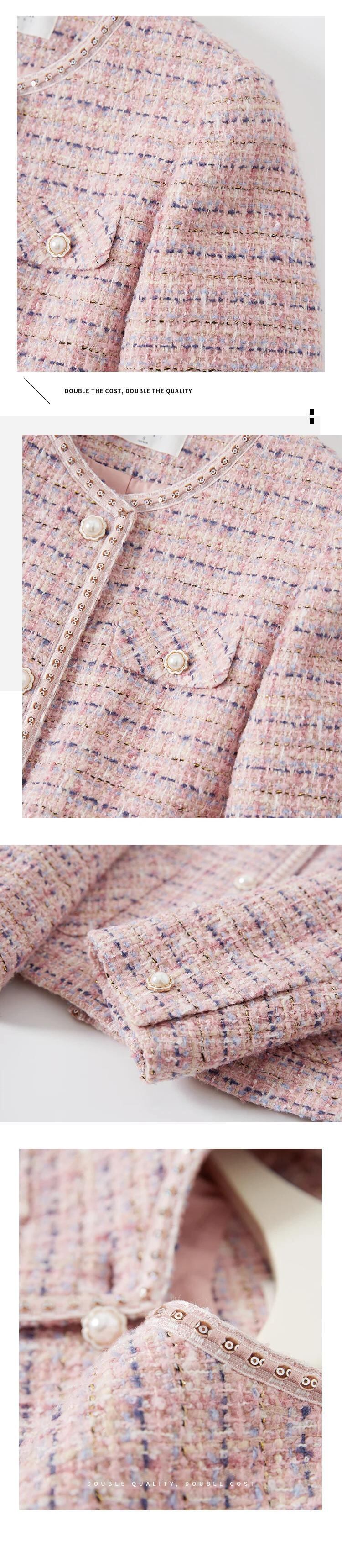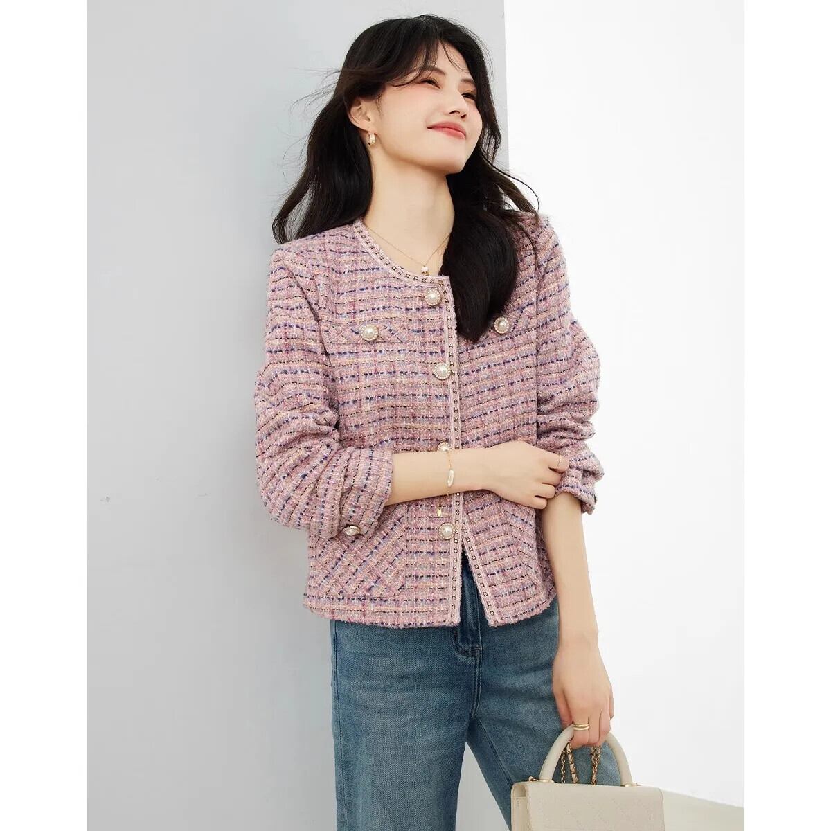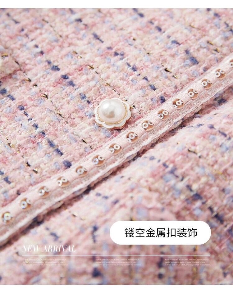 ショート春秋ビーズリボン粗いツイード香りジャケット甘いパーティーコート 大人ガーリー スウィート キュート カジュアル スプリング 春物 オータム 秋物