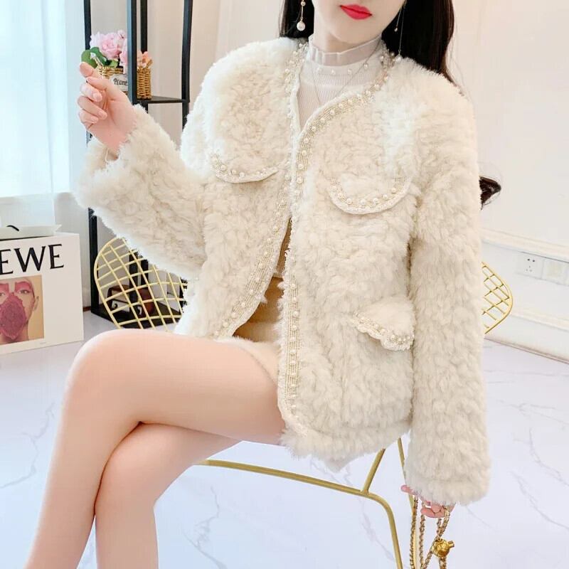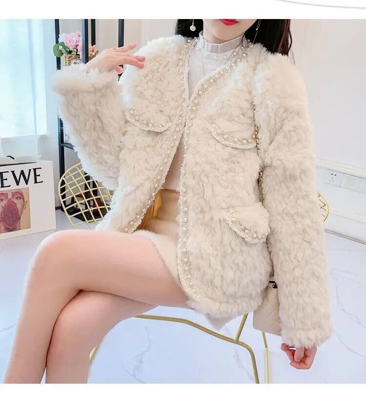 ウールコートミディアムロング秋冬甘いファーワンピース暖かいジャケット模造子羊毛アウター 大人ガーリー スウィート キュート カジュアル オータム 秋物 ウィンター 冬物