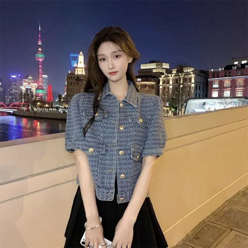 レディース夏レトロデニム半袖コートレディースルーズフィットジャケット ショート ハーフスリーブ サマー 夏物