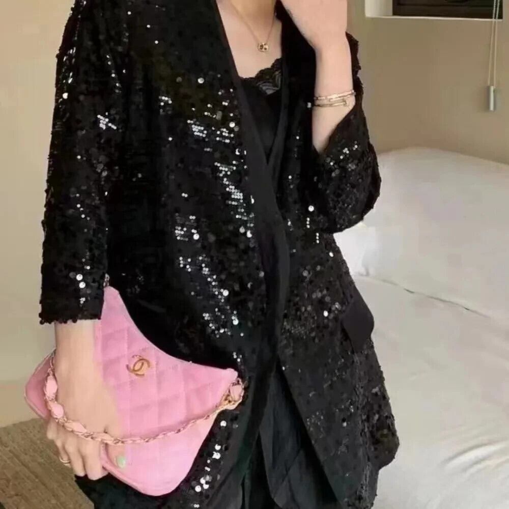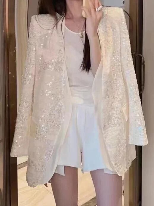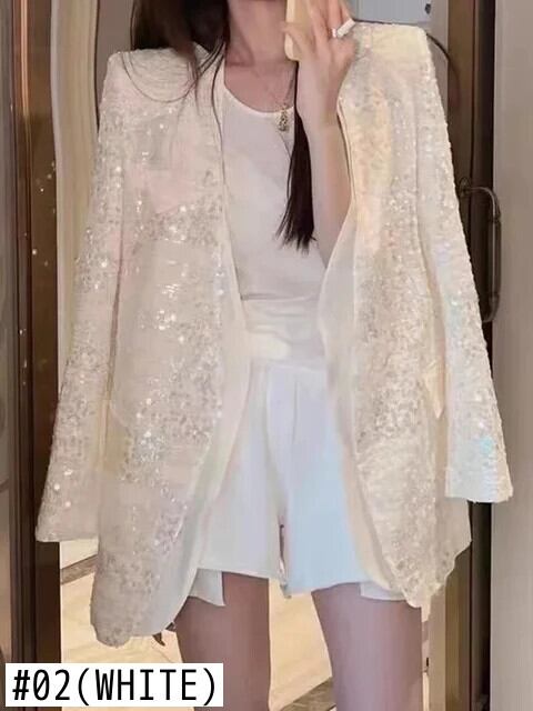 スパークリング スパンコール スーツ コート レディース 春夏 ホワイト ブラック ブレザー スプリング 春物 サマー 夏物