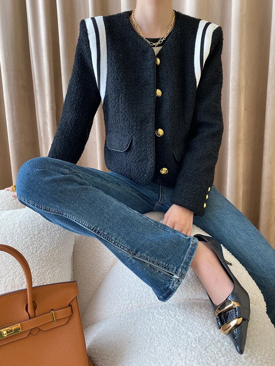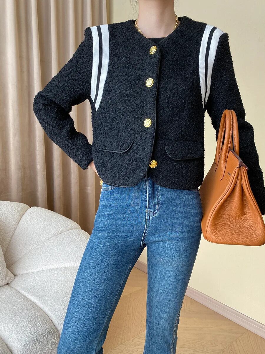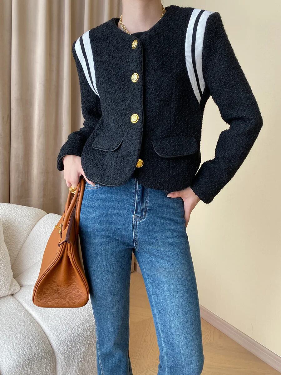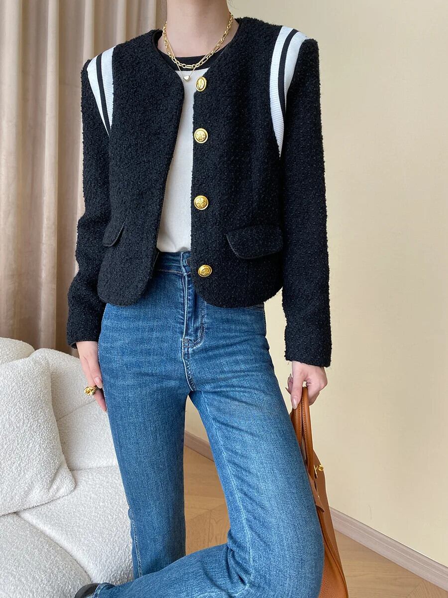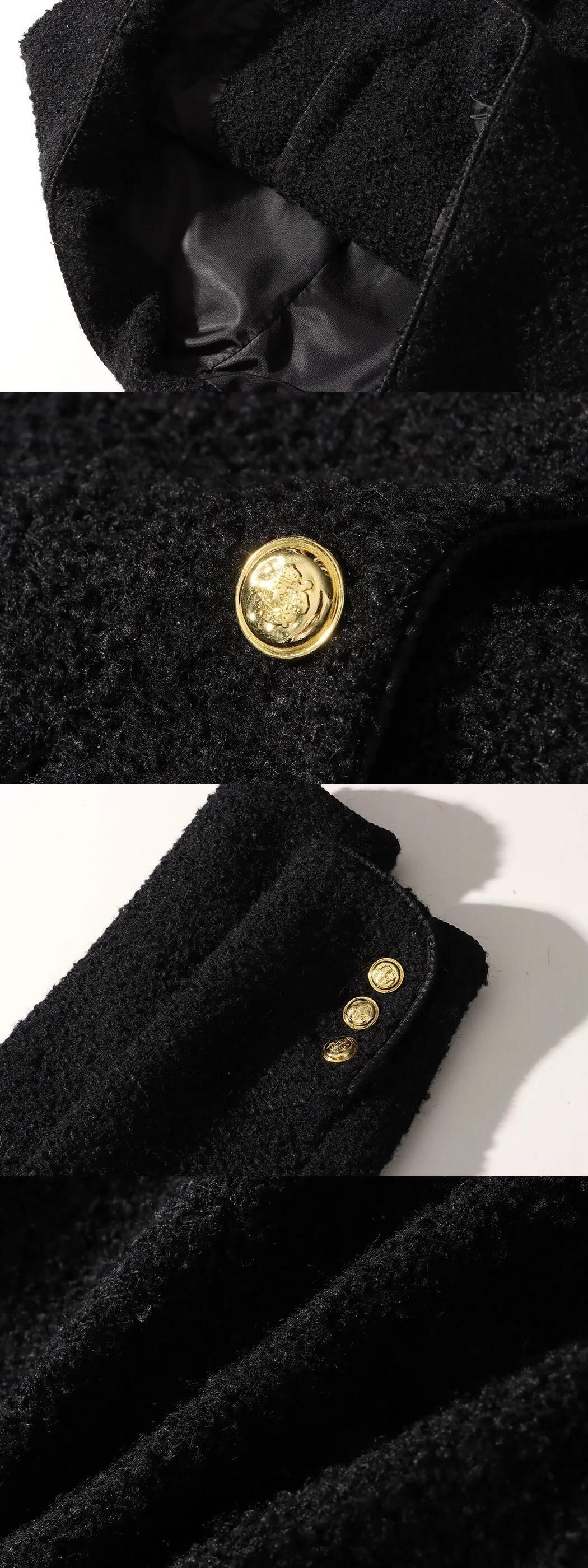 秋冬レディースウール香り粗いツイードジャケットブラックコート オータム 秋物 ウィンター 冬物