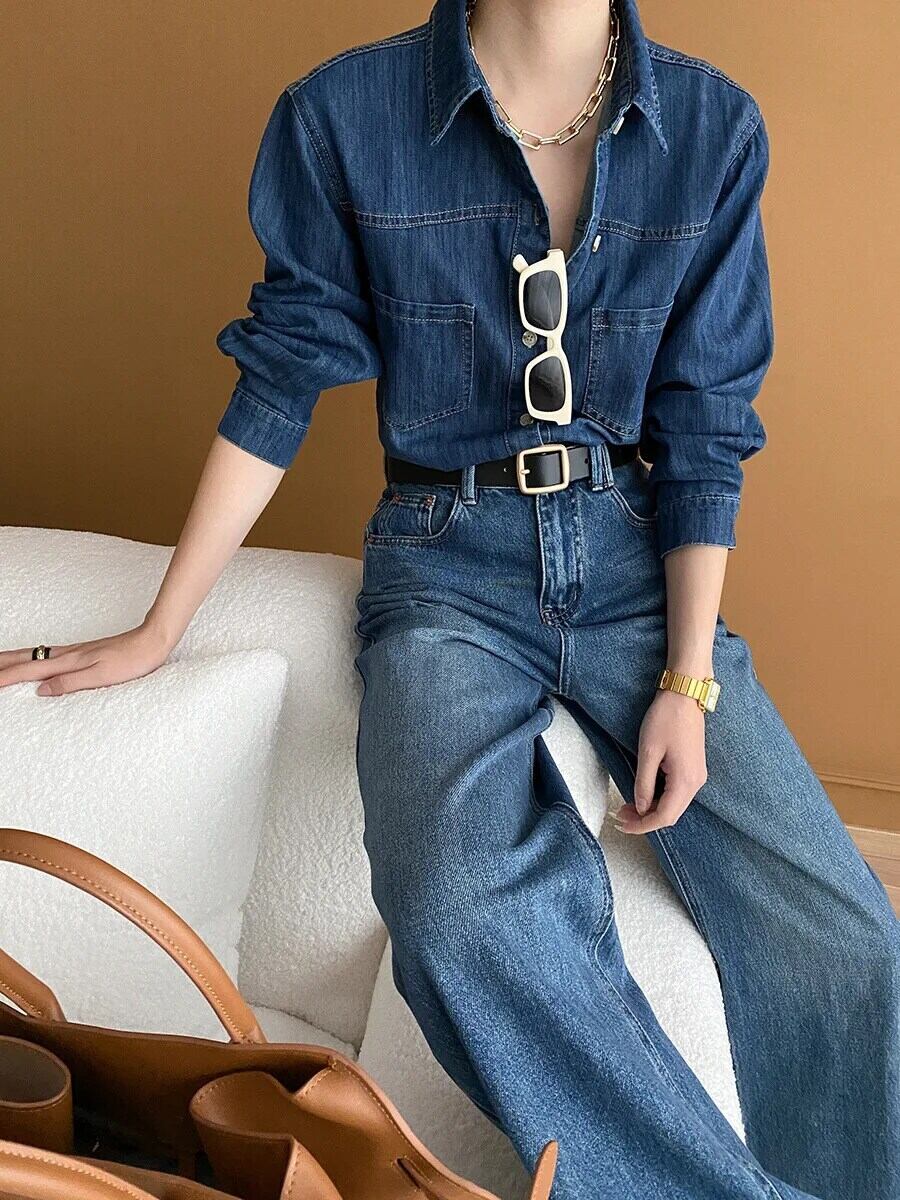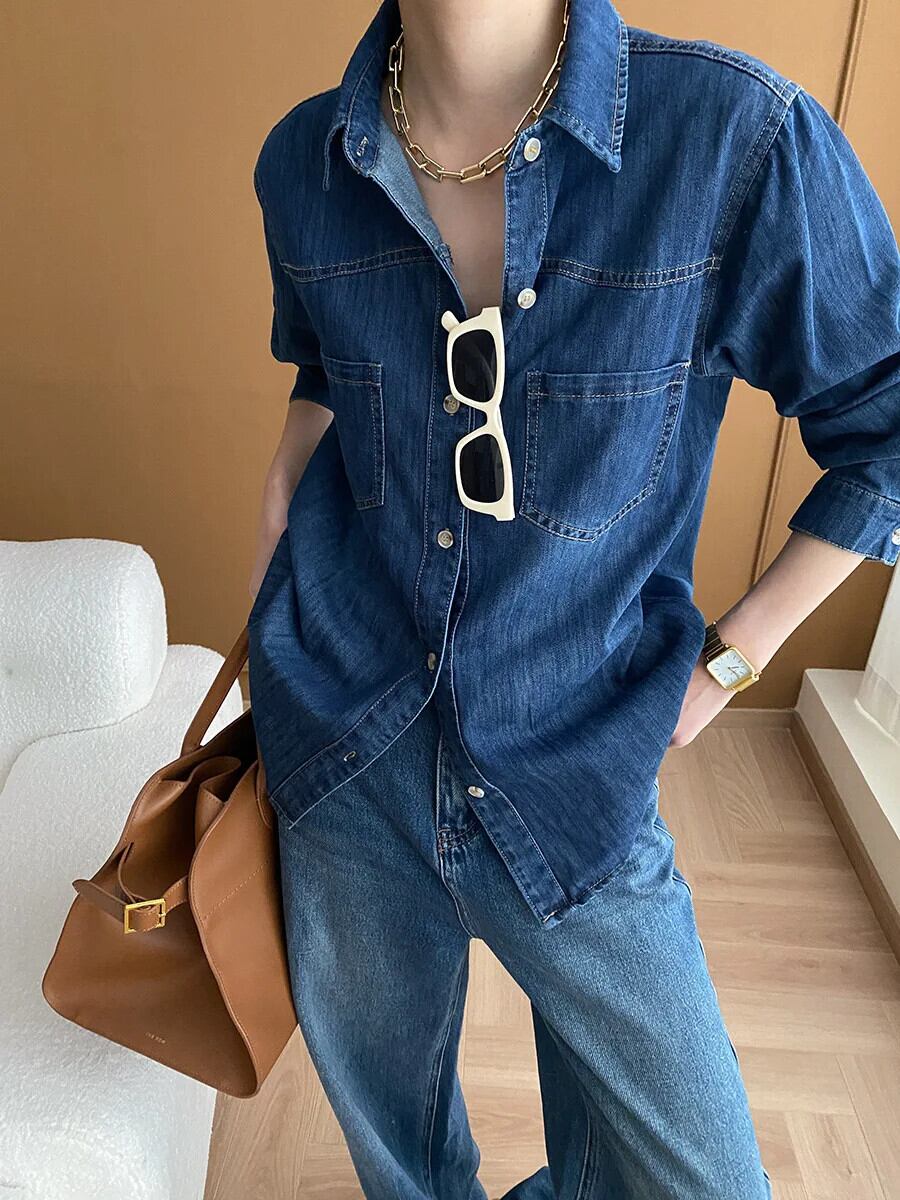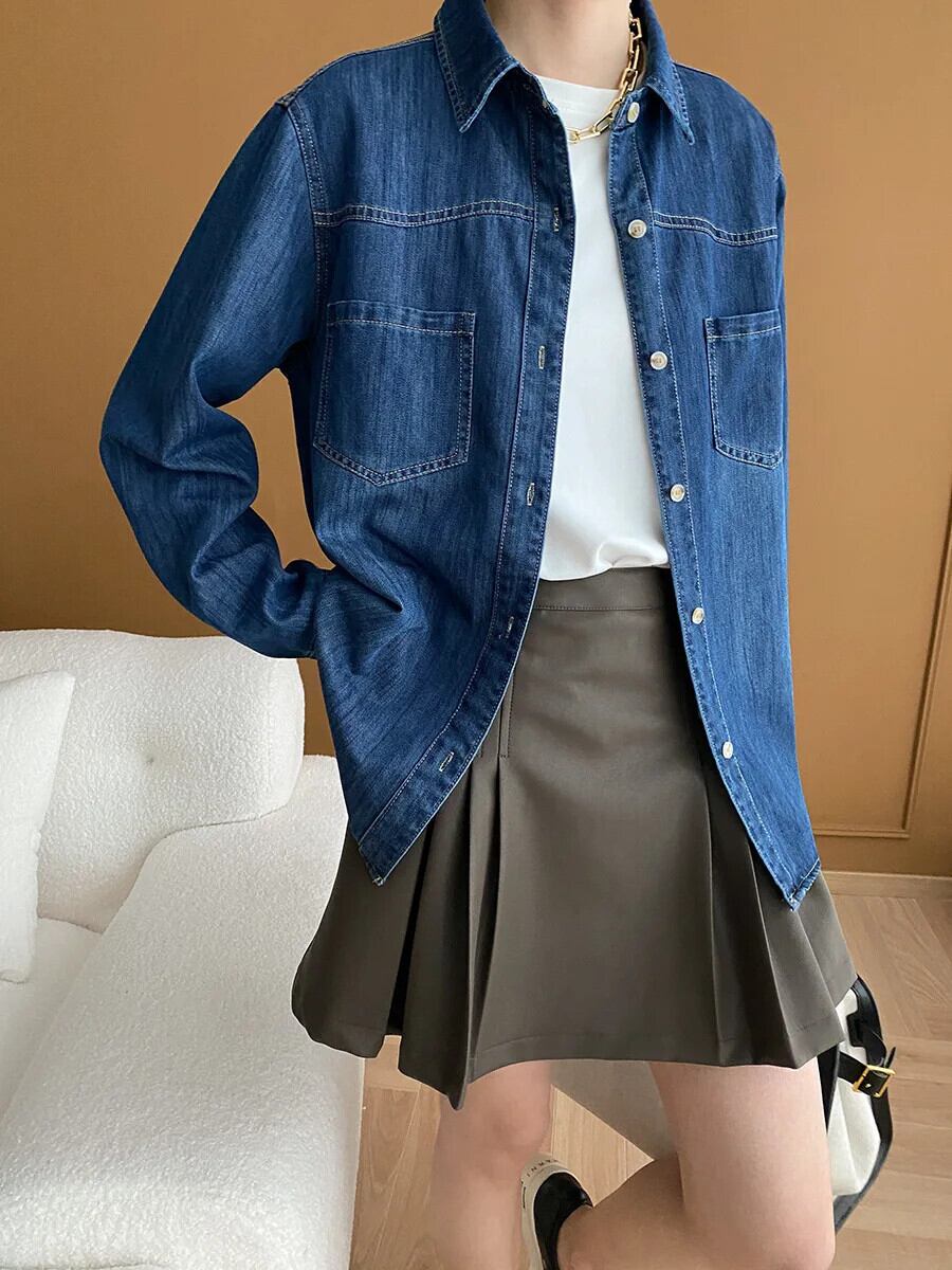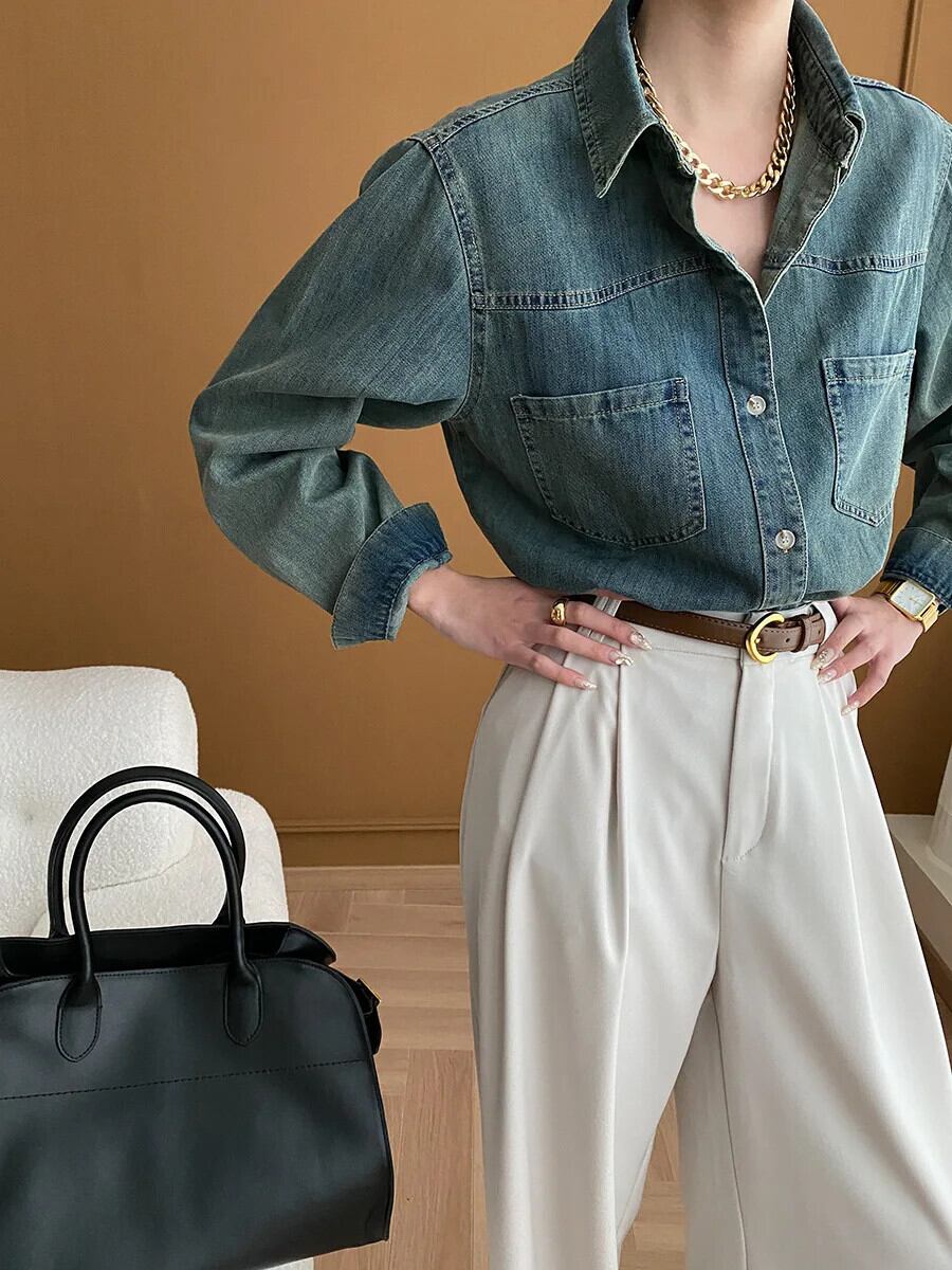 レディース 2024 春 レトロ ウォッシュド オールド フィーリング デニム シャツ スプリング 春物