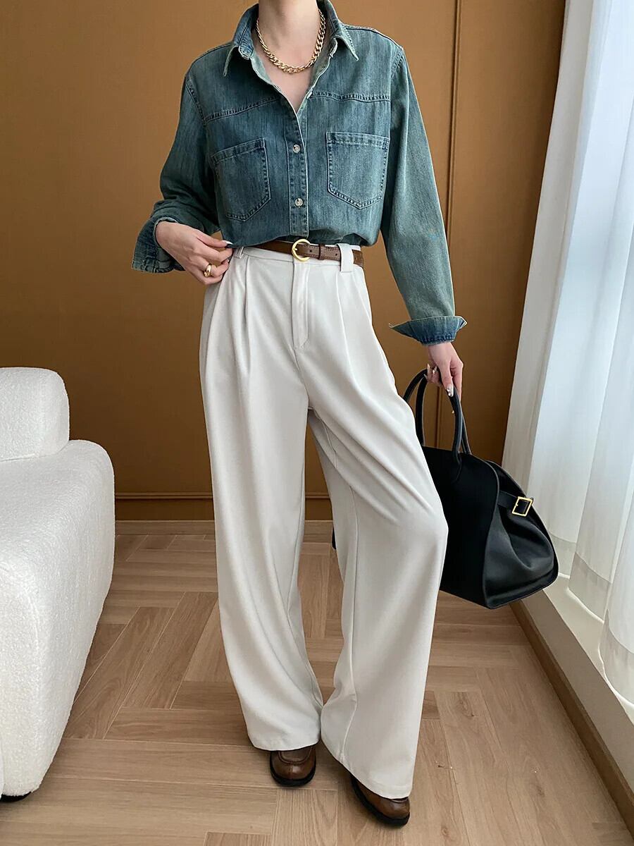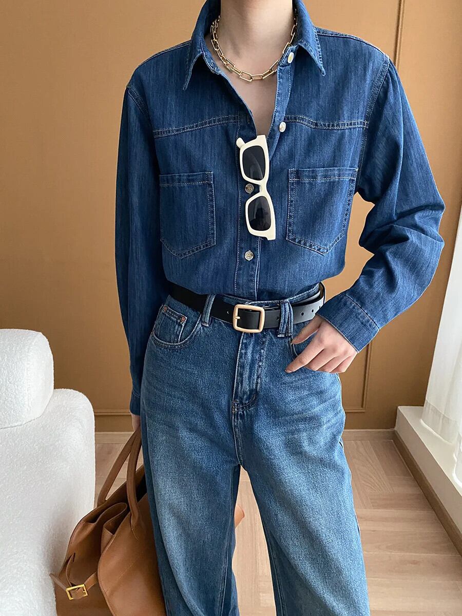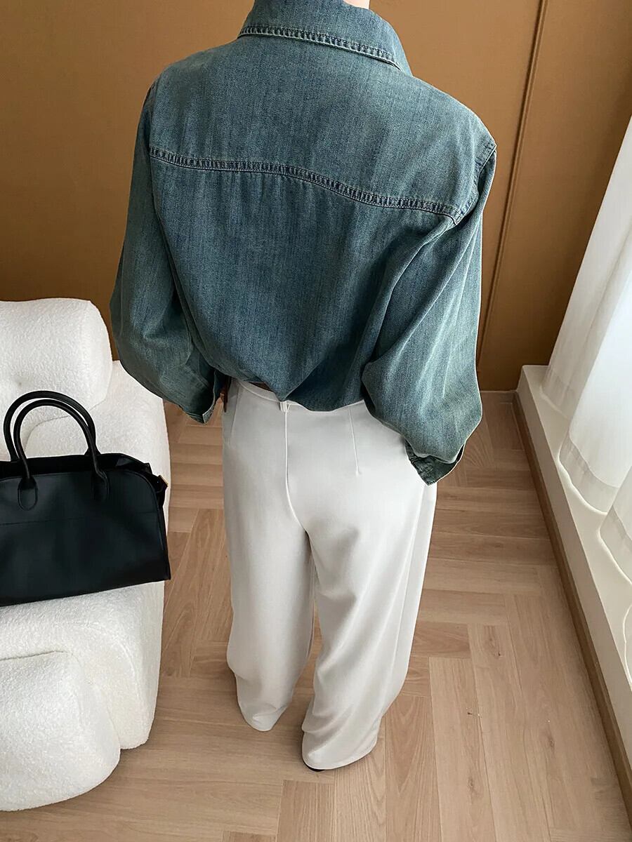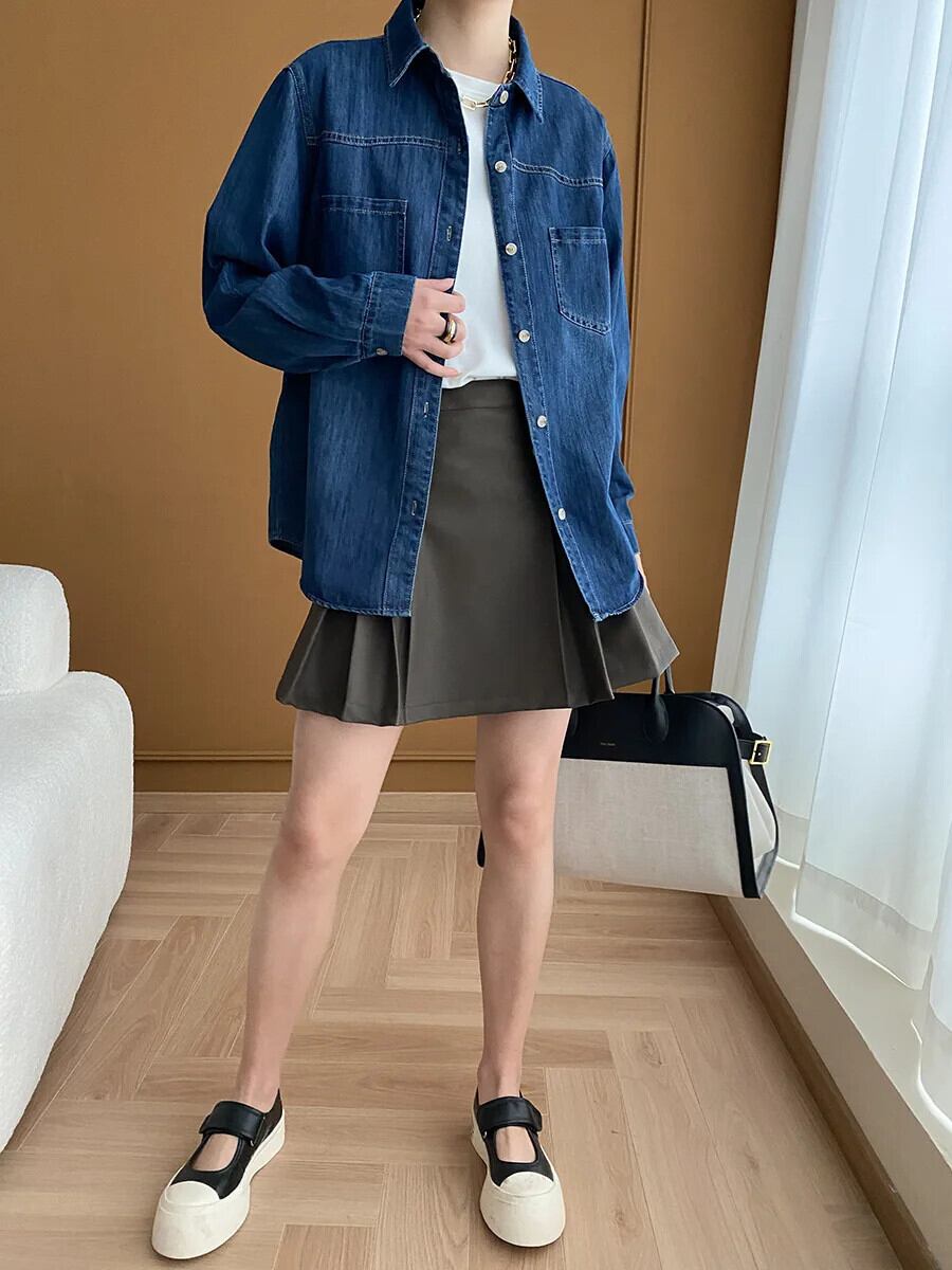 レディース 2024 春 レトロ ウォッシュド オールド フィーリング デニム シャツ スプリング 春物