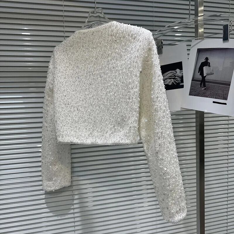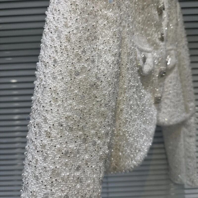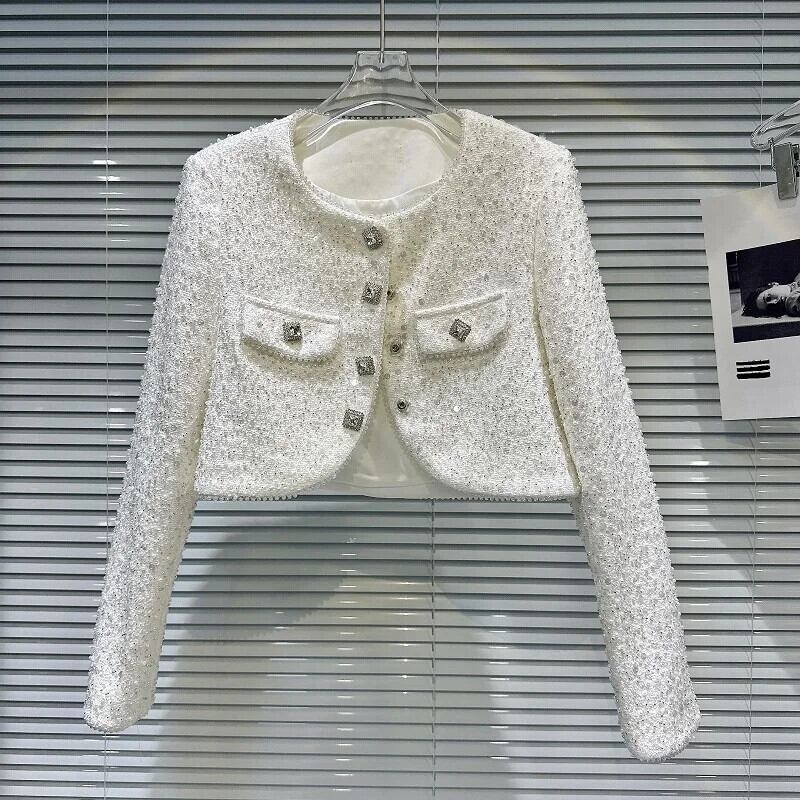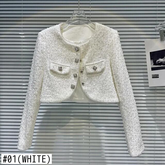 秋香りダイヤモンドメタルバックルパールネイルビーズショートコートジャケット オータム 秋物 真珠