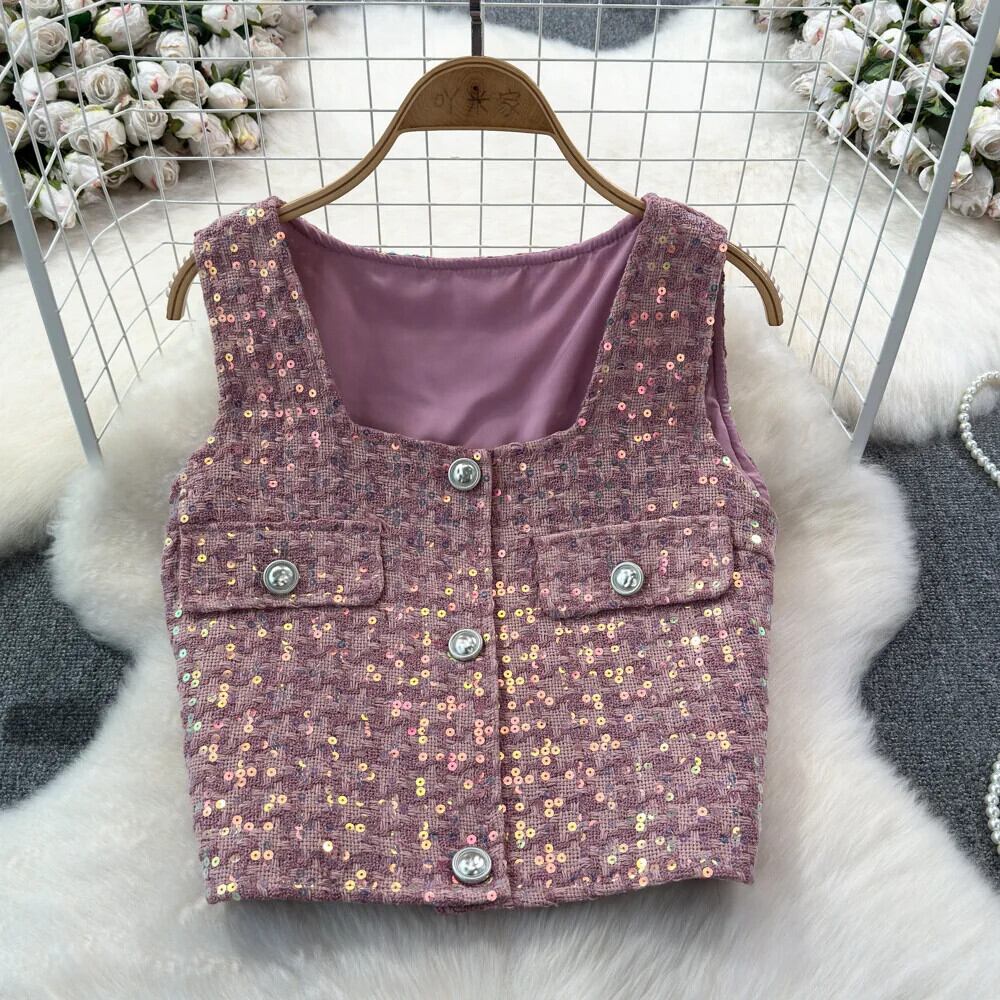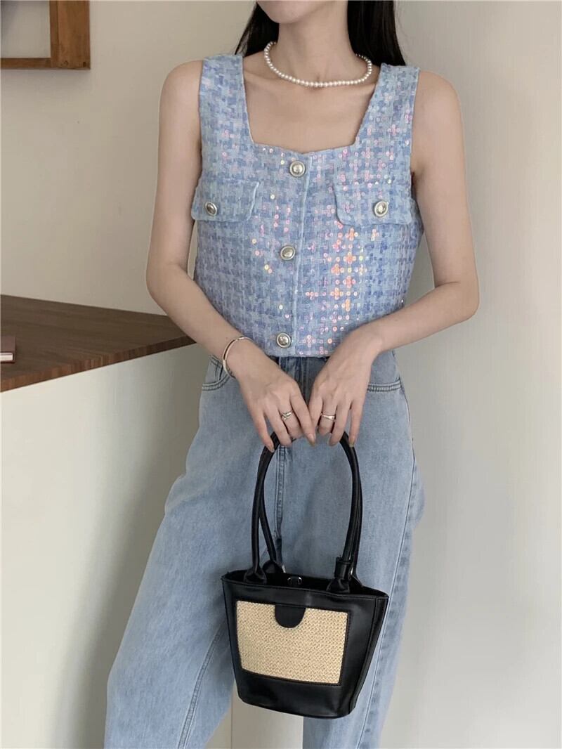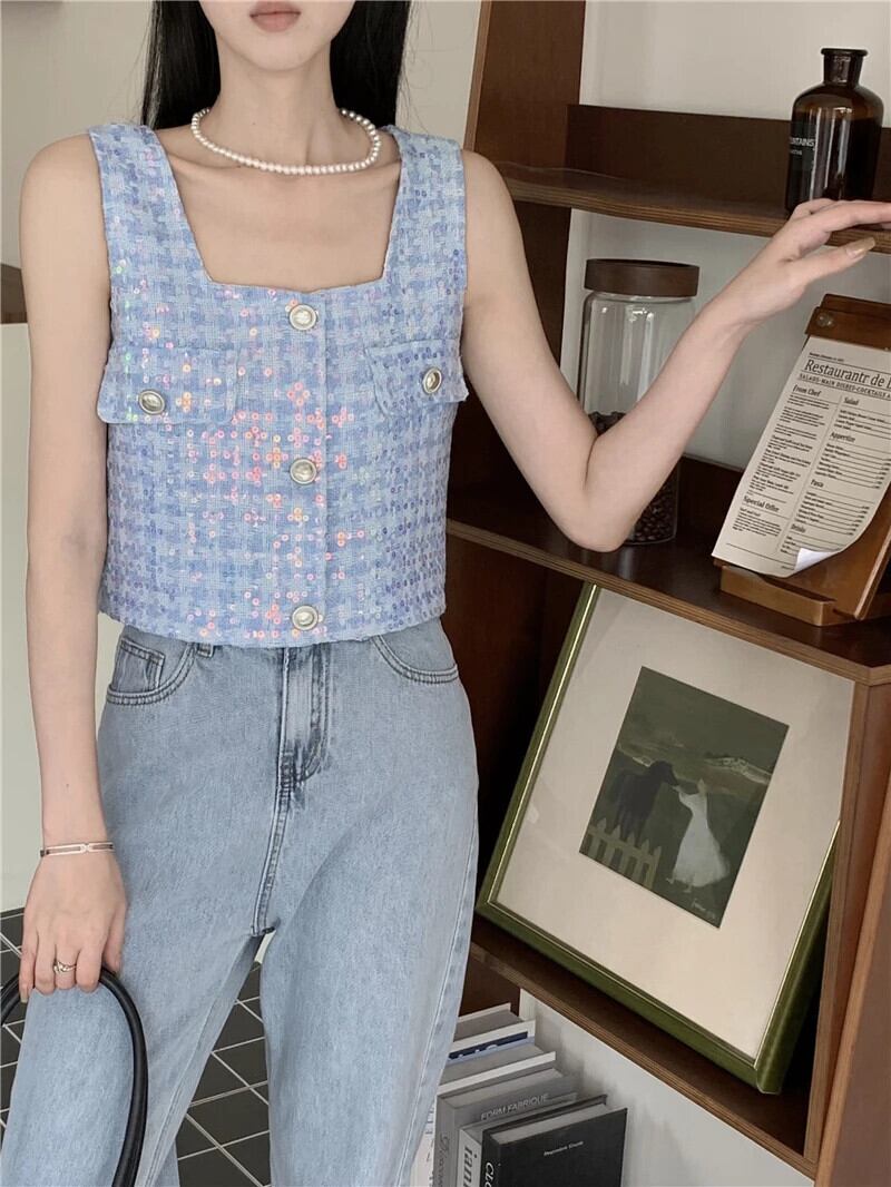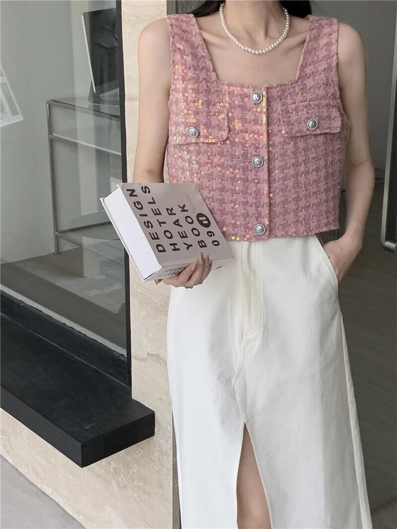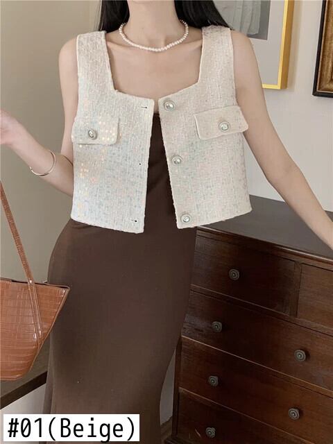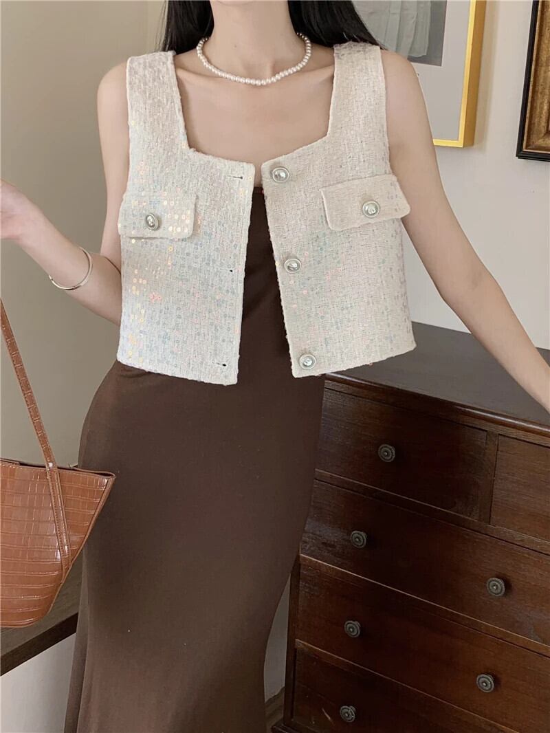 香りよいレトロショートノースリーブカーディガン織物シングルブレストベスト春夏トップ 半袖 ハーフスリーブ スプリング 春物 サマー 夏物