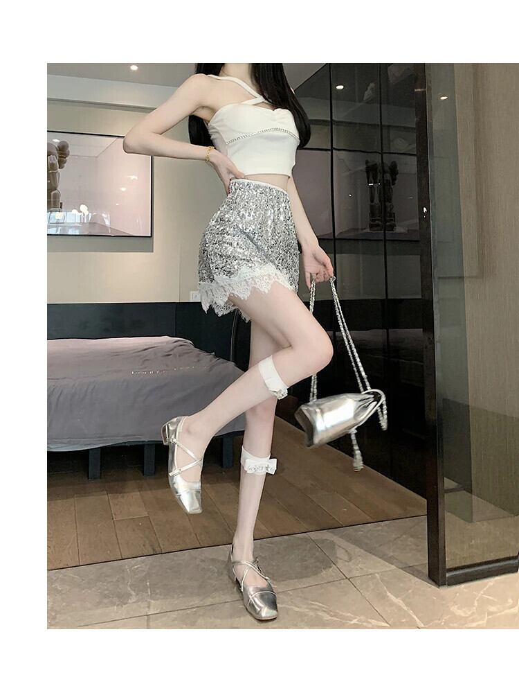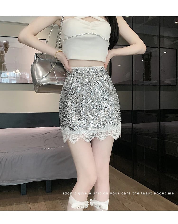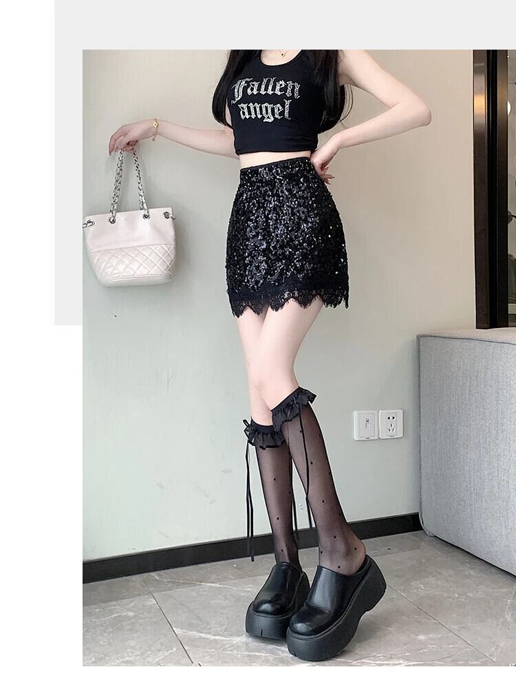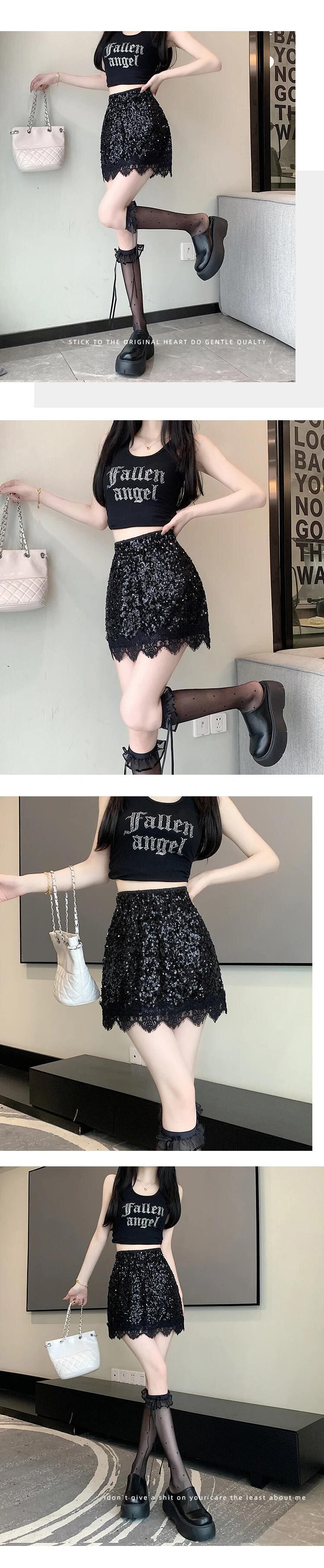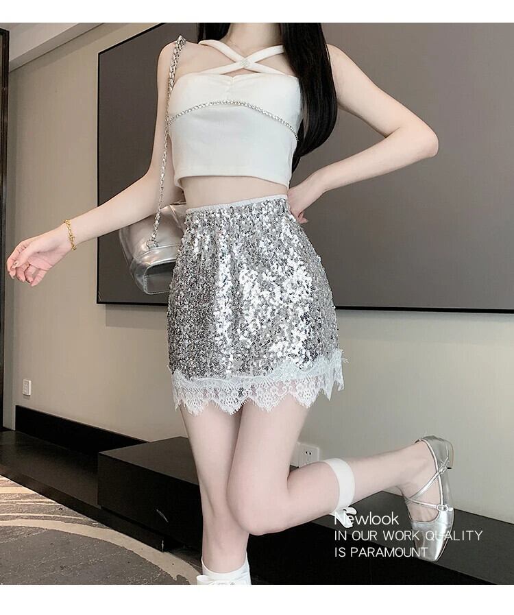 レディース 2024 春夏セクシー スパンコール パッチワーク レース A ライン ショート スカート スプリング 春物 サマー 夏物 Aライン