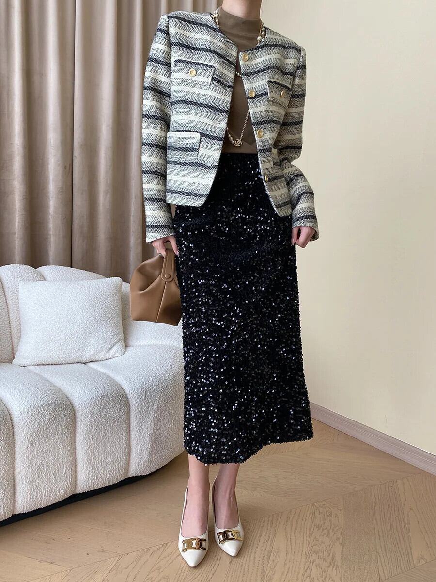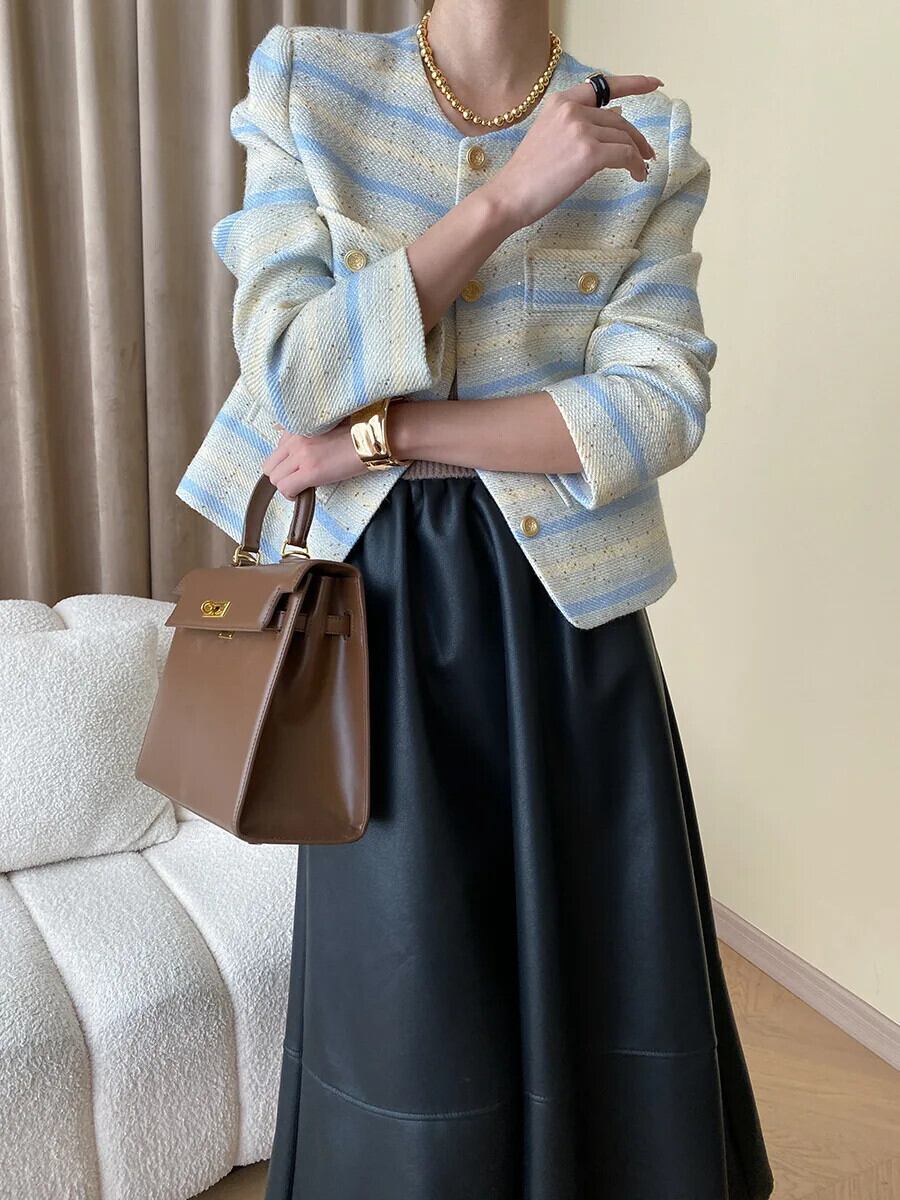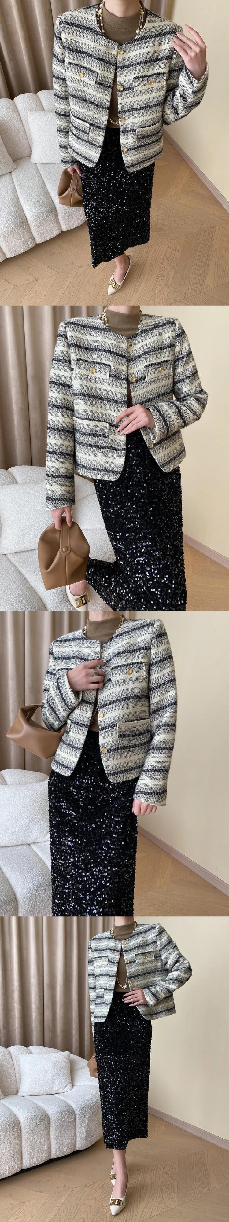 秋冬高級スパンコールツイードジャケットフレグランスウールショートコート甘い生き抜く Casaco 大人ガーリー スウィート キュート カジュアル オータム 秋物 ウィンター 冬物