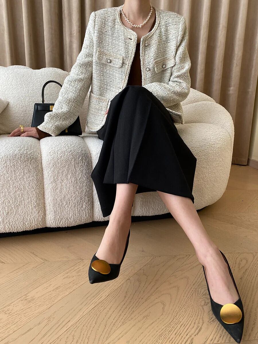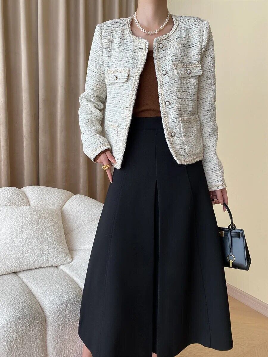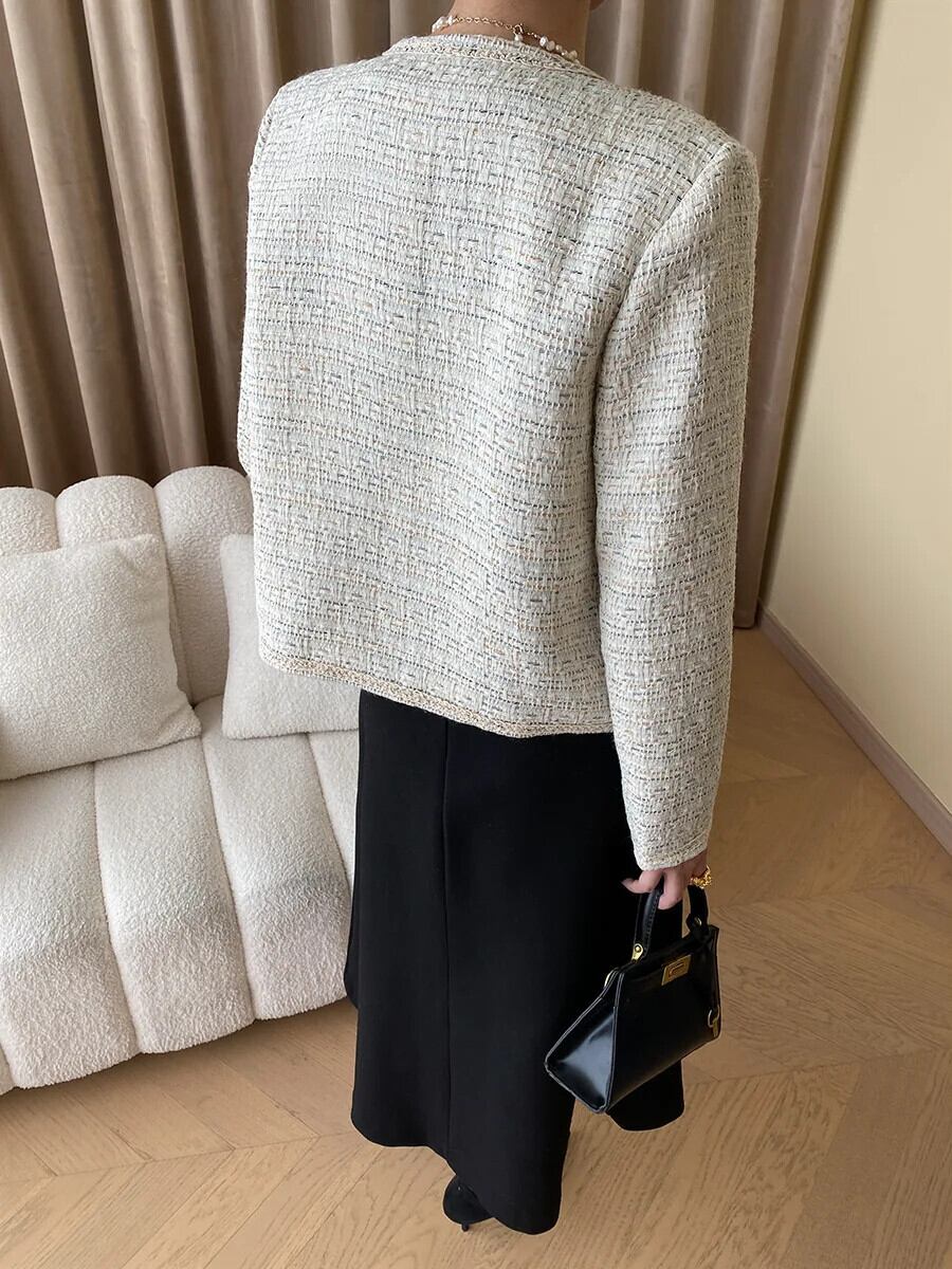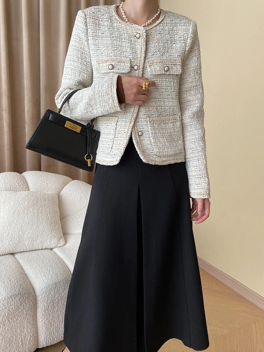 秋冬レディース Clic ラウンドネックウーブンフレグランスコートツイードジャケット オータム 秋物 ウィンター 冬物 Oネック
