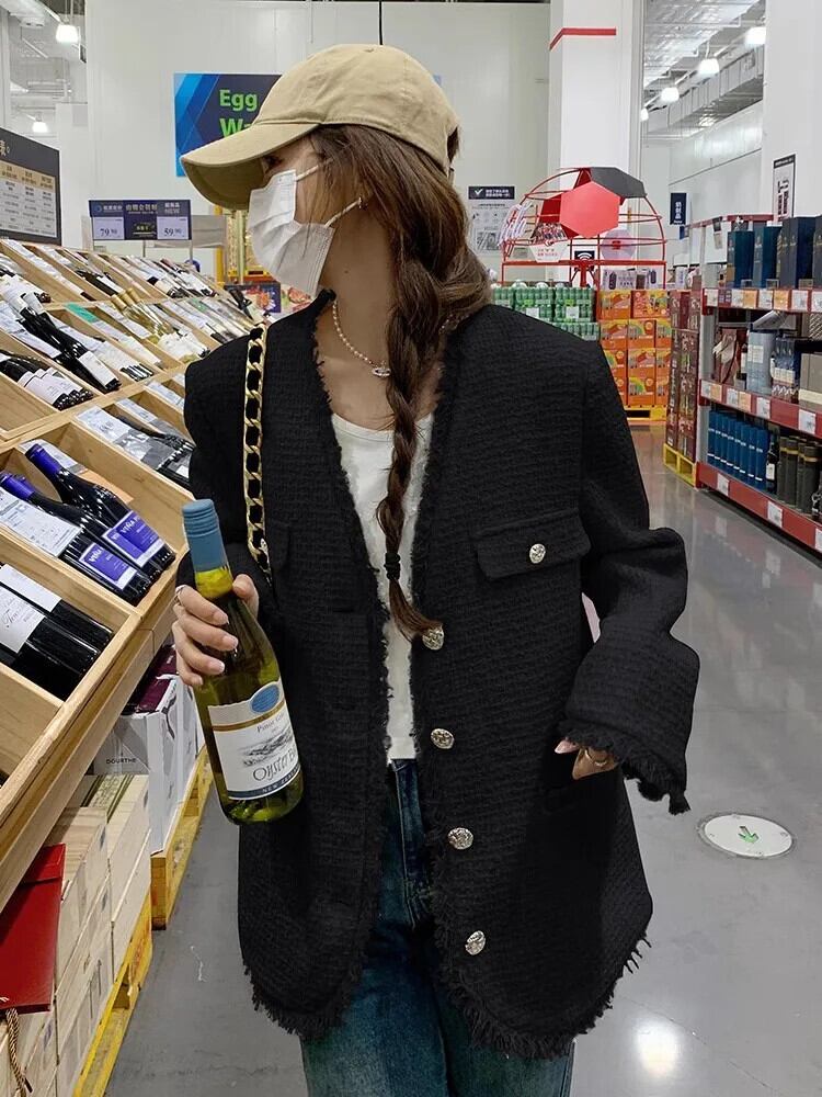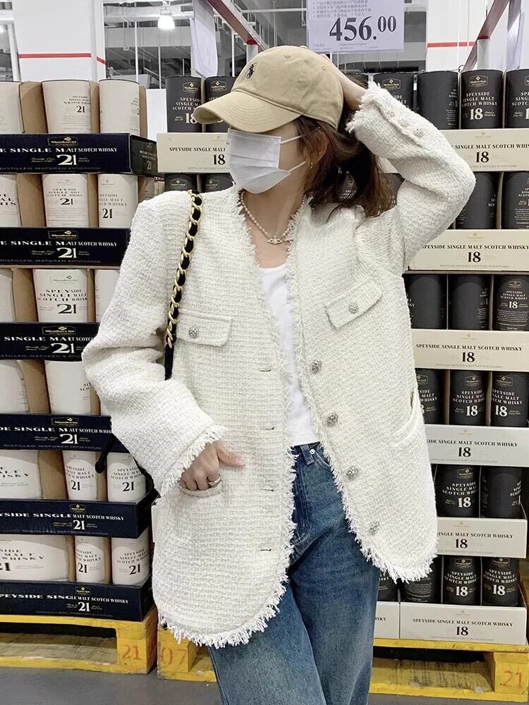 豪華滑走路香りツイード ジャケット甘いコート生き抜く Jaqueta 大人ガーリー スウィート キュート カジュアル