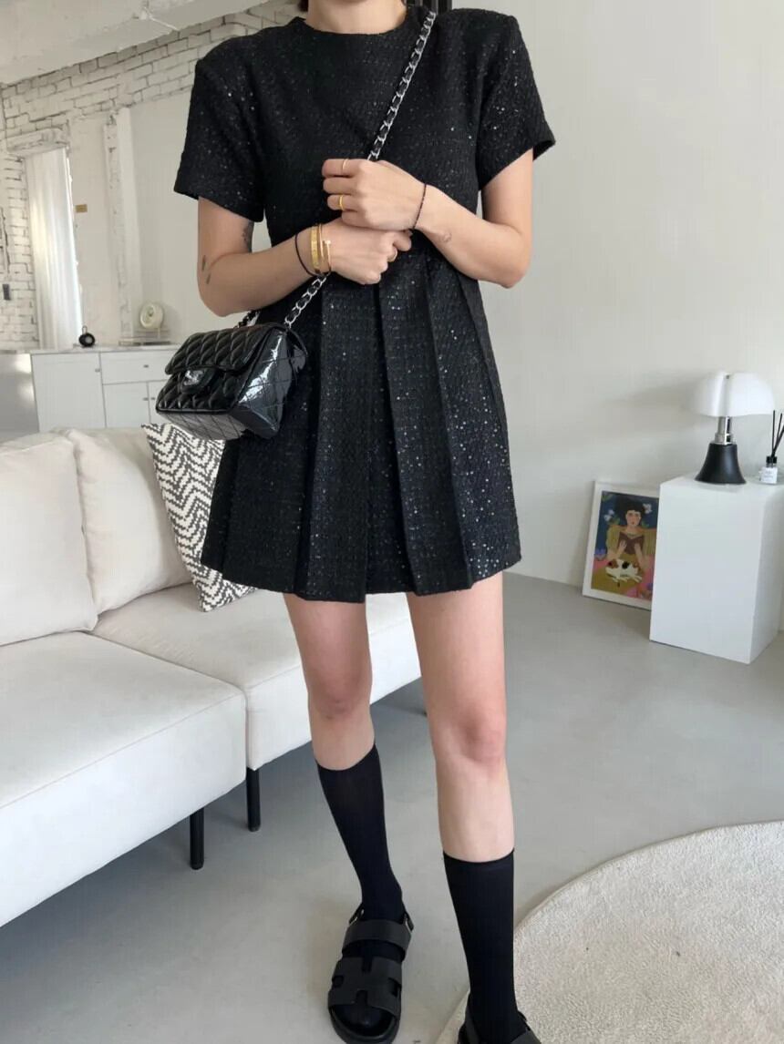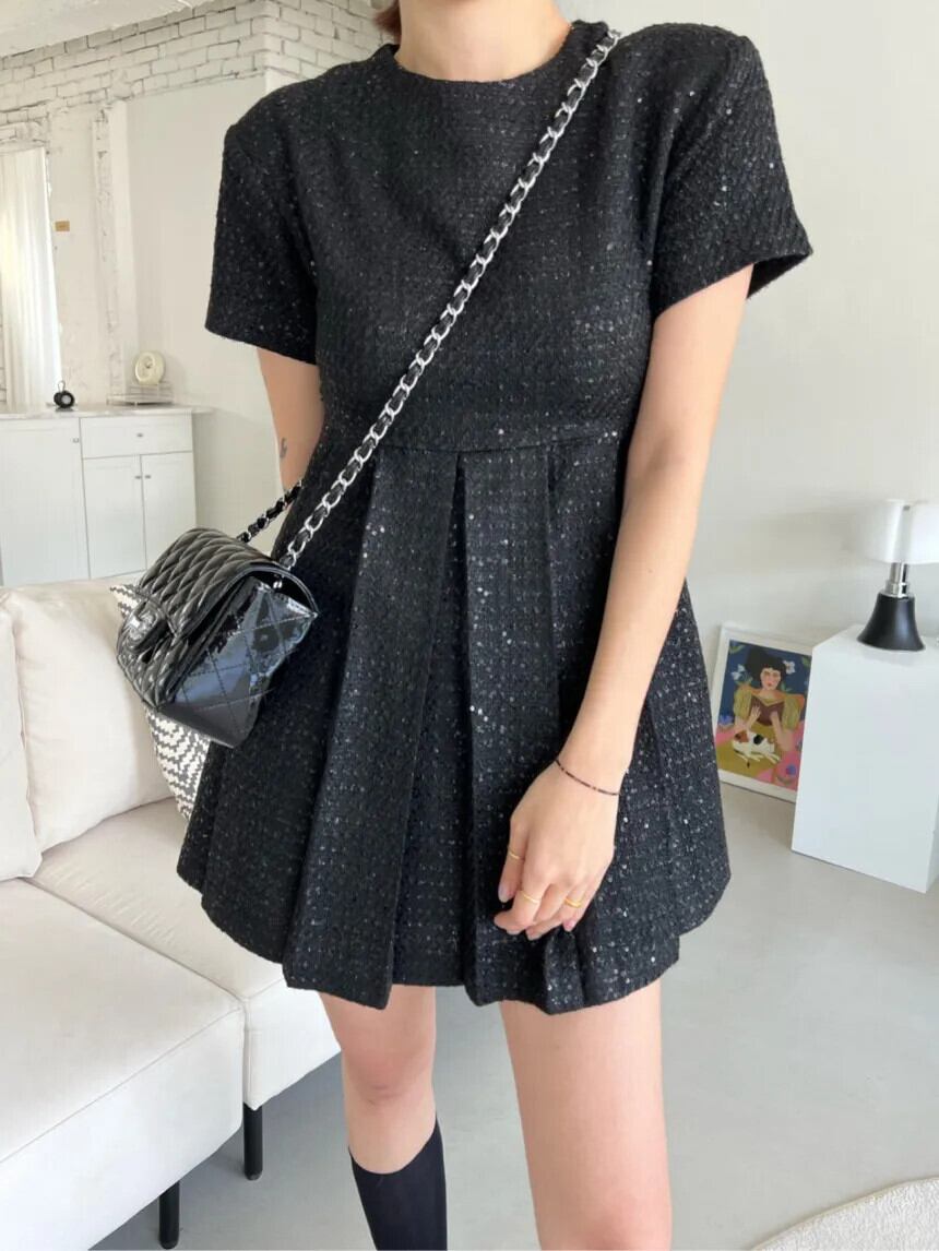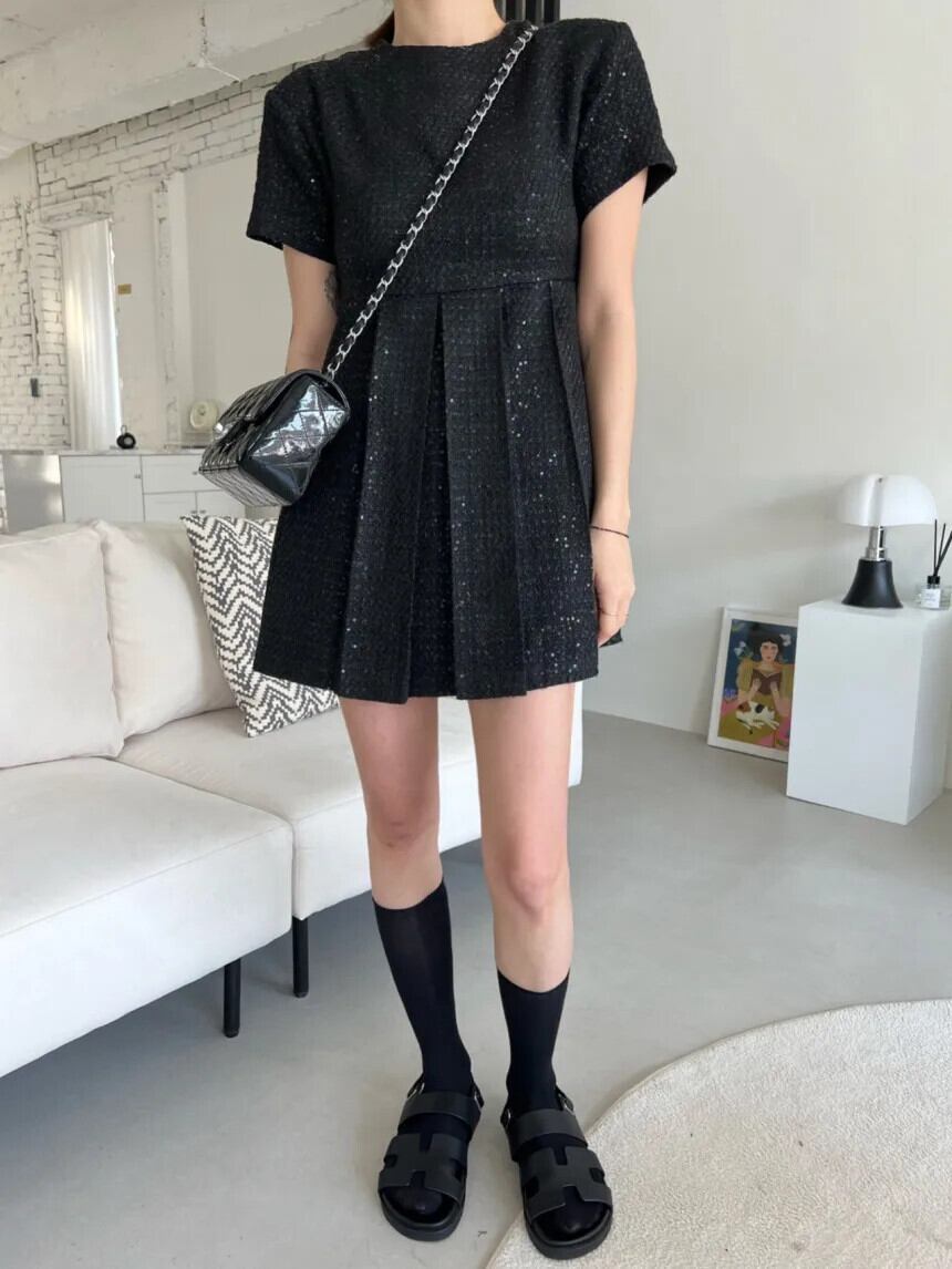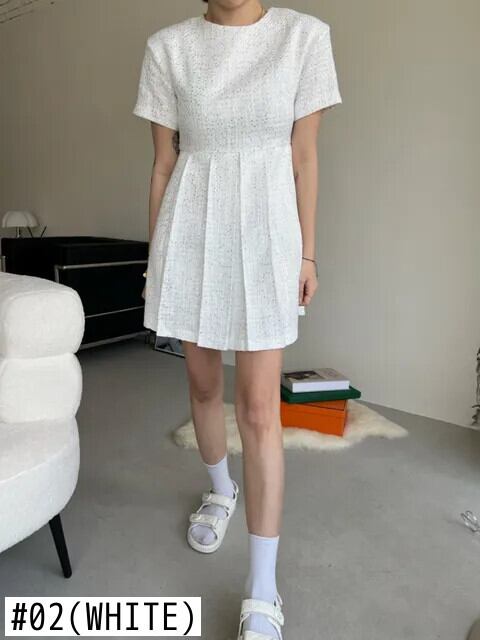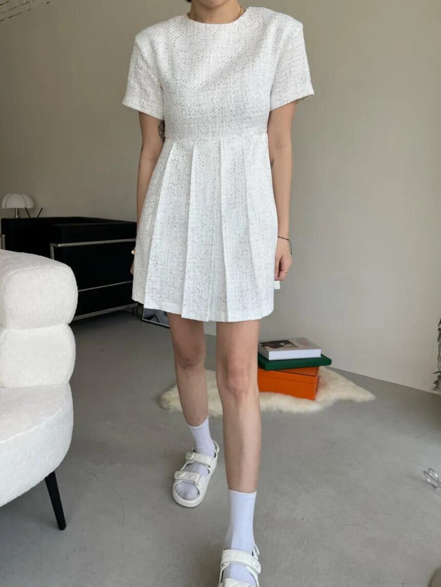 夏黒、白香り風重工業ビーズプリーツドレス ホワイト ブラック サマー 夏物