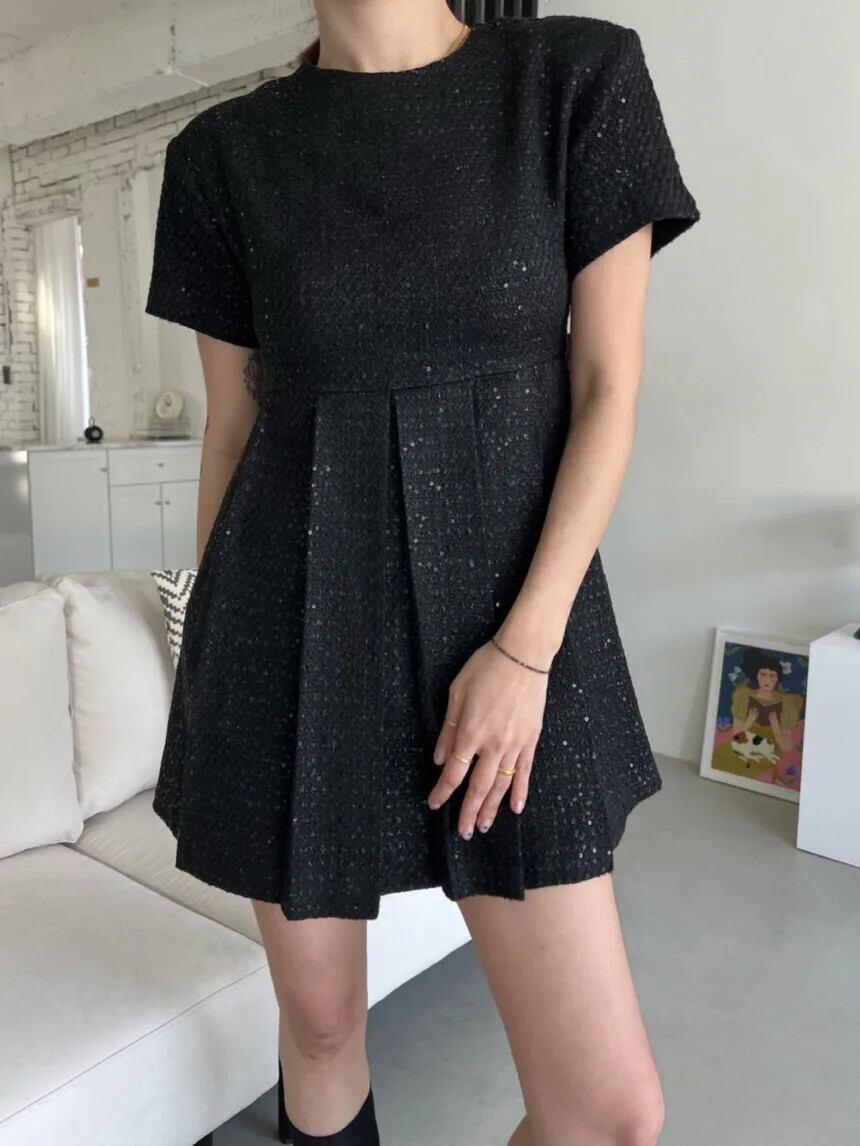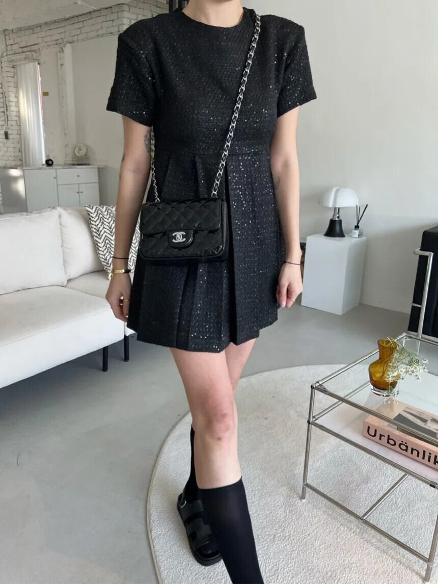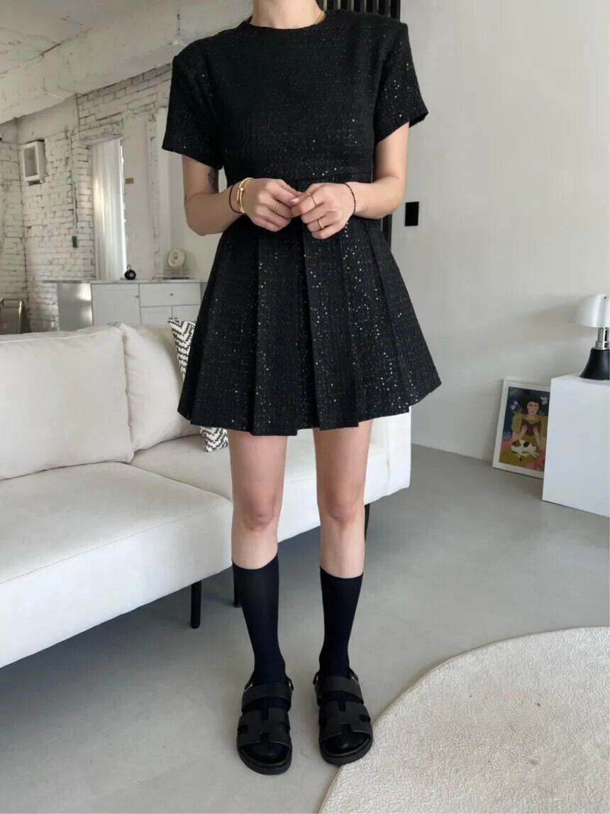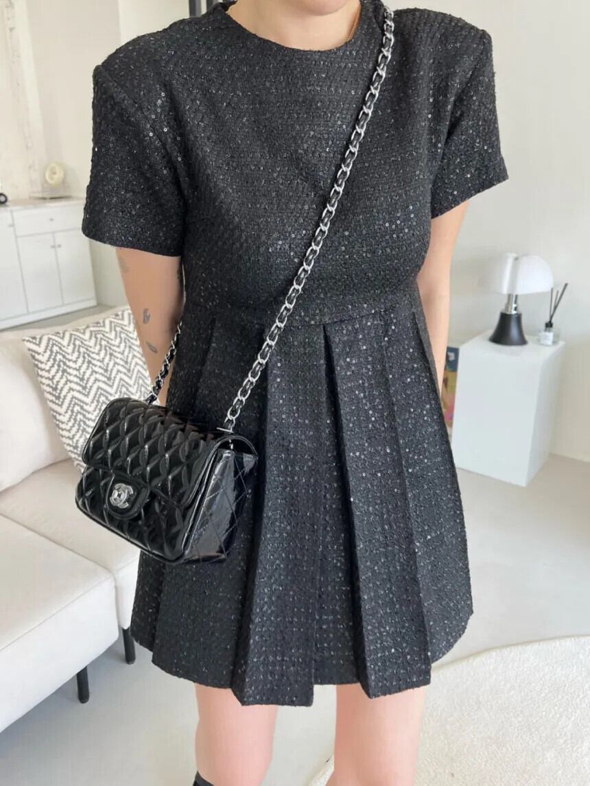 夏黒、白香り風重工業ビーズプリーツドレス ホワイト ブラック サマー 夏物