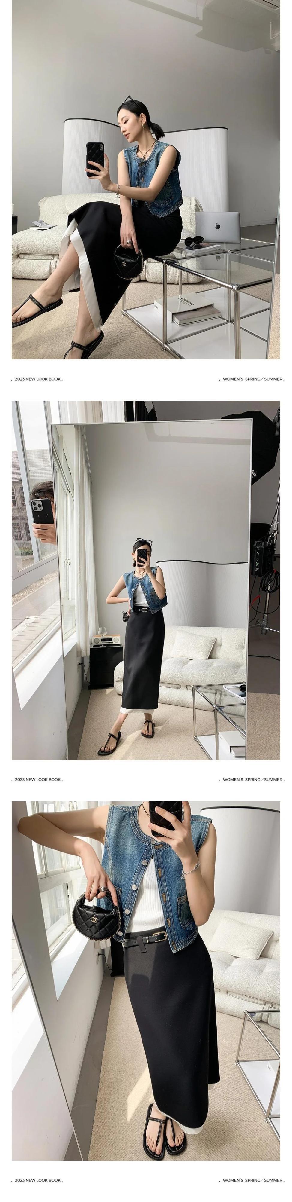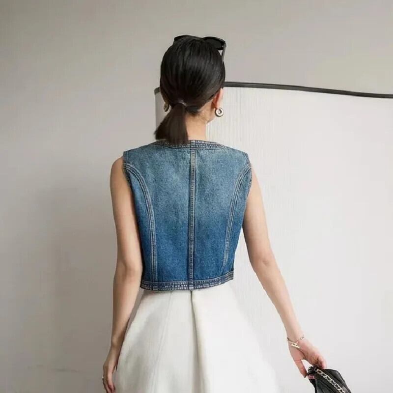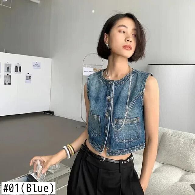春/夏ルーズアウターデニムベストコートシングルブレストノースリーブ恋人チョッキ 大人ガーリー スウィート キュート カジュアル スプリング 春物 サマー 夏物