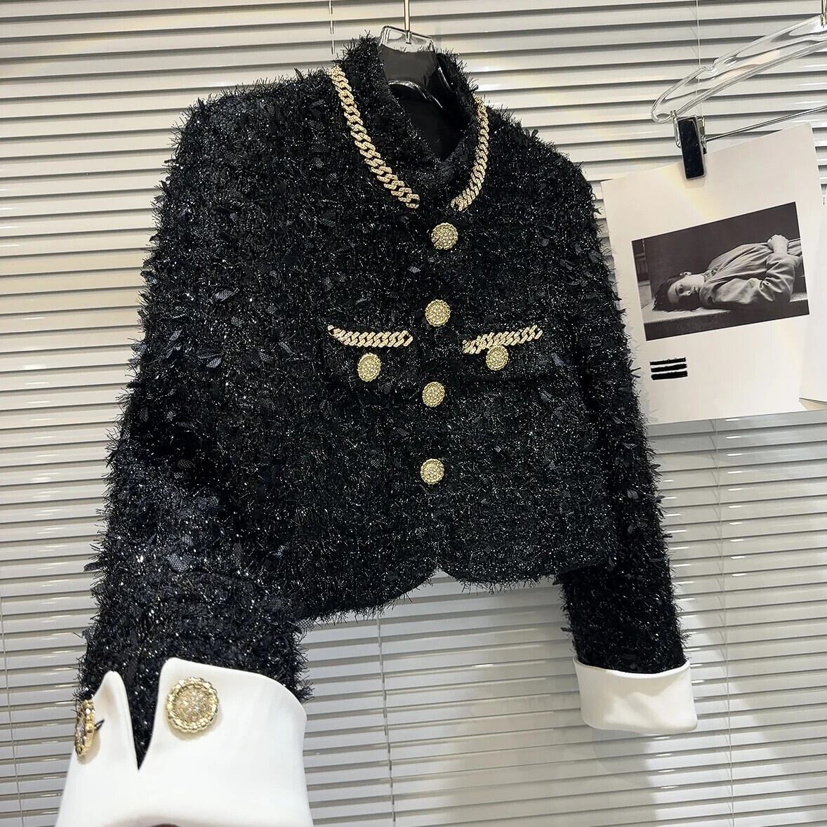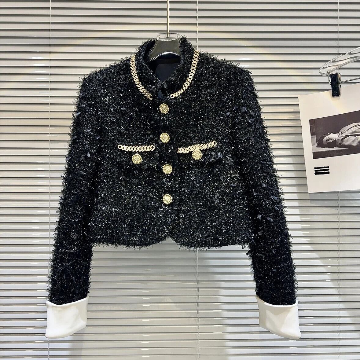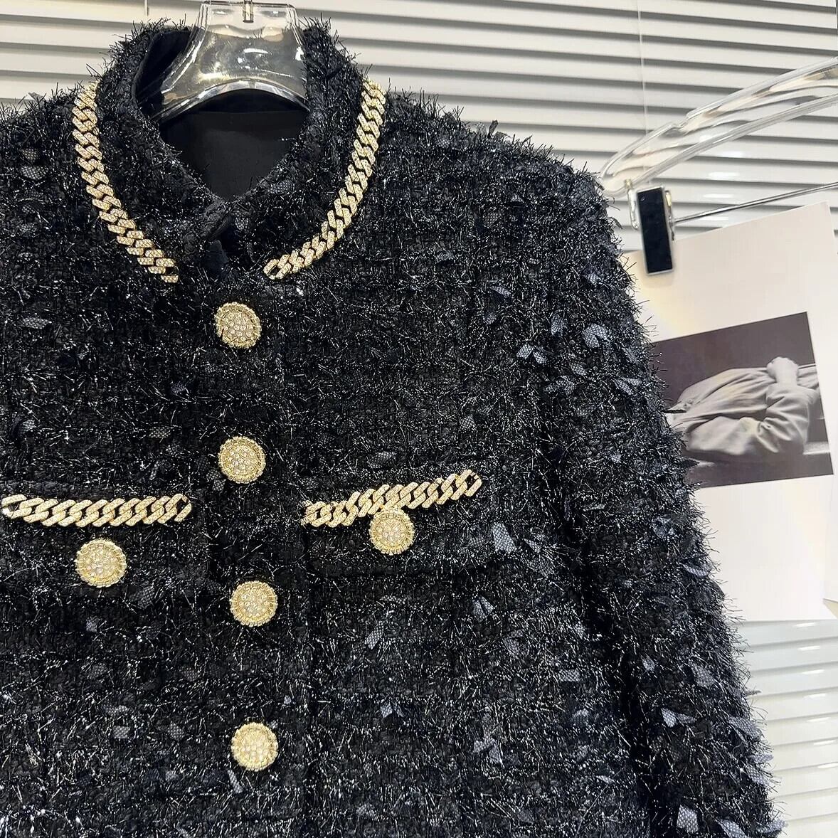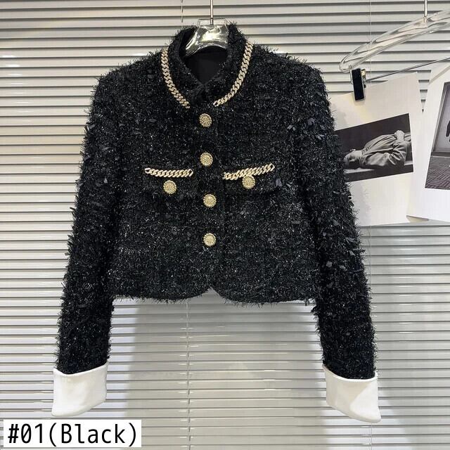 冬香りスタイルジャケット金属チェーンポケット明るいツイード薄手綿ショートコート コットン ウィンター 冬物 シルク