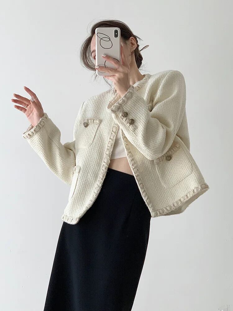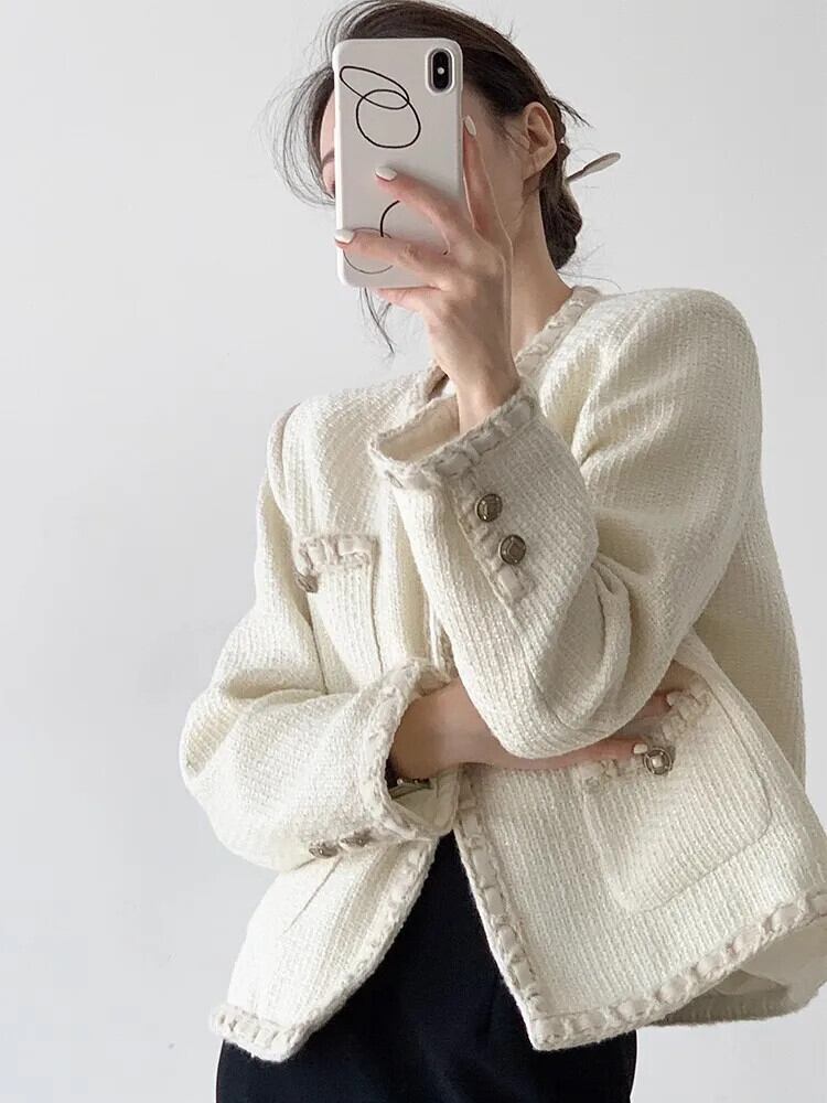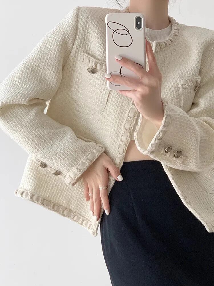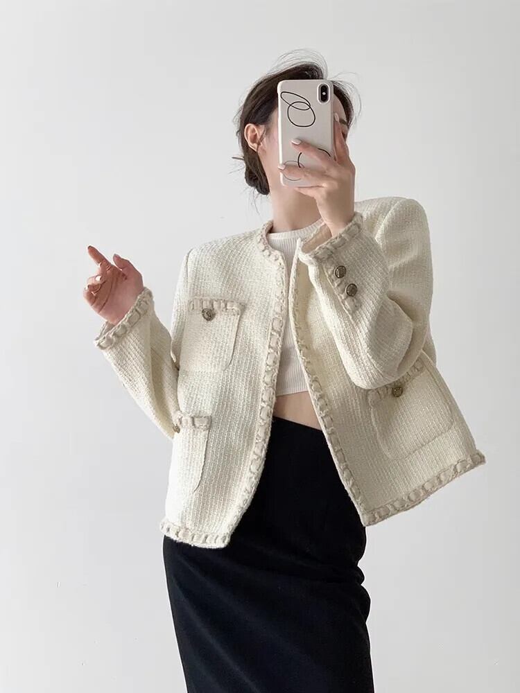 秋冬ホワイトツイードジャケットコートショート Casaco Feminino Chaquetas Para es Jaqueta Abrigo ウィンター 冬物