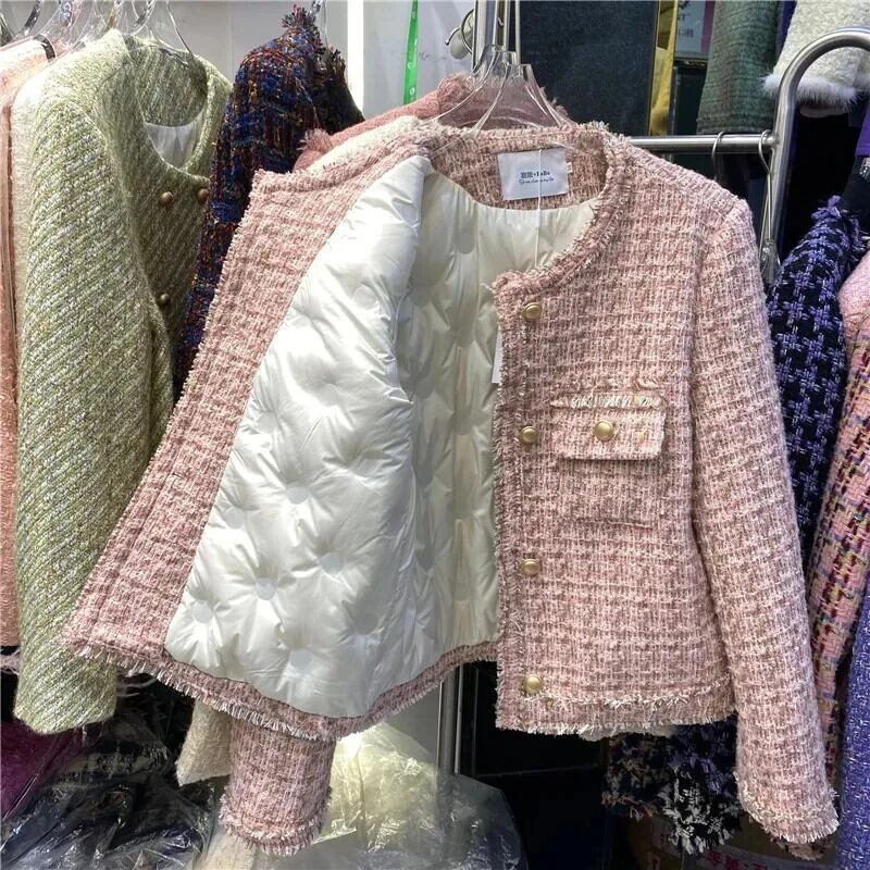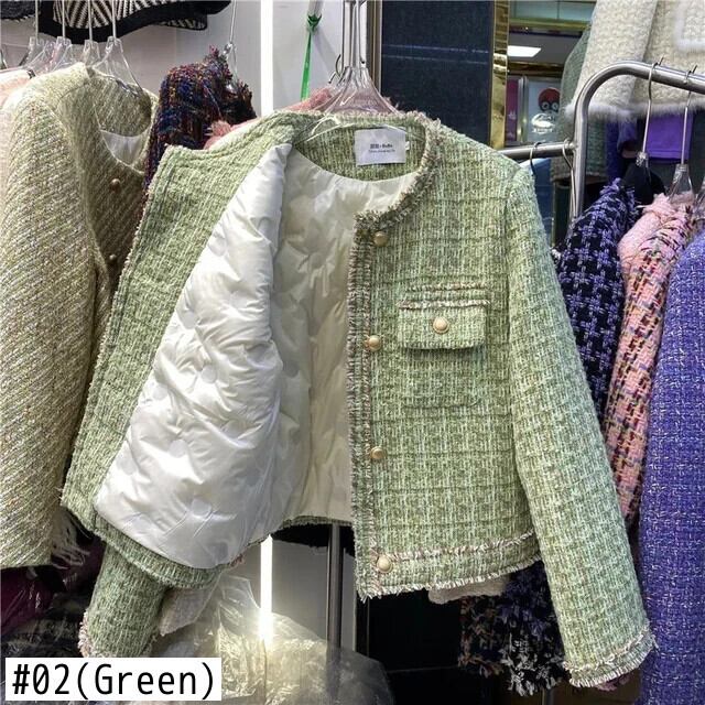 ツイードショートダウンコットンジャケットレディース冬テルOLウォームコート ウィンター 冬物