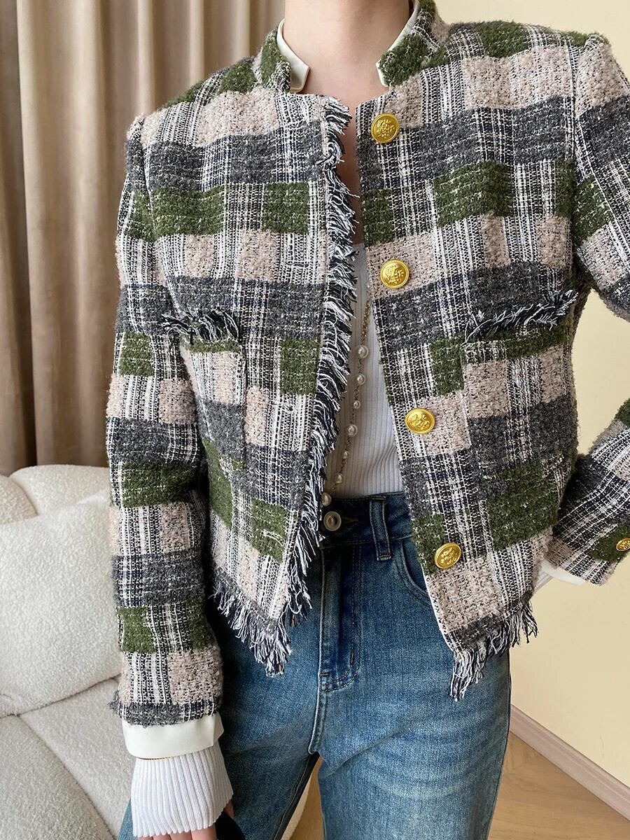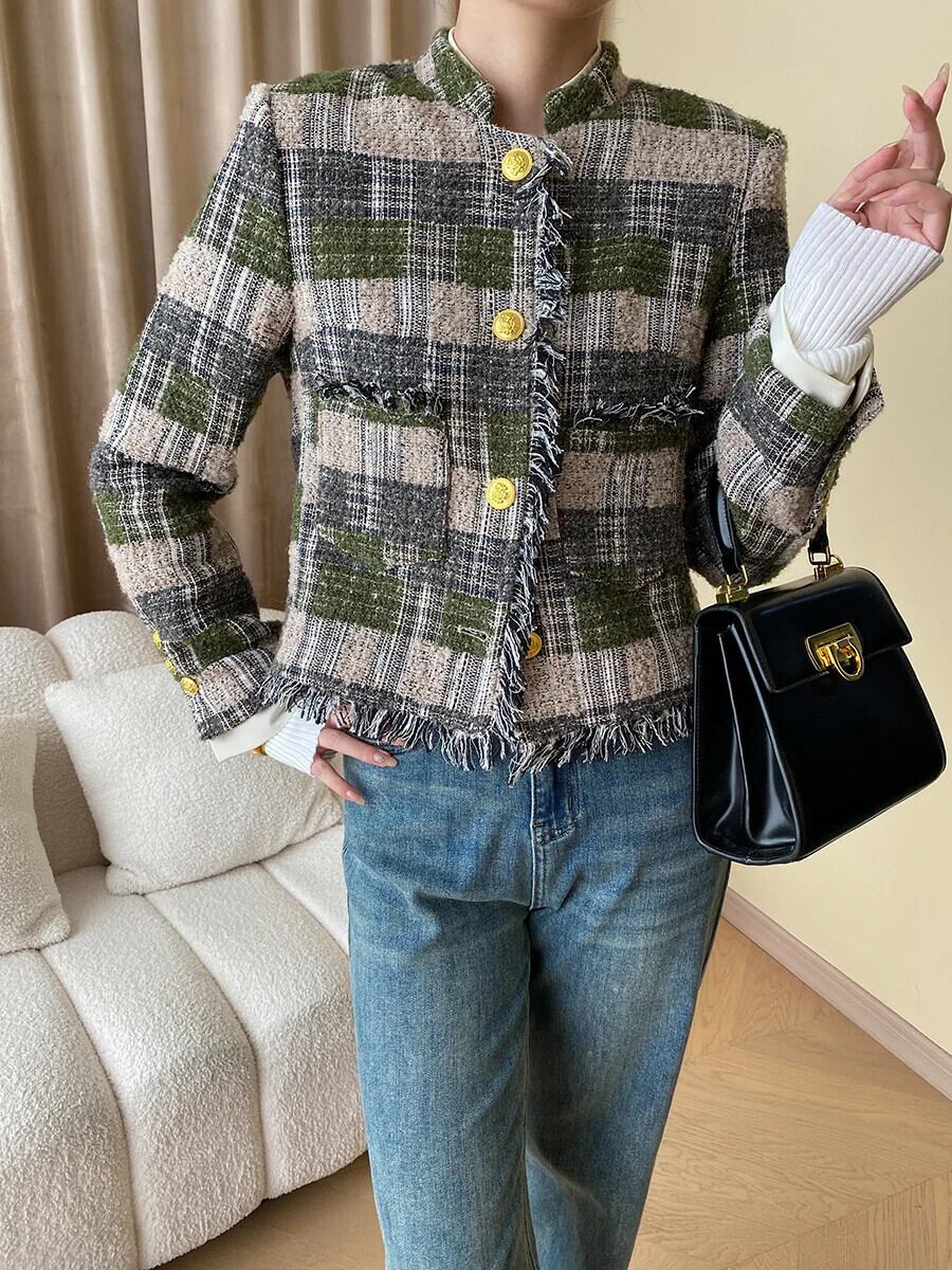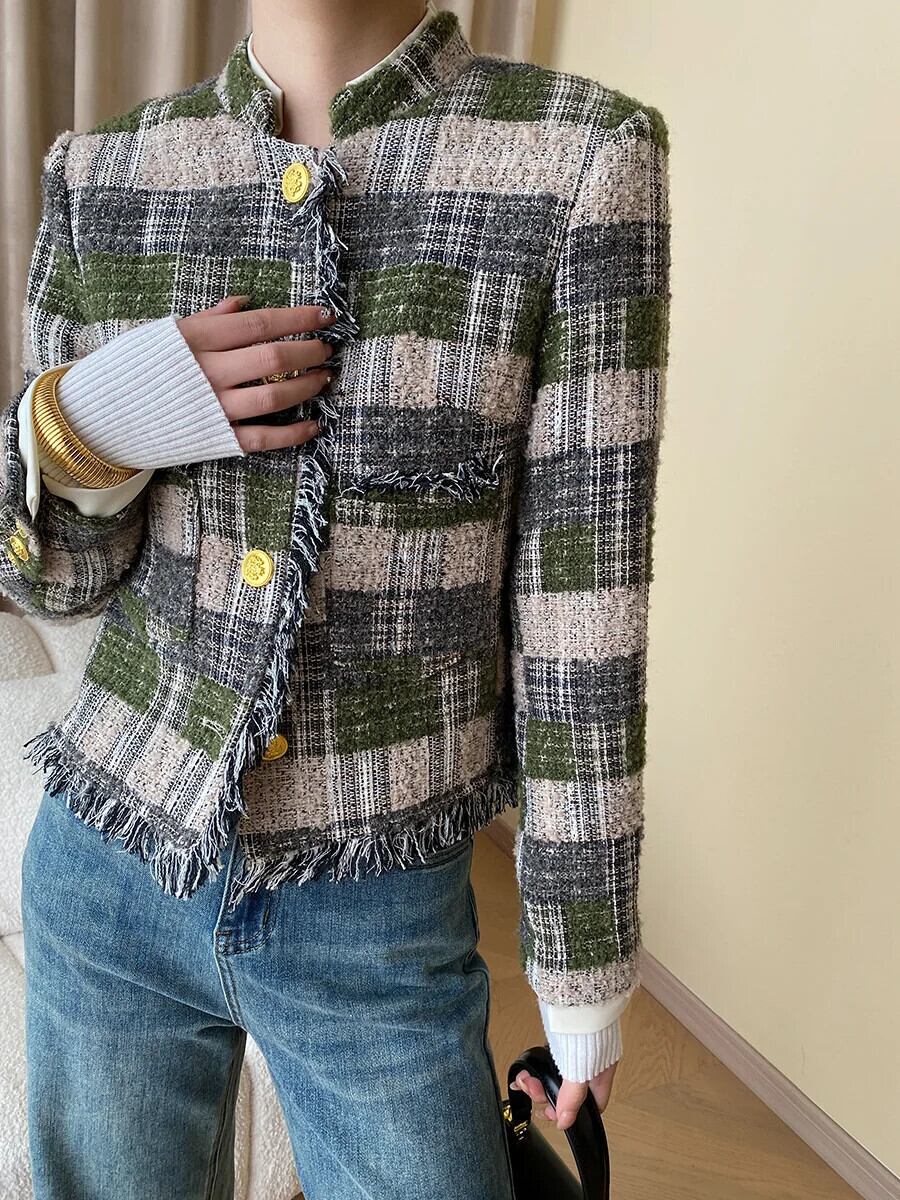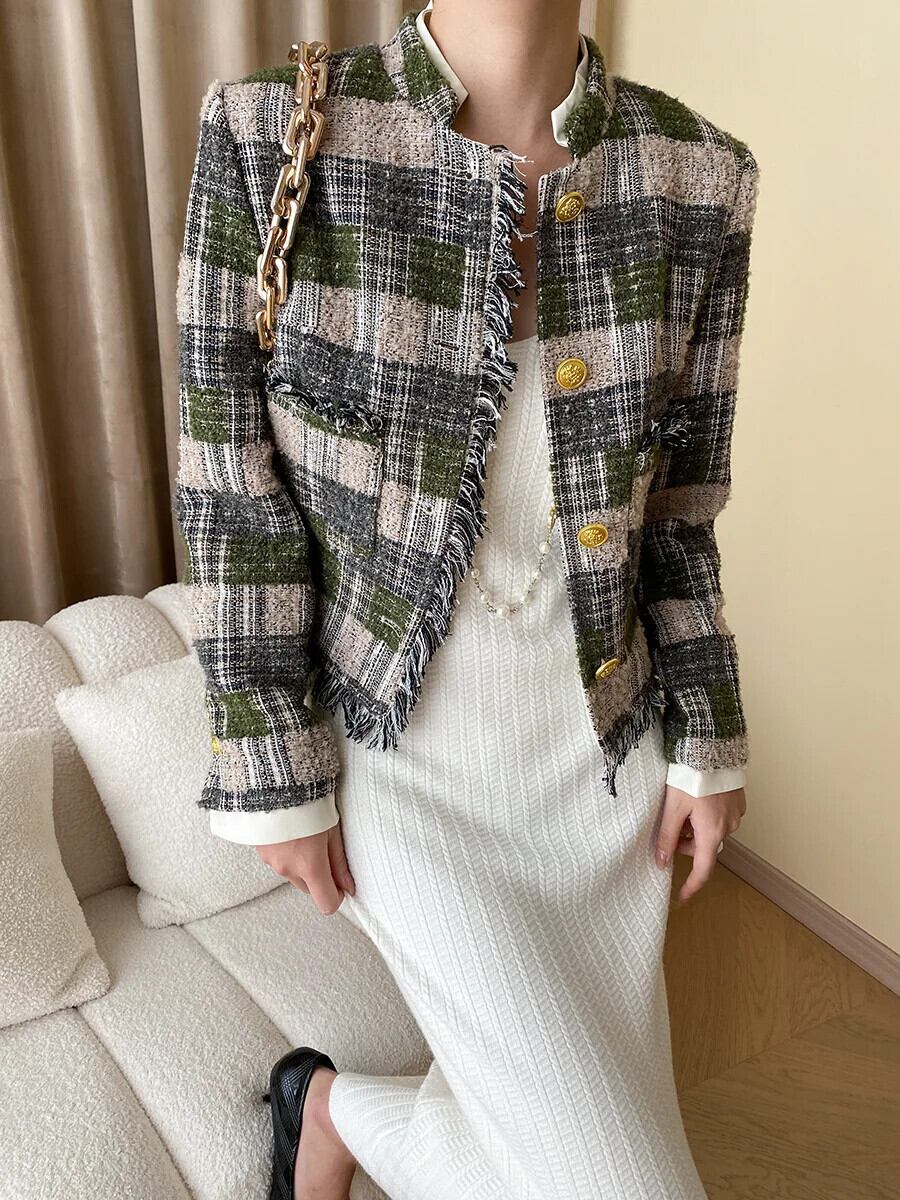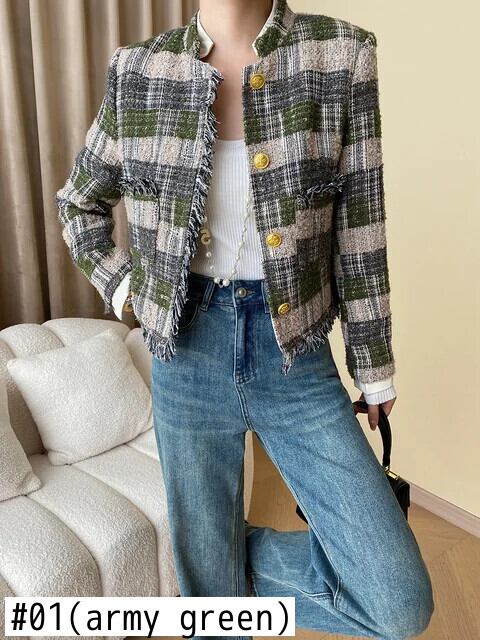 フレンチツイードジャケット秋冬高級ショートウールコートアウターカサコ オータム 秋物 ウィンター 冬物