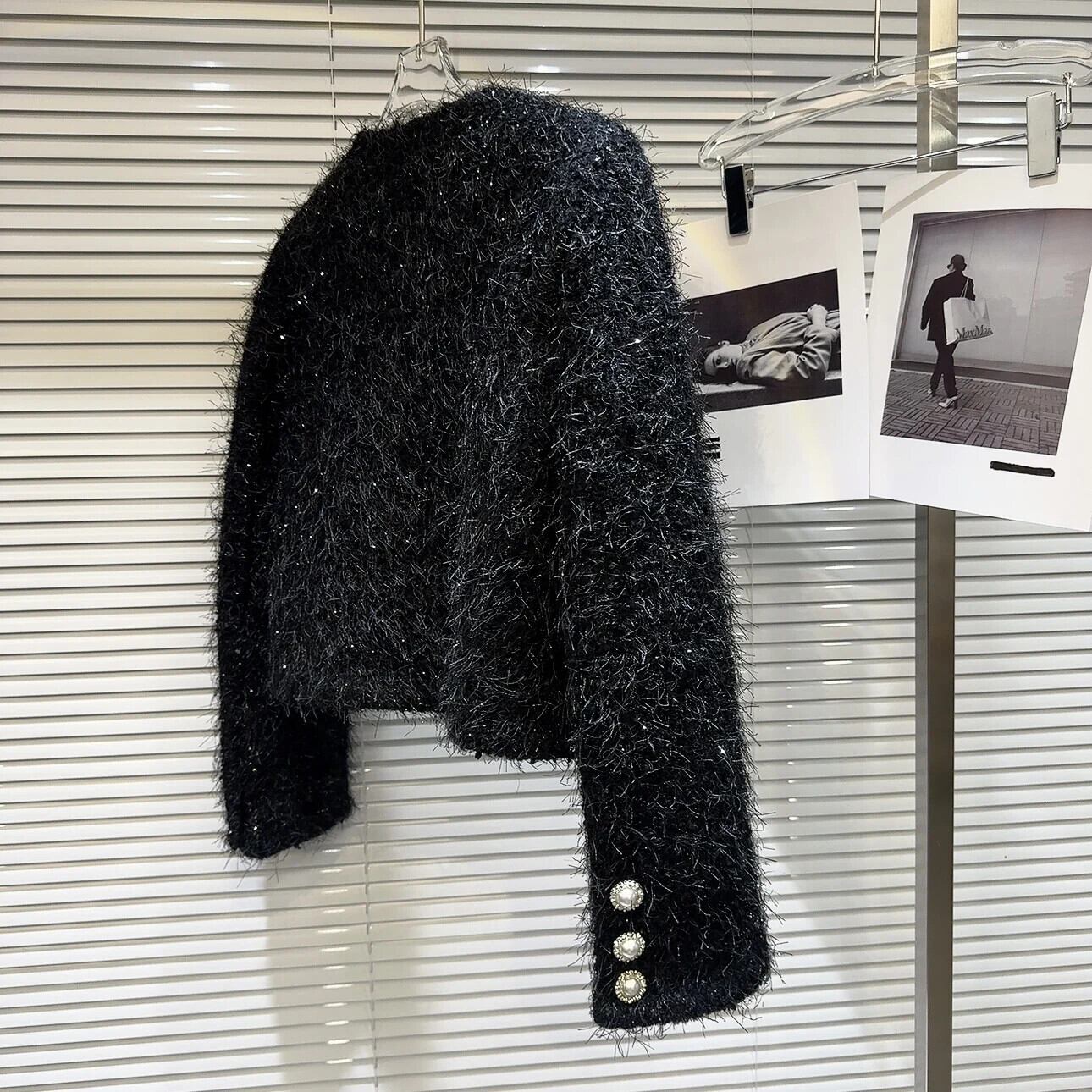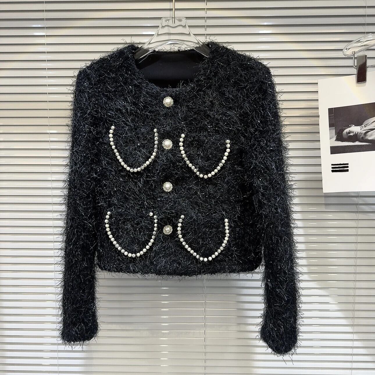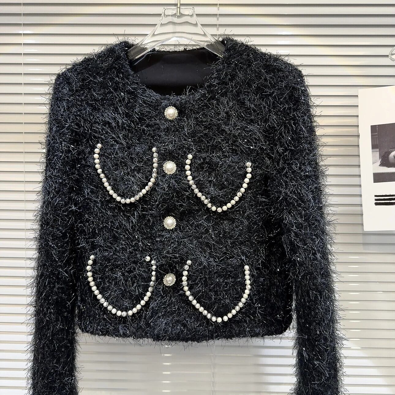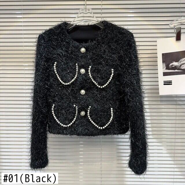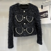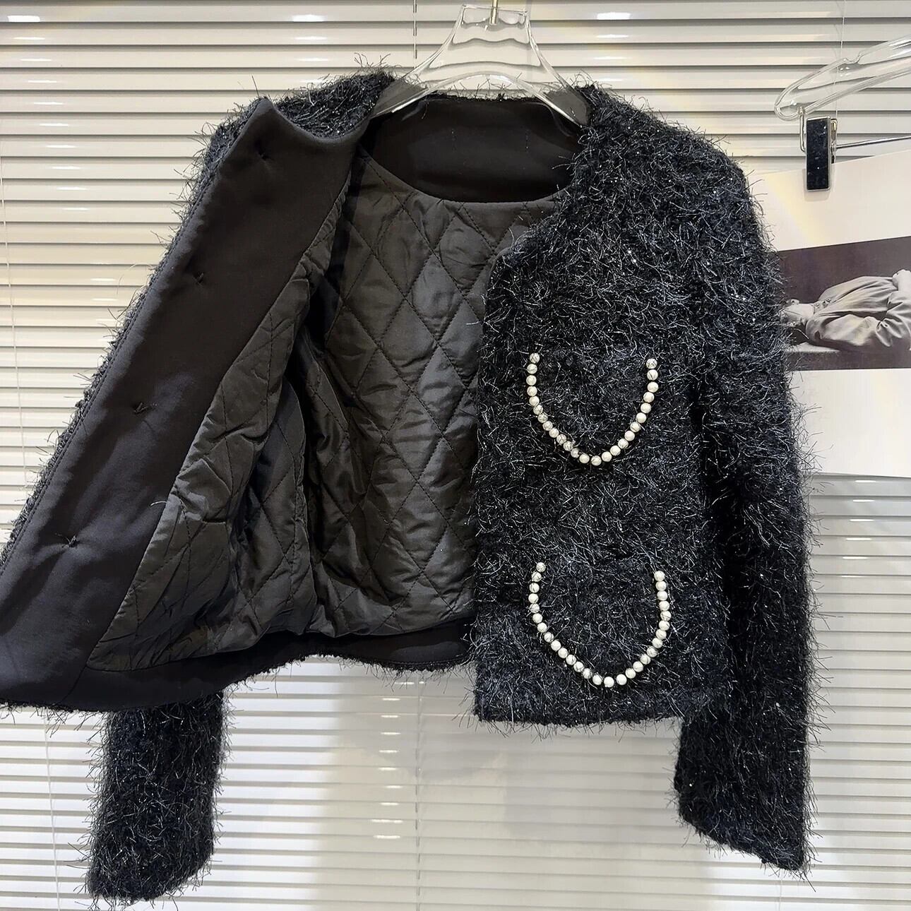 ブラック 冬 パール ポケット プラッシュ コットン ショート コート レディース ジャケット ウィンター 冬物 真珠