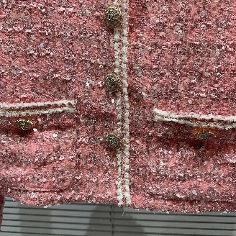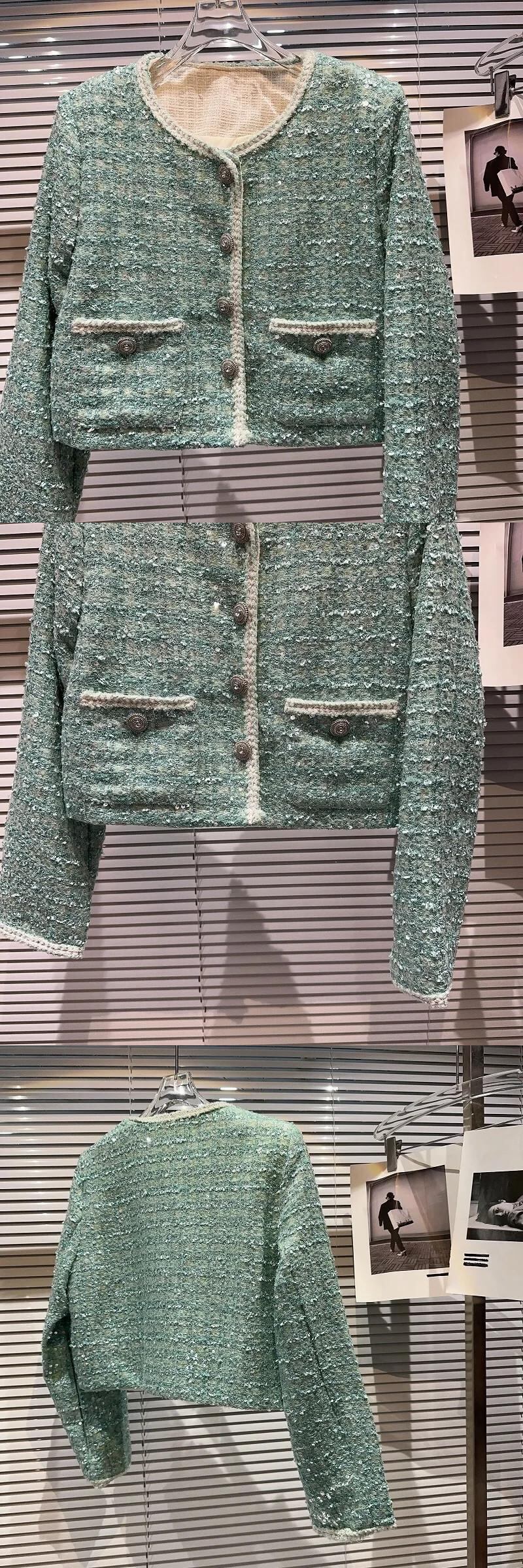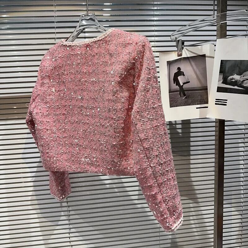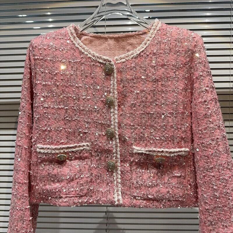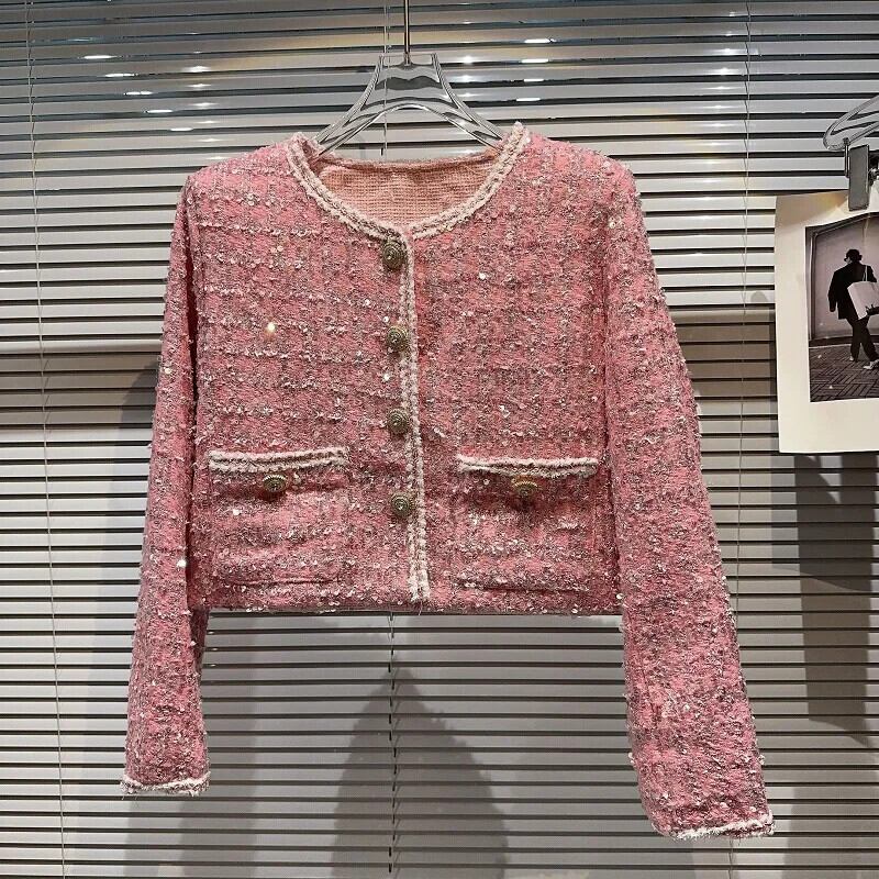 秋香りダイヤモンド明るいツイード気質セレブショートコートグリーンピンク Y2K ストリートジャケット生き抜く オータム 秋物 シルク