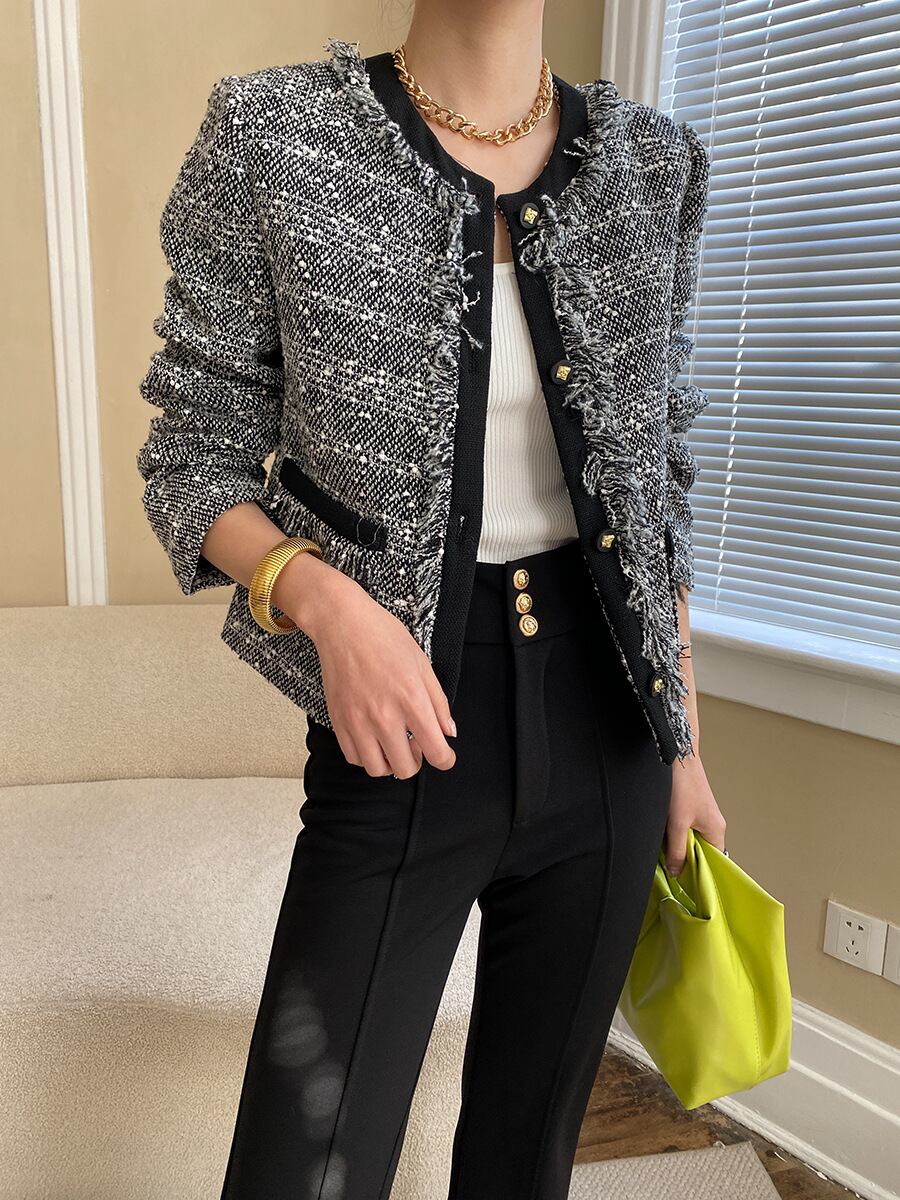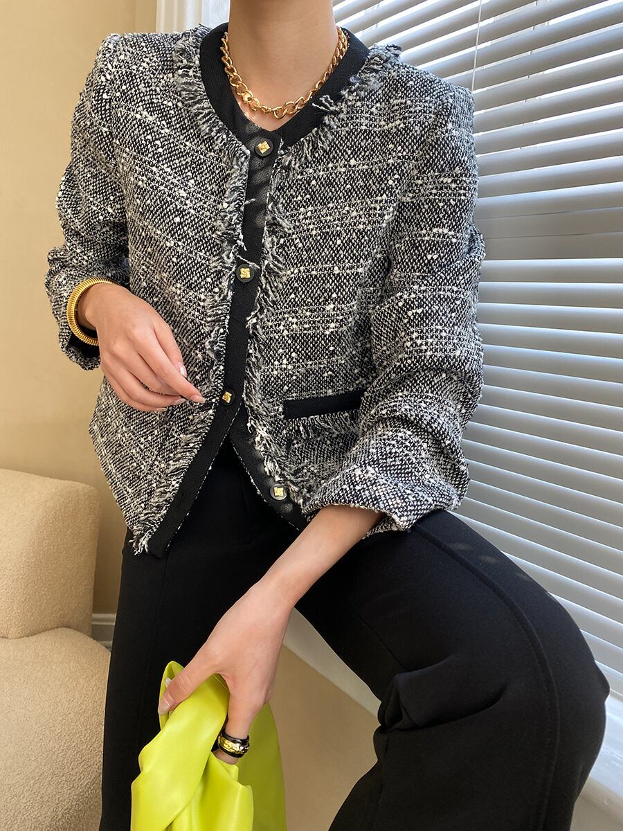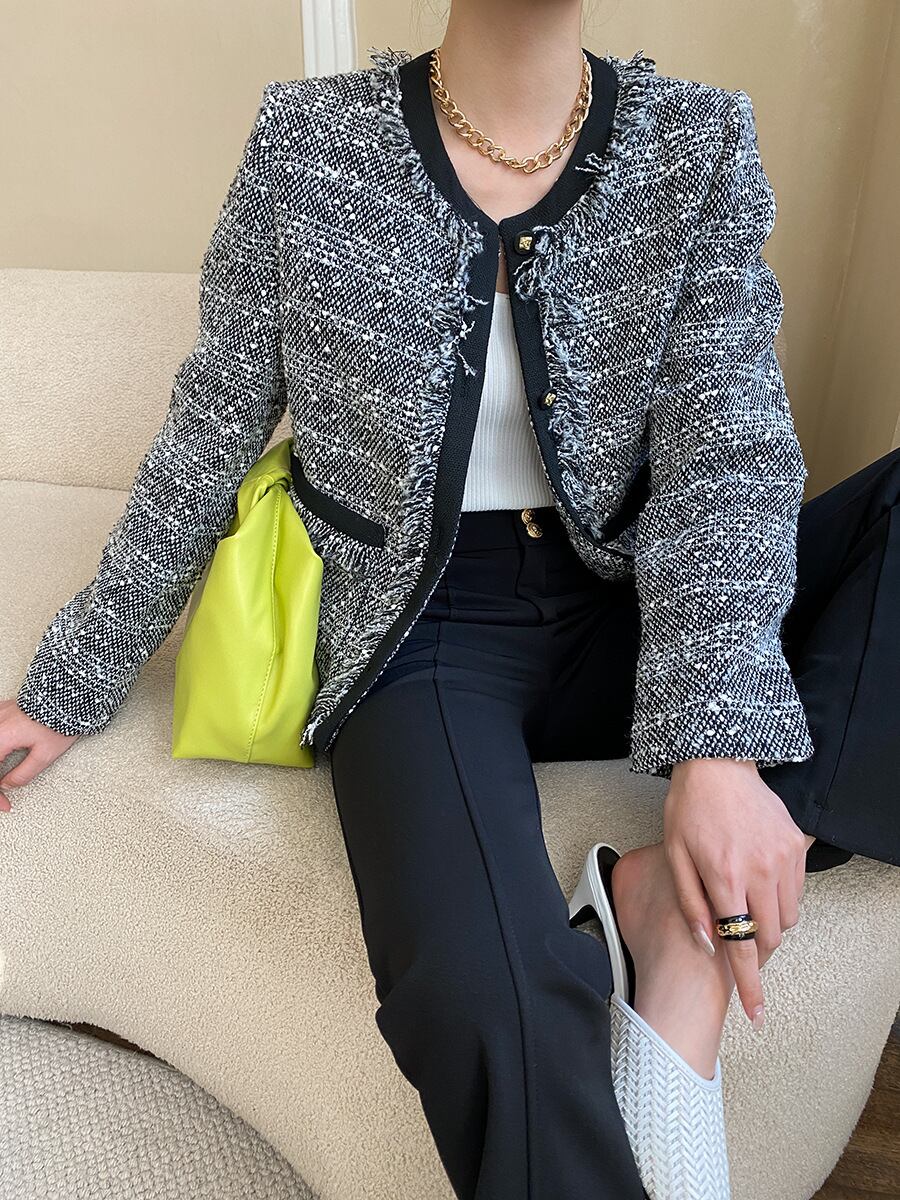 香り秋スノーフレークグレー粒状感粗いツイード手起毛コートジャケットアウター オータム 秋物
