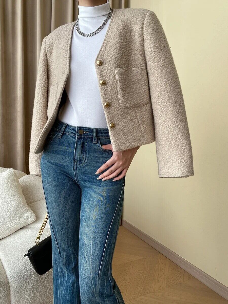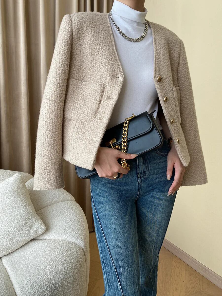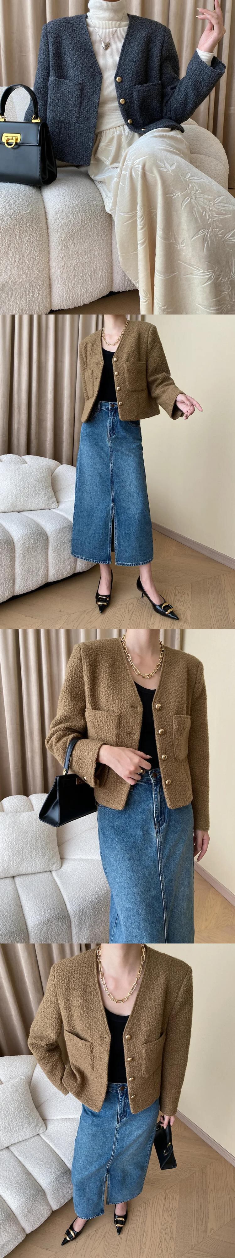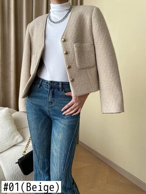秋冬レディース Clic フレグラント V ネック ツイード コート ツイード発信ジャケット オータム 秋物 ウィンター 冬物 Vネック