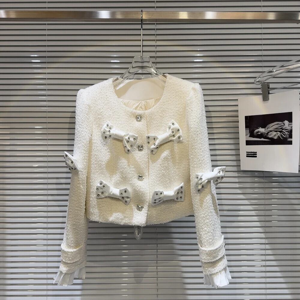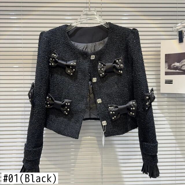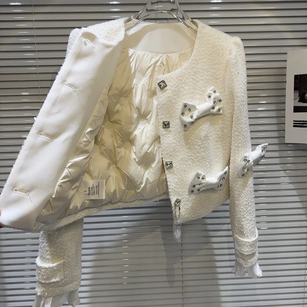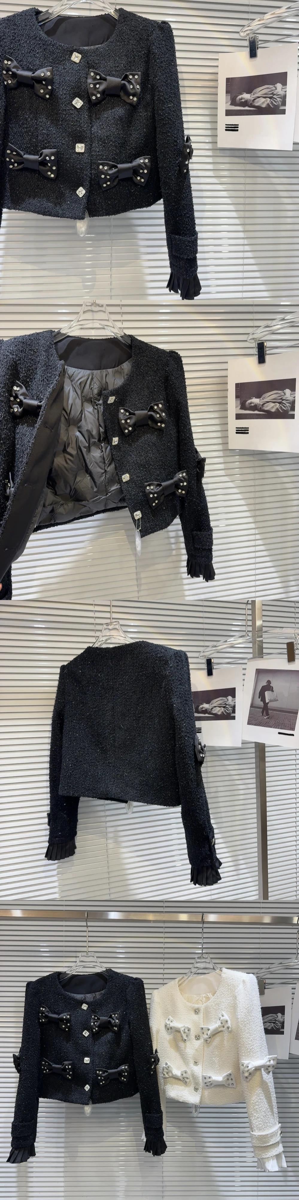 冬香り風弓水ダイヤモンドネイルビーズダウンインナー厚いツイードショートコートジャケット リボン ウィンター 冬物