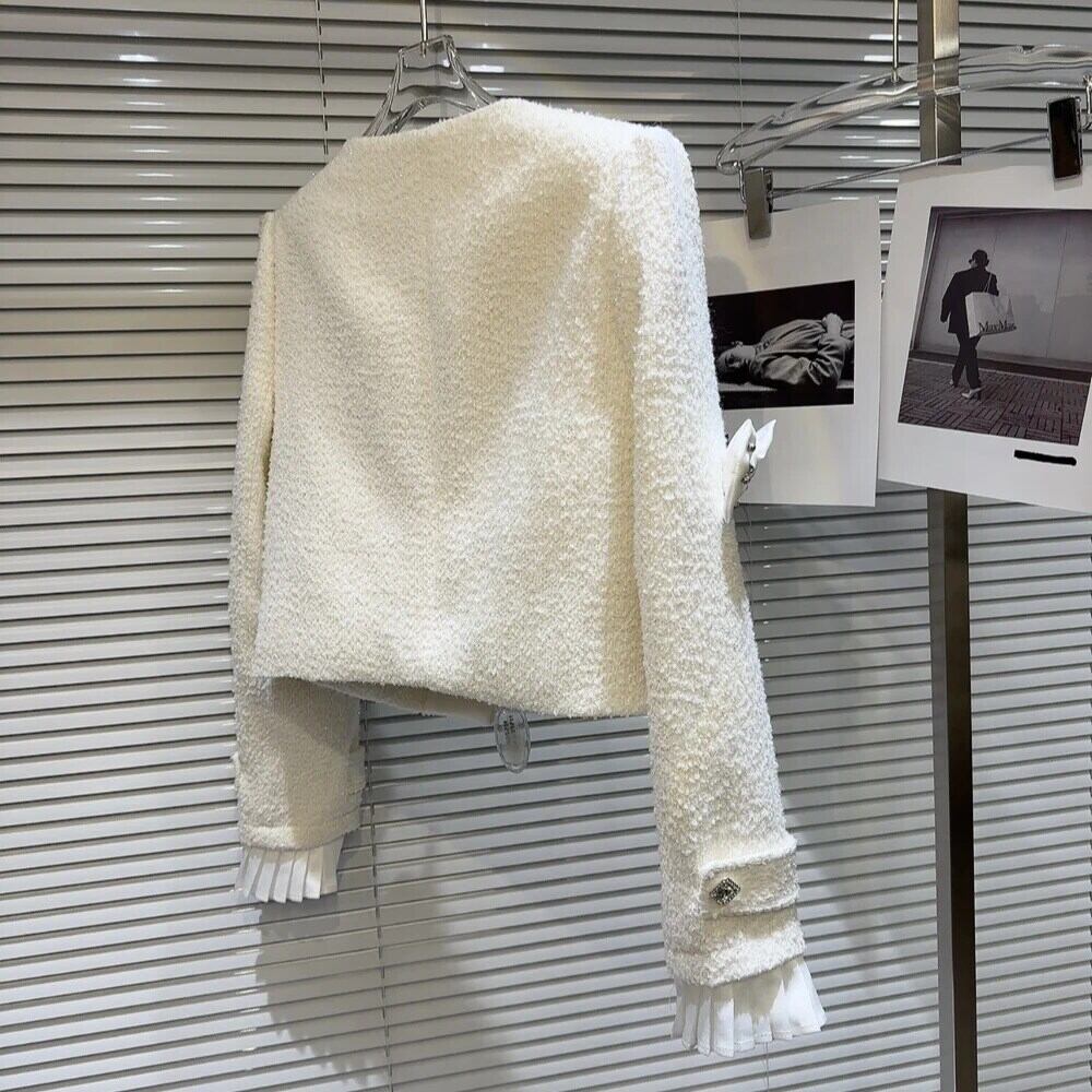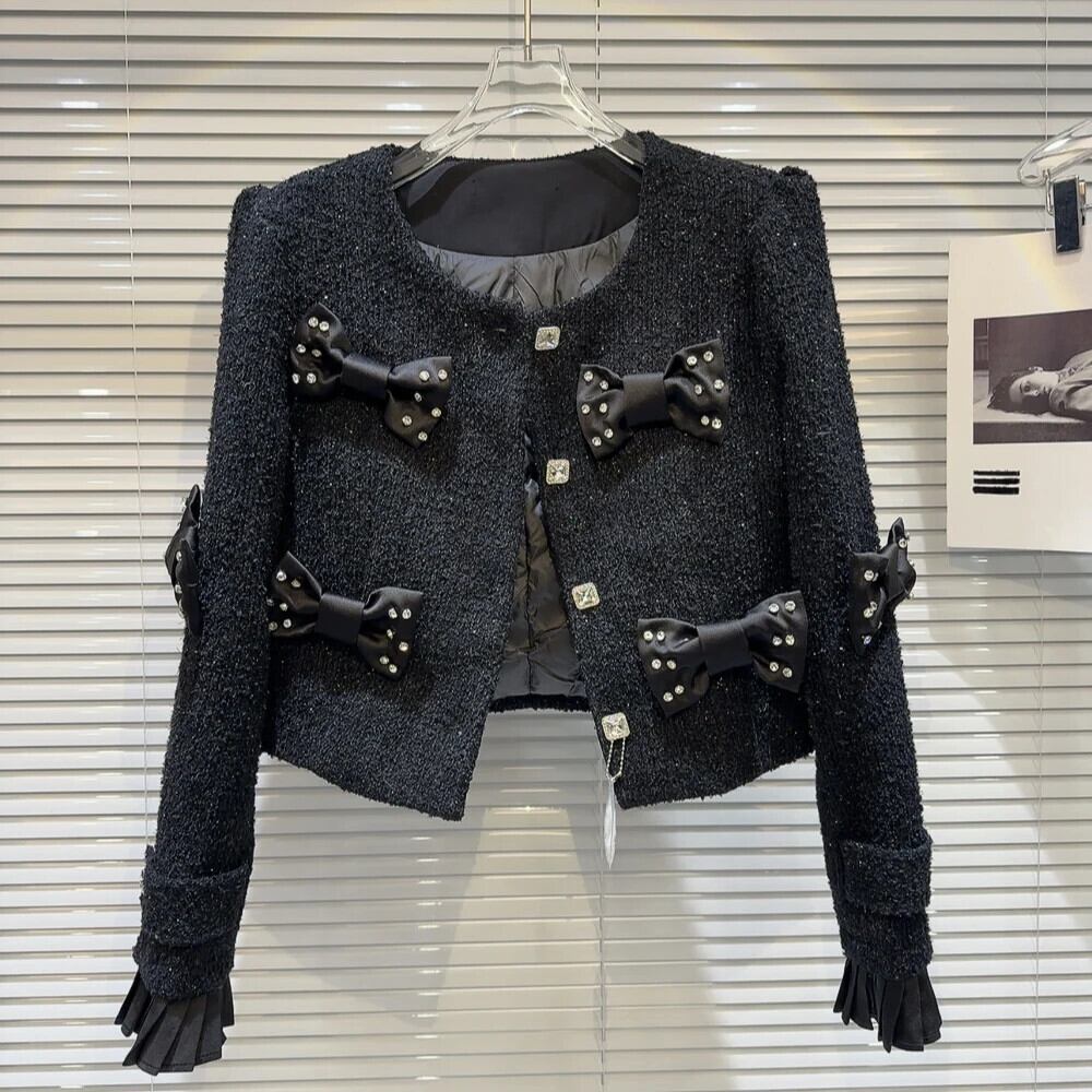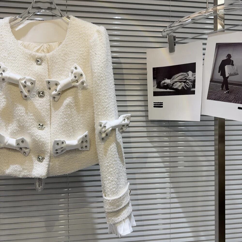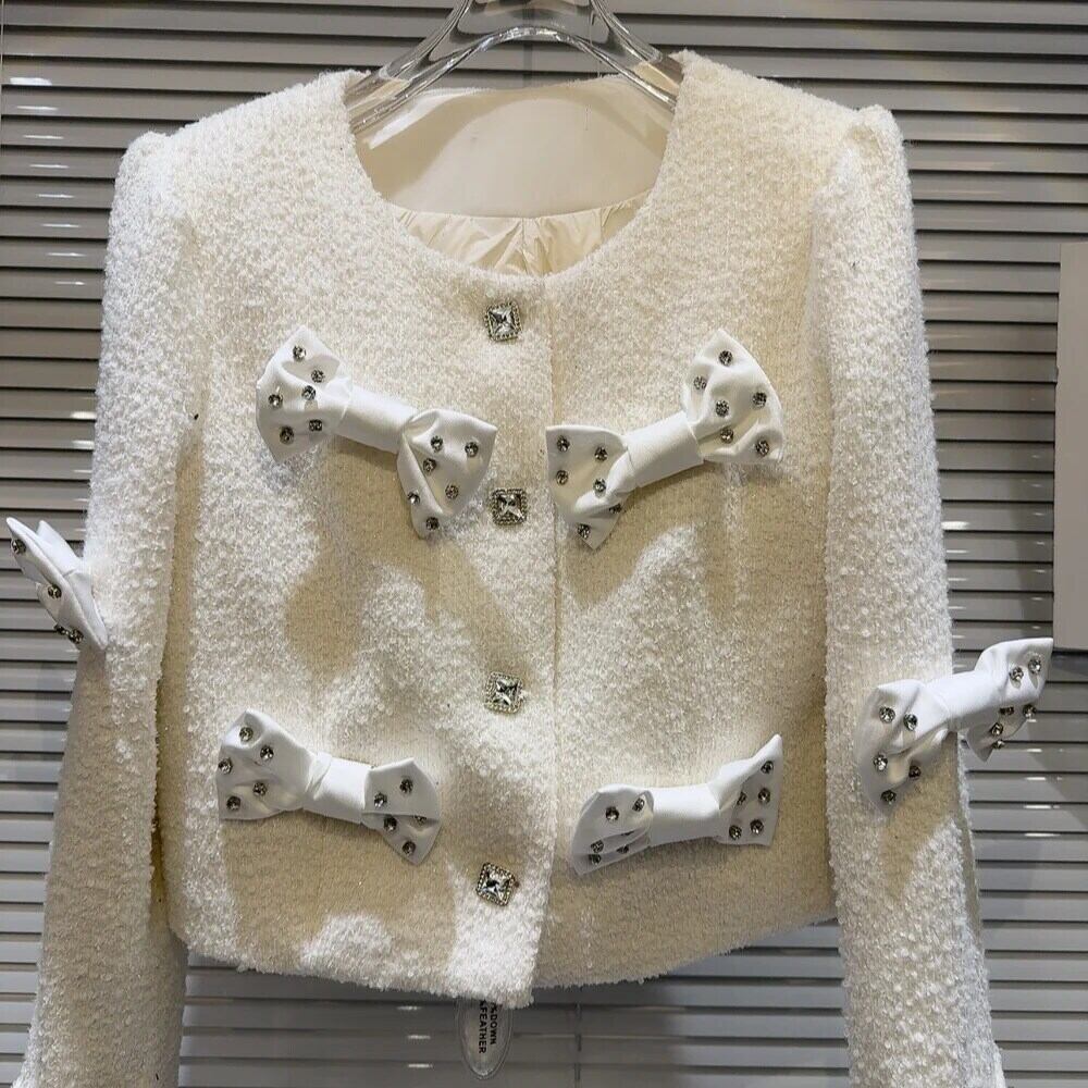 冬香り風弓水ダイヤモンドネイルビーズダウンインナー厚いツイードショートコートジャケット リボン ウィンター 冬物
