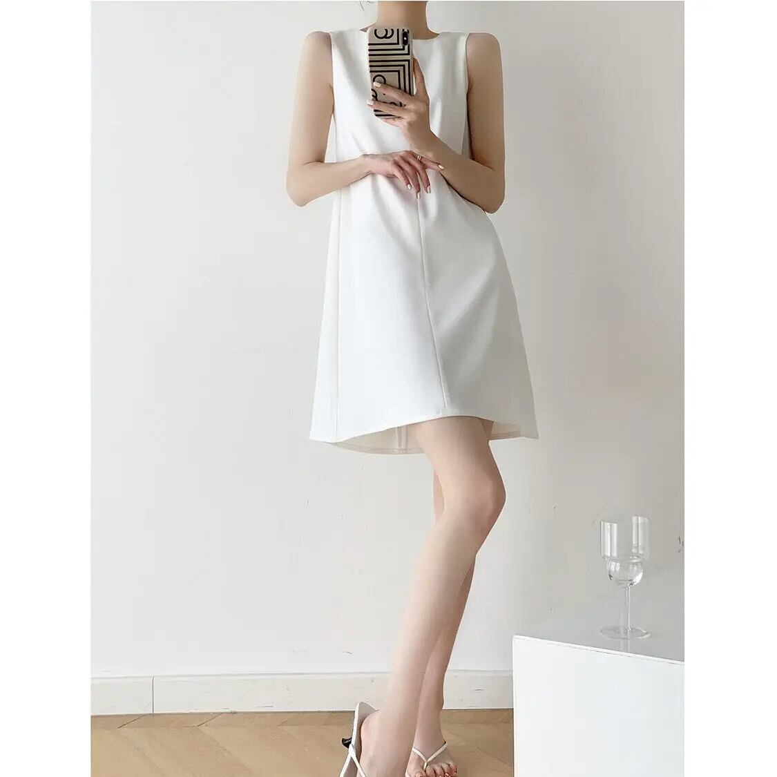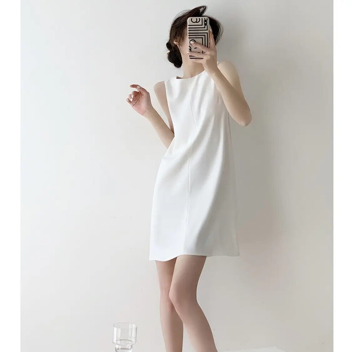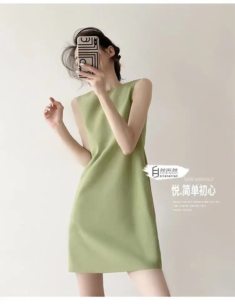 夏ヘップバーンスタイル気質シンプルタンクトップノースリーブストラップドレス サマー 夏物