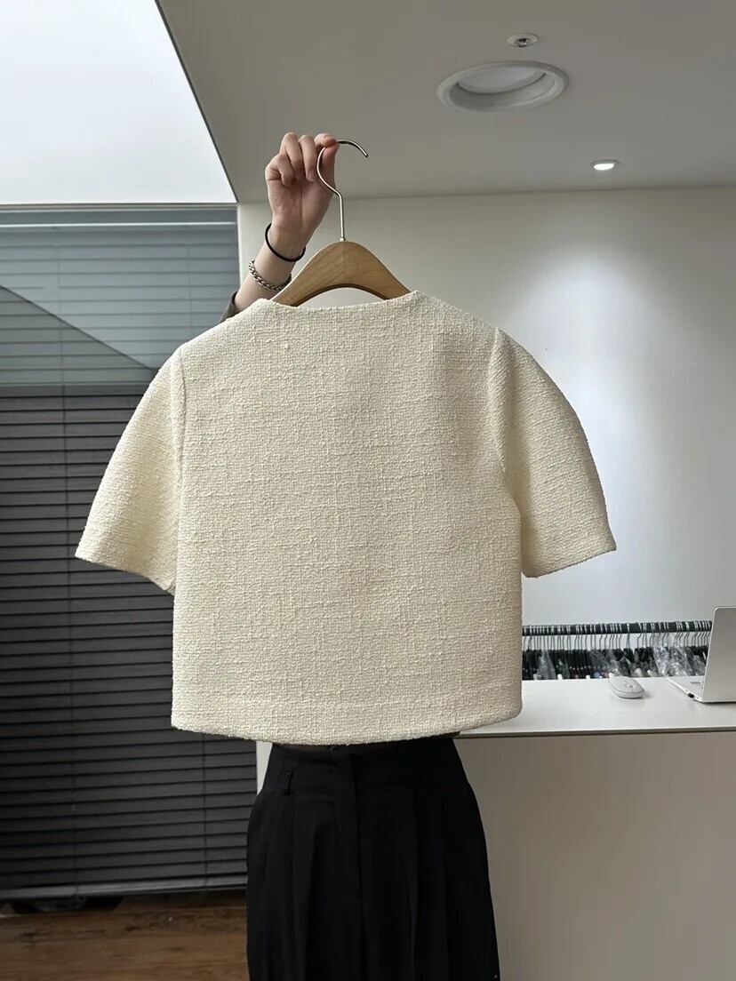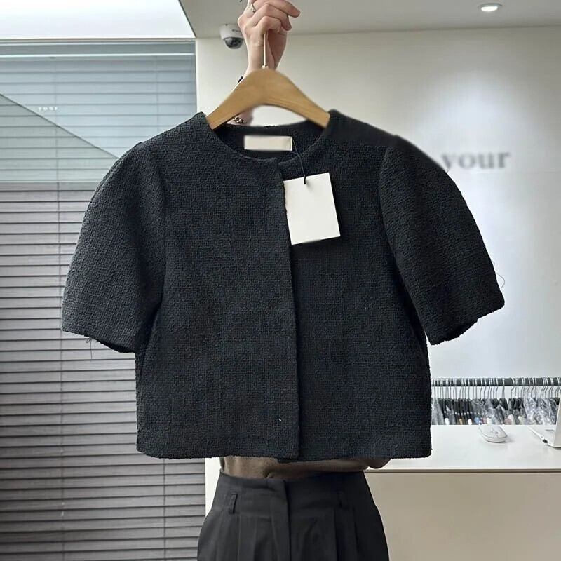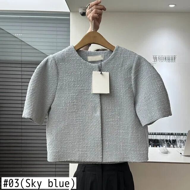 夏ミニマリストラウンドネック通勤ソリッドカラー半袖スーツジャケットブレザー ショート ハーフスリーブ サマー 夏物 Oネック