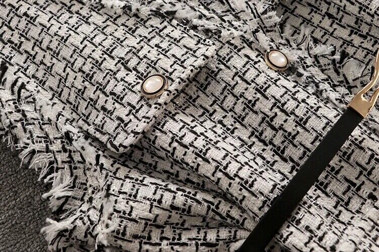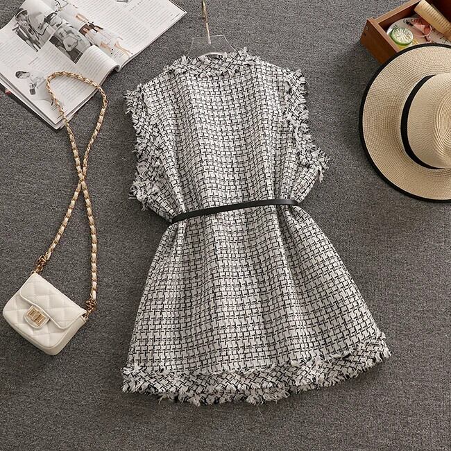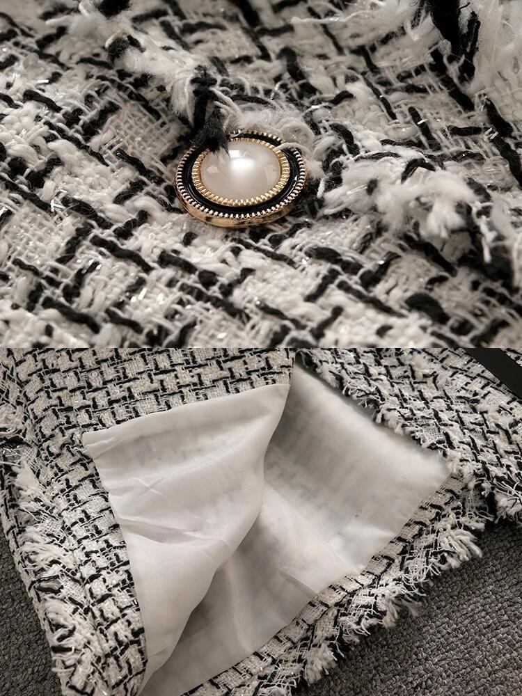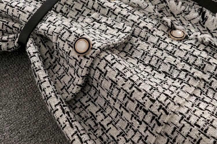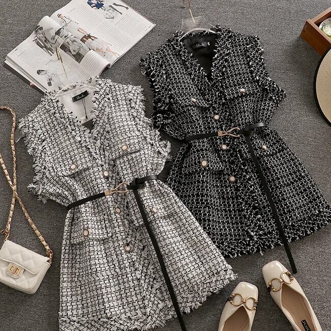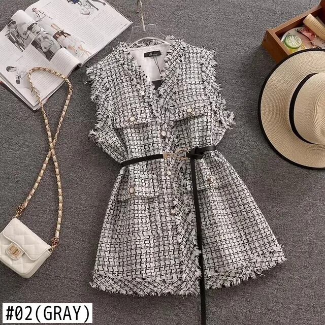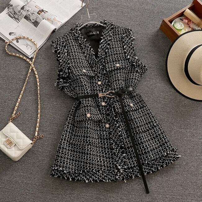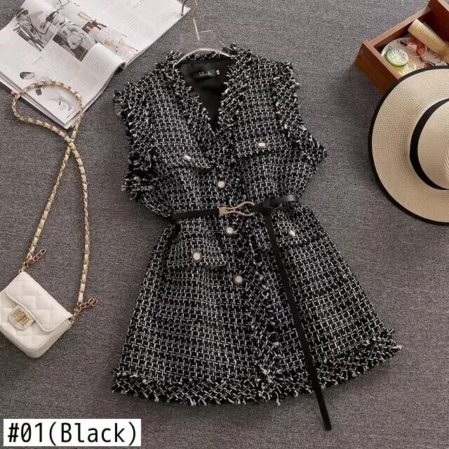 春秋アウター香り豊かスタイルレトロミッドレングスチェック柄ツイードベストコート スプリング 春物 オータム 秋物