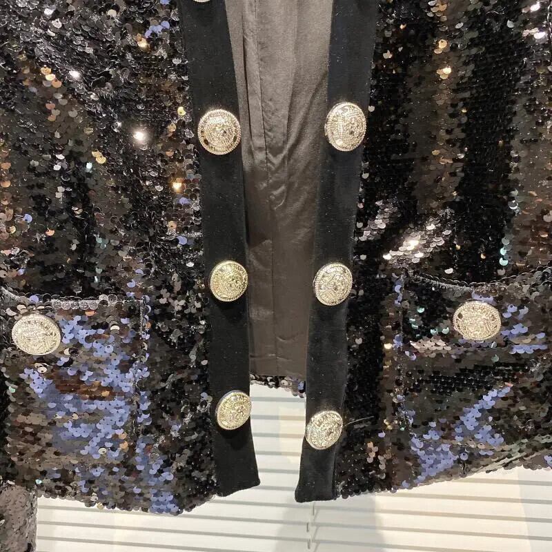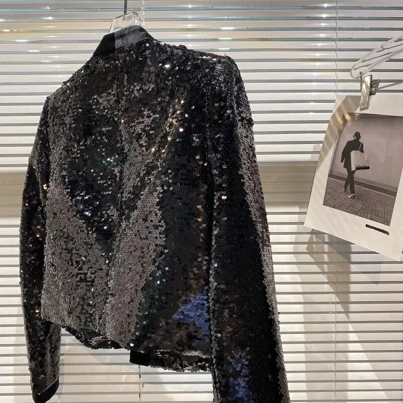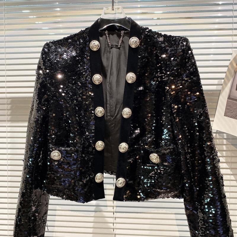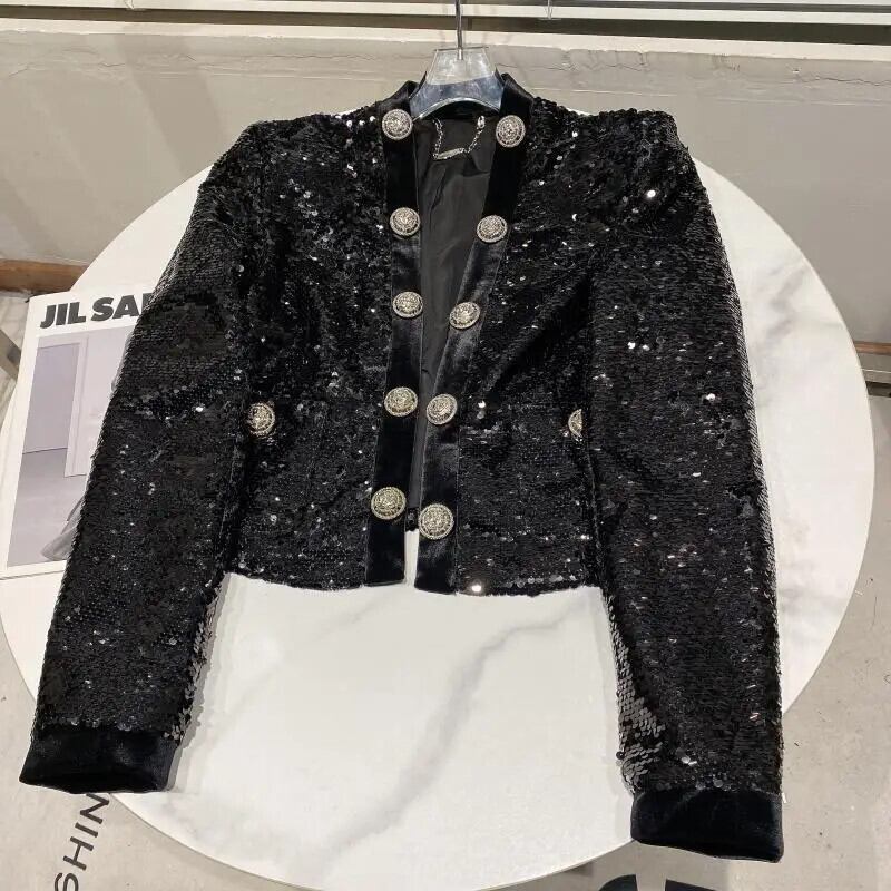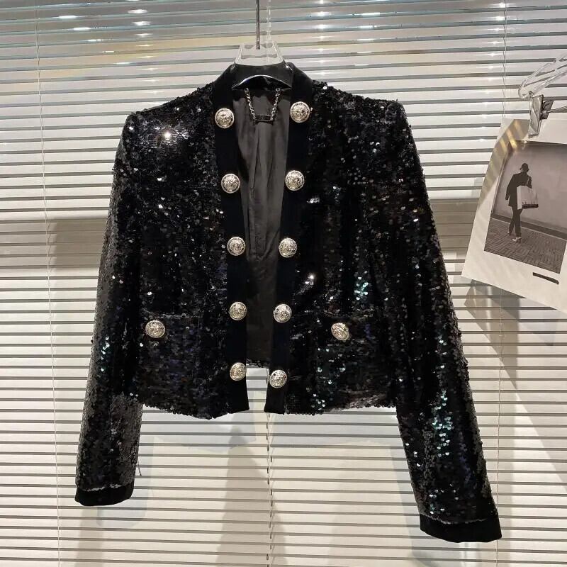 秋重工業フルスパンコール輝くダブルブレストジャケットコート オータム 秋物
