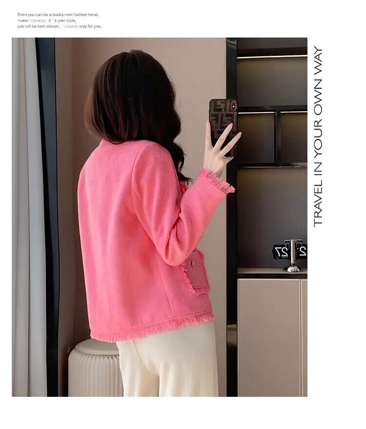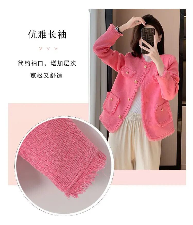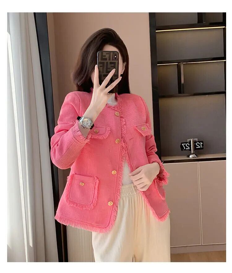 2024 春香り風粗ツイードファーエッジコートルーズジャケット スプリング 春物