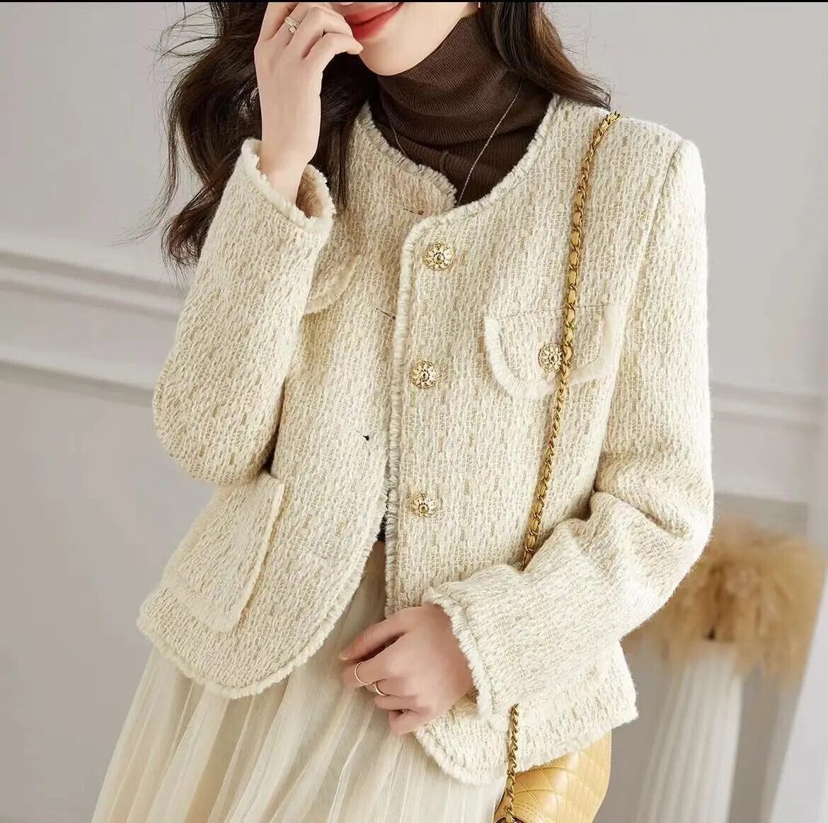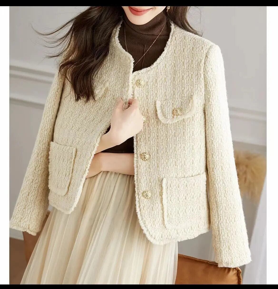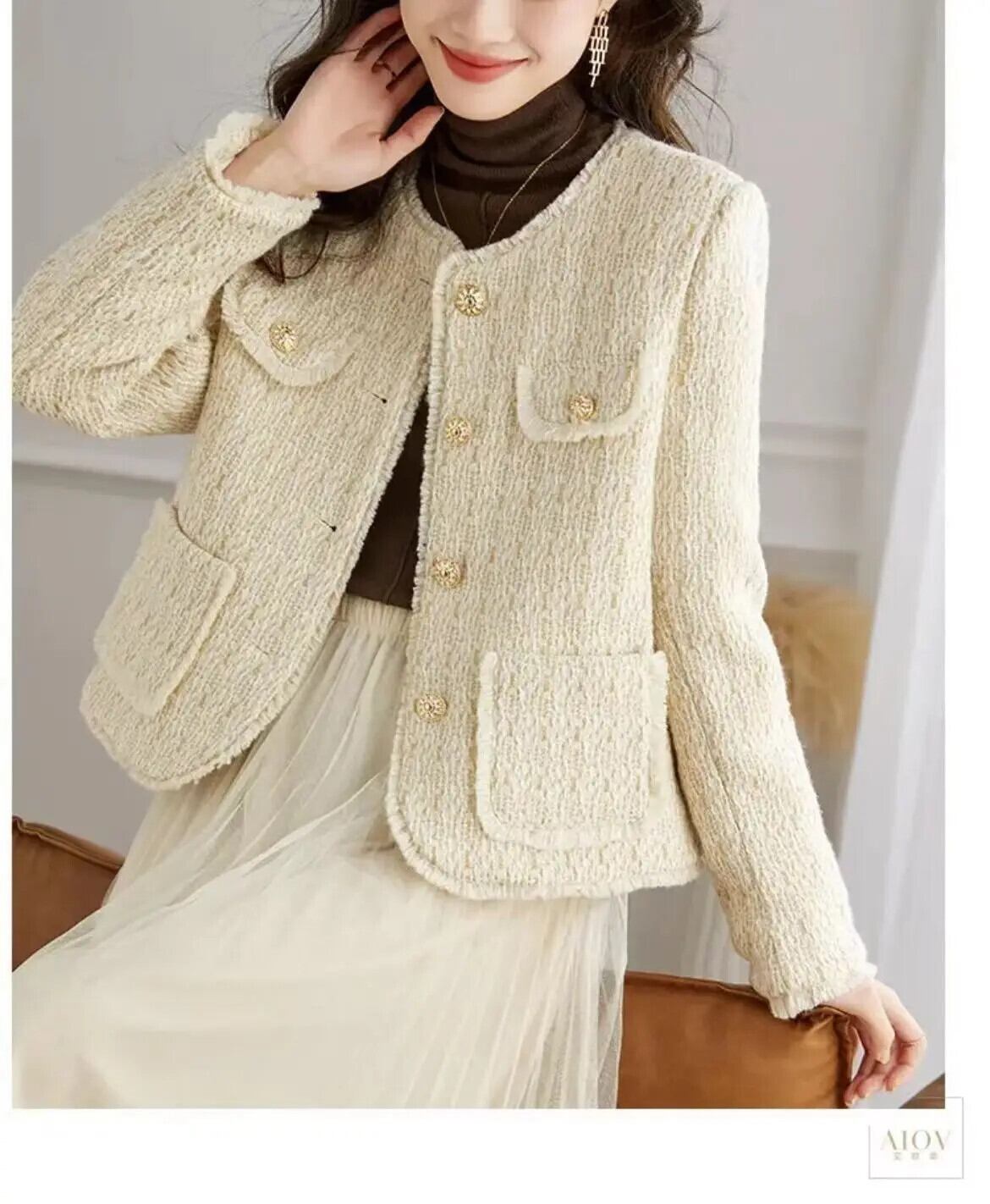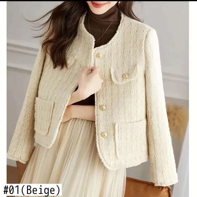 フレグランス ツイード ジャケット レディース フレンチ スリム ウール ショート コート アウター