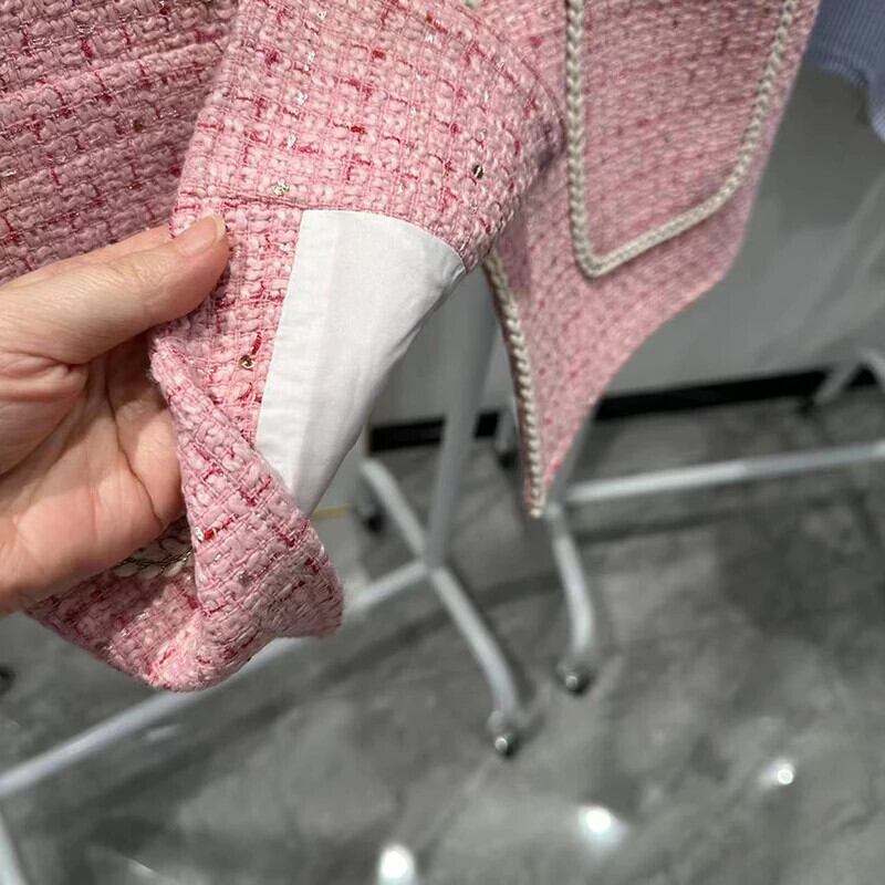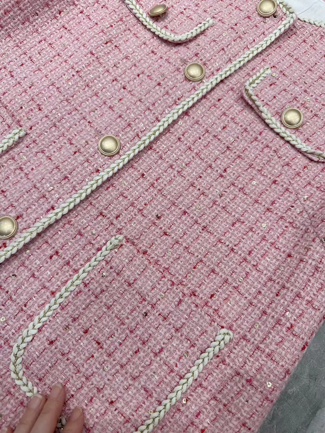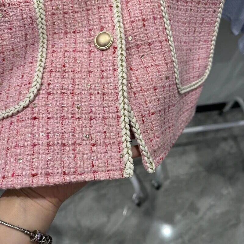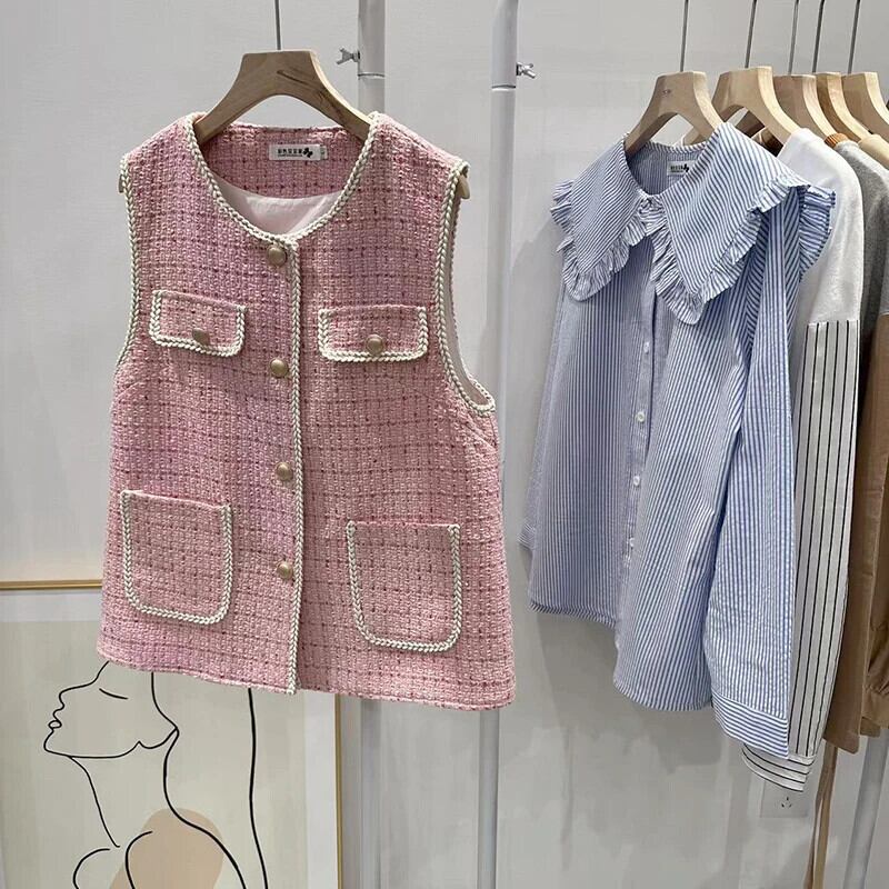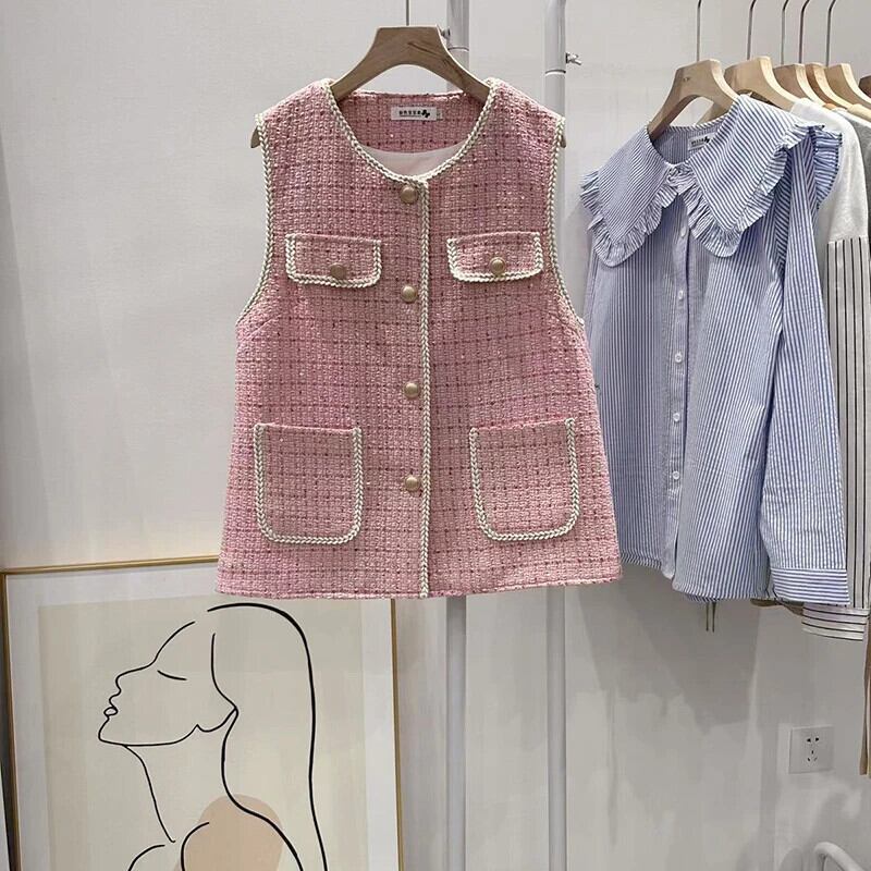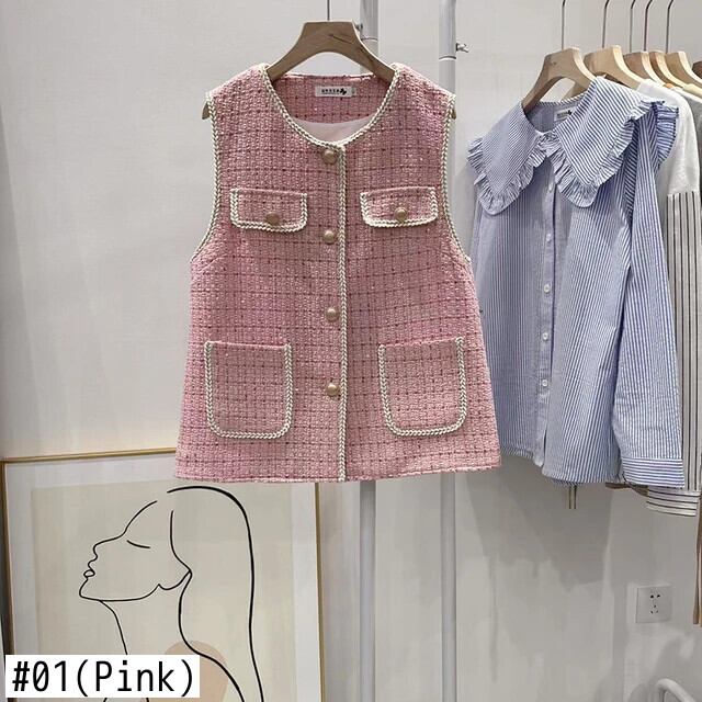 秋冬ピンクベストタンクトップフレグランススタイルノースリーブウェイトコート オータム 秋物 ウィンター 冬物