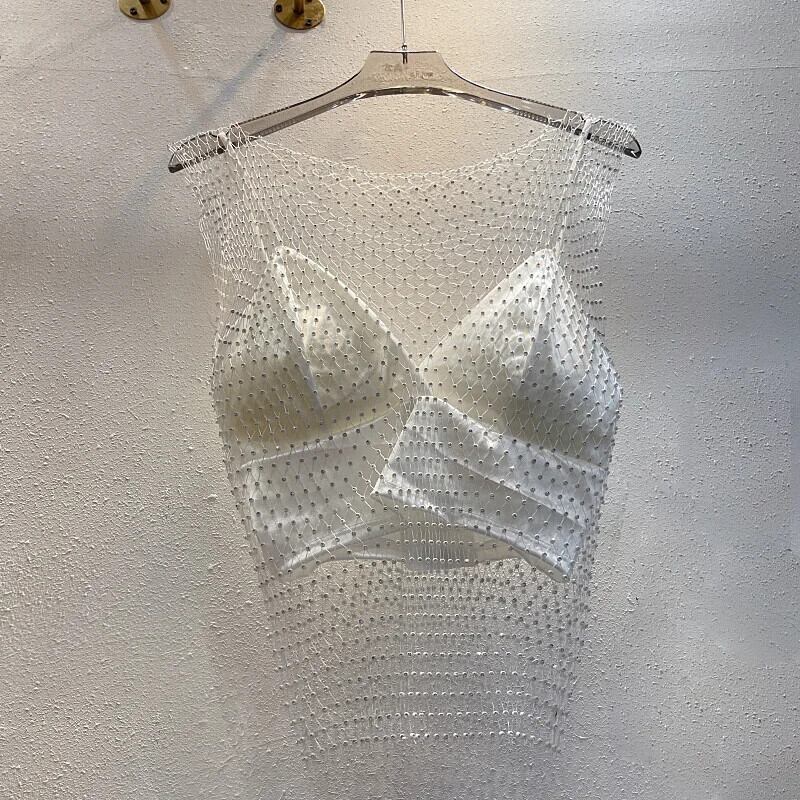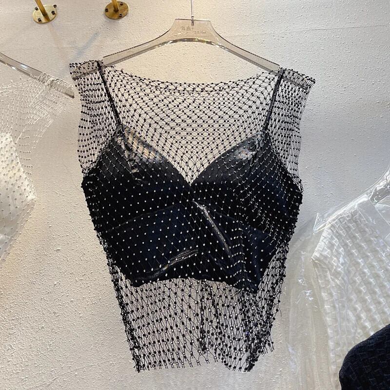 サマー ダイヤモンド メッシュ トップ レディース ユニーク タンク ブラ ストラップ トレンディ レディース 夏物