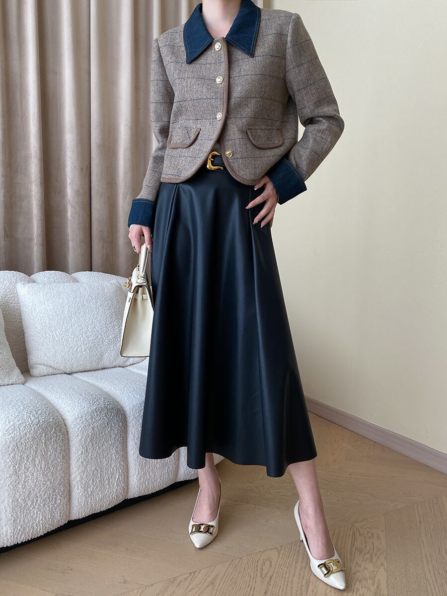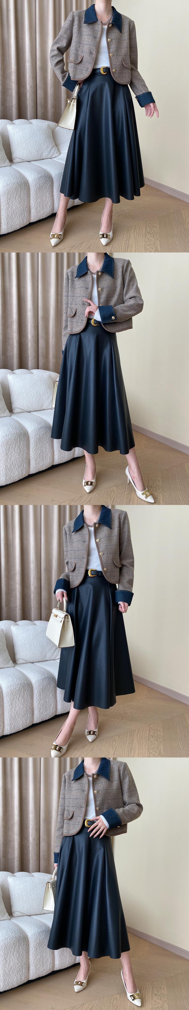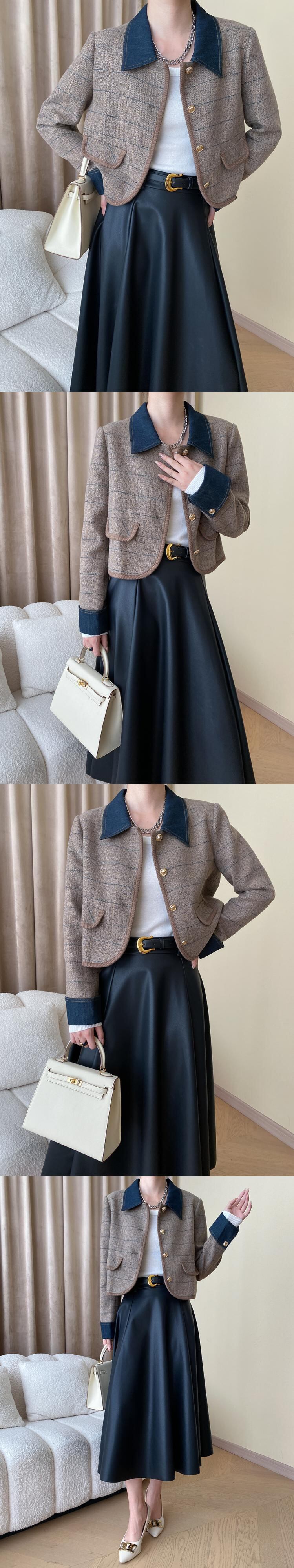秋冬レディースフレグランスウールコートデニムスプライスショートフィットジャケット オータム 秋物 ウィンター 冬物