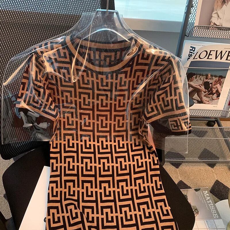 コーヒーサマースリムフィットジャカードアイスミッドレングスニットドレス 夏物 シルク