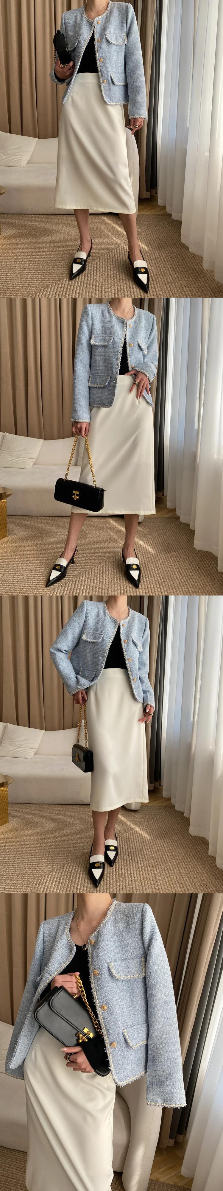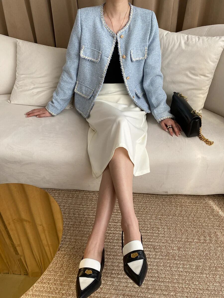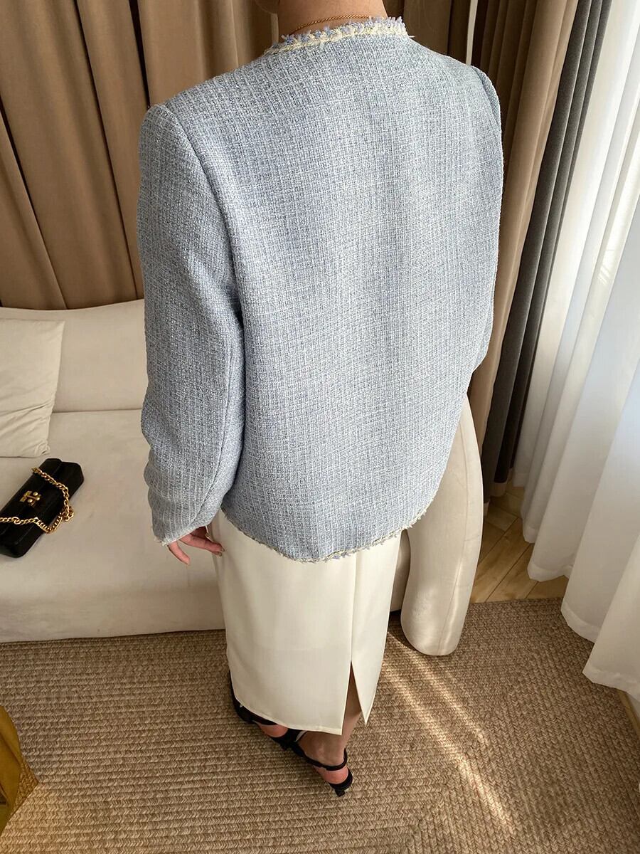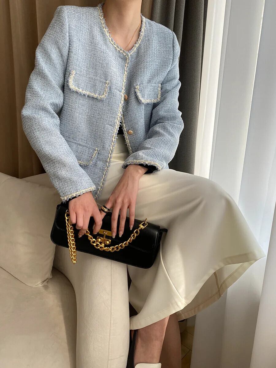 クロップドツイードジャケット春シックゴールドボタンショートコート長袖アウター ロング スプリング 春物