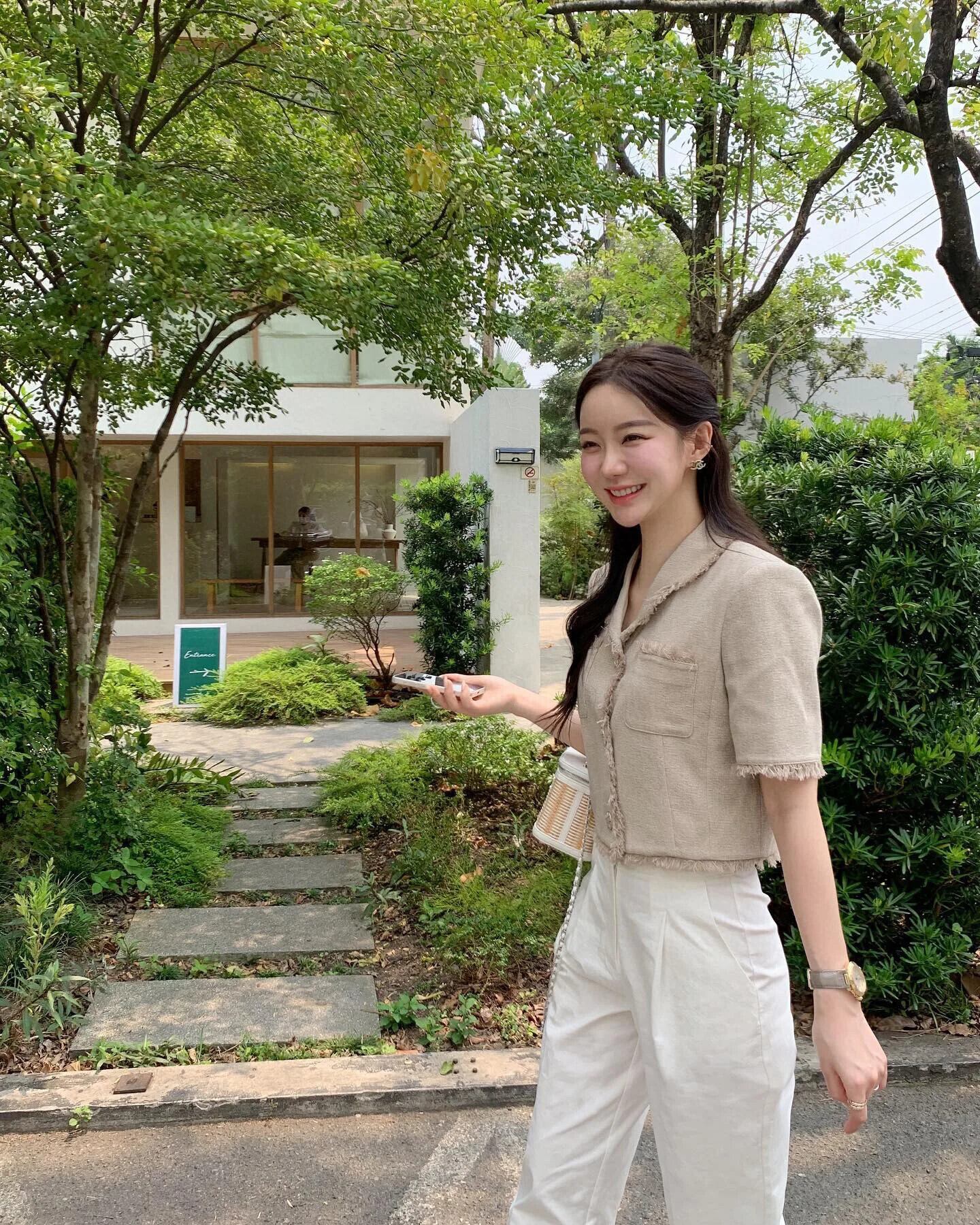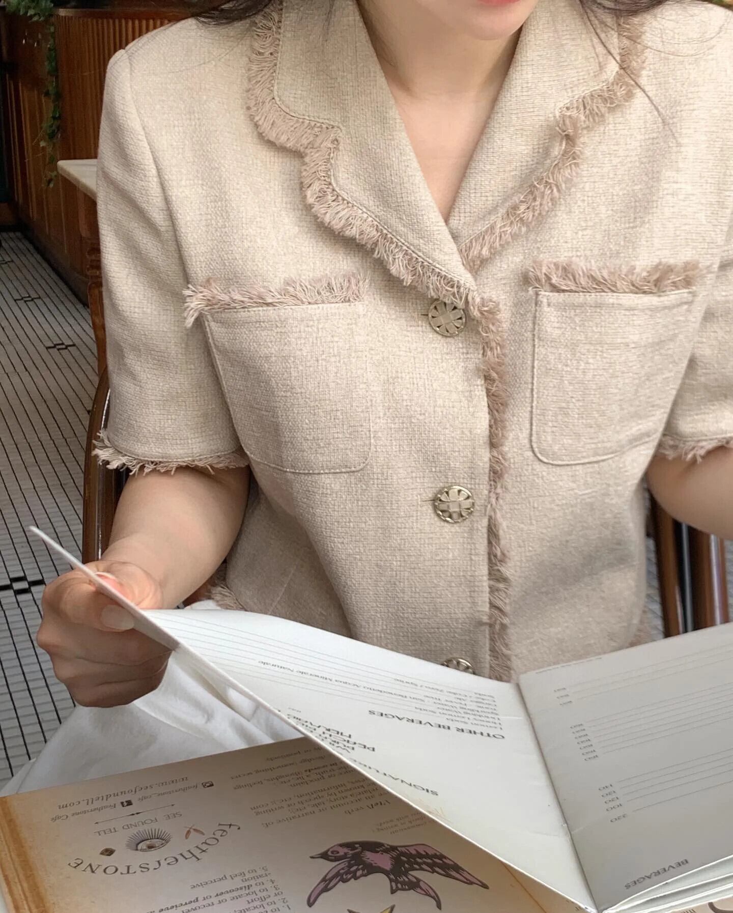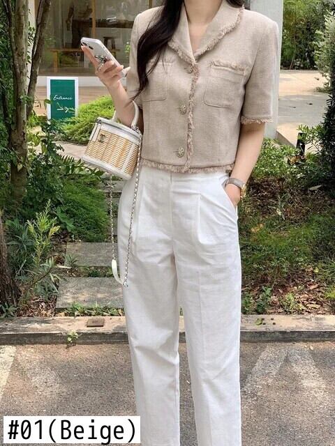 レディース夏レトロスタイルダブルポケット粗いウールエッジショートコートジャケット サマー 夏物