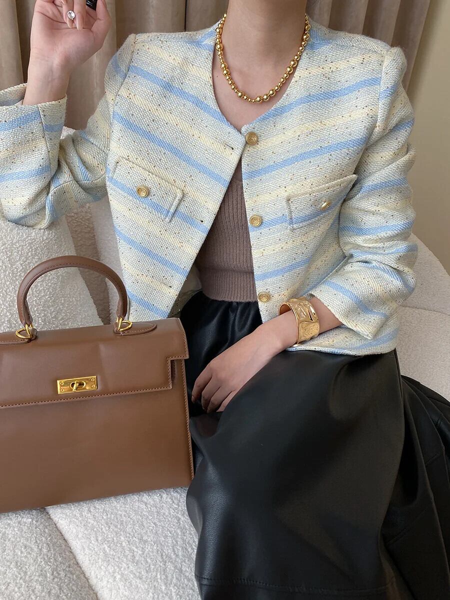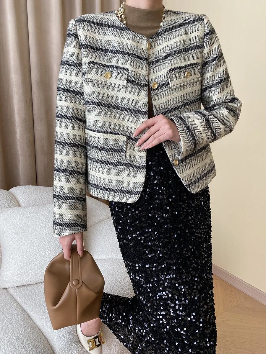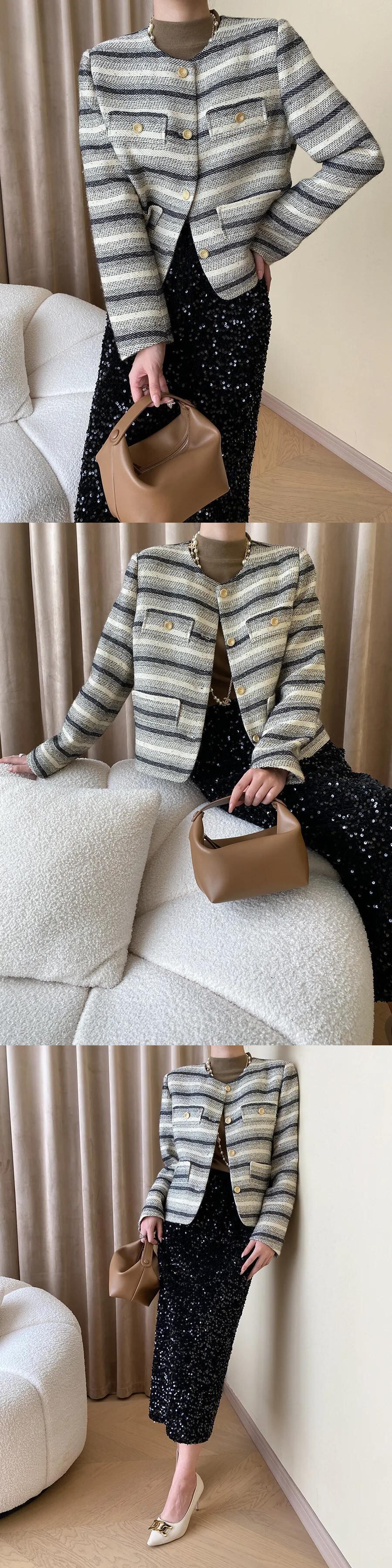 テクスチャード織チェック柄通勤フレグランスコートスパンコール秋ジャケット レッド オータム 秋物