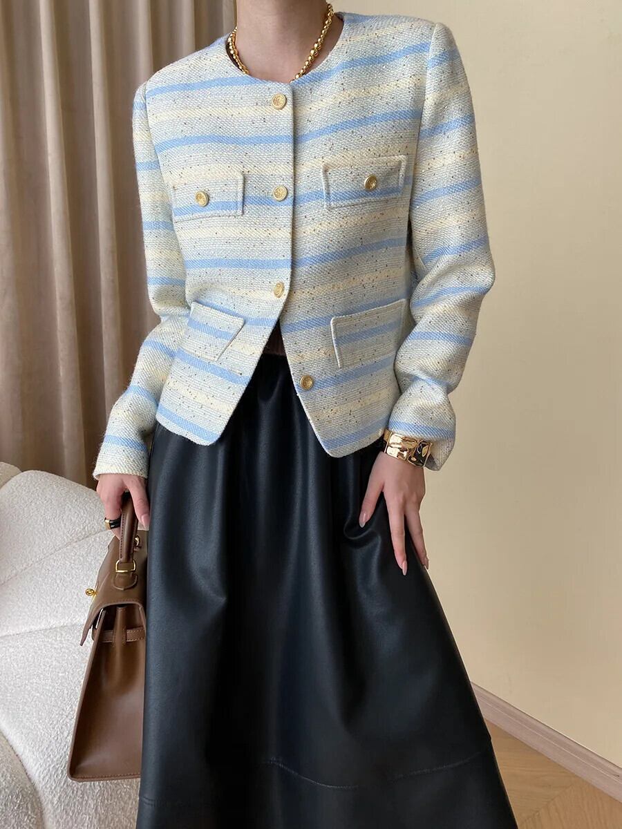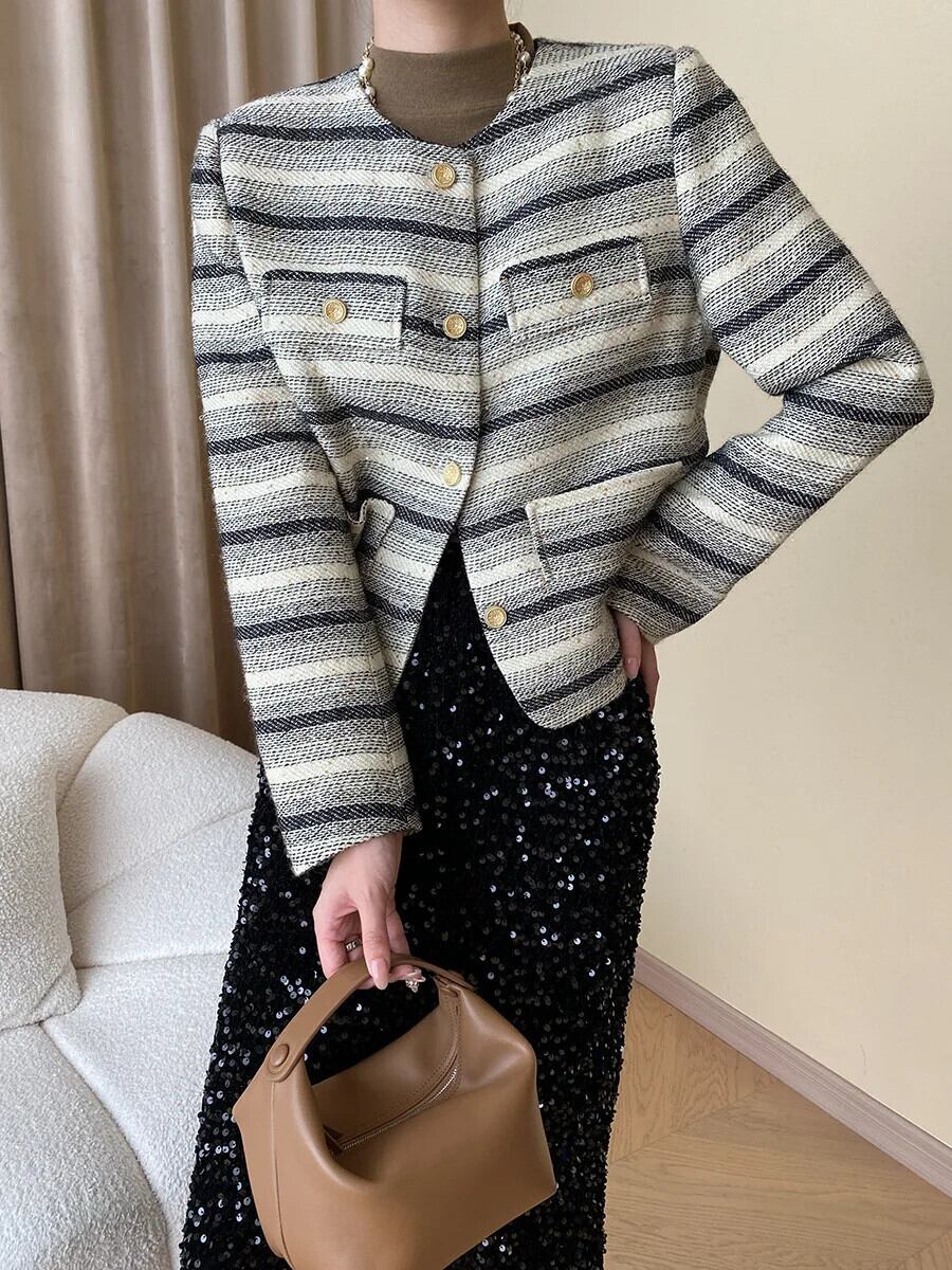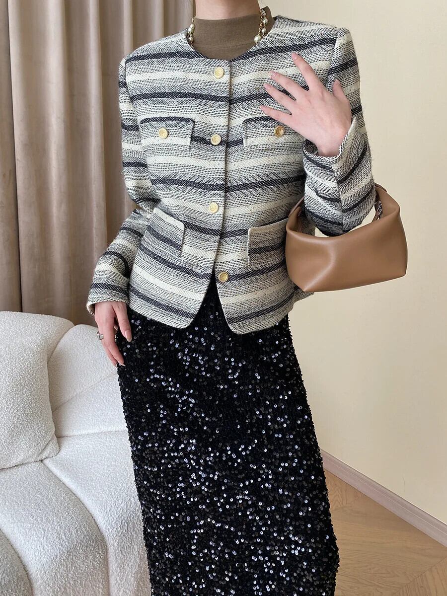 テクスチャード織チェック柄通勤フレグランスコートスパンコール秋ジャケット レッド オータム 秋物