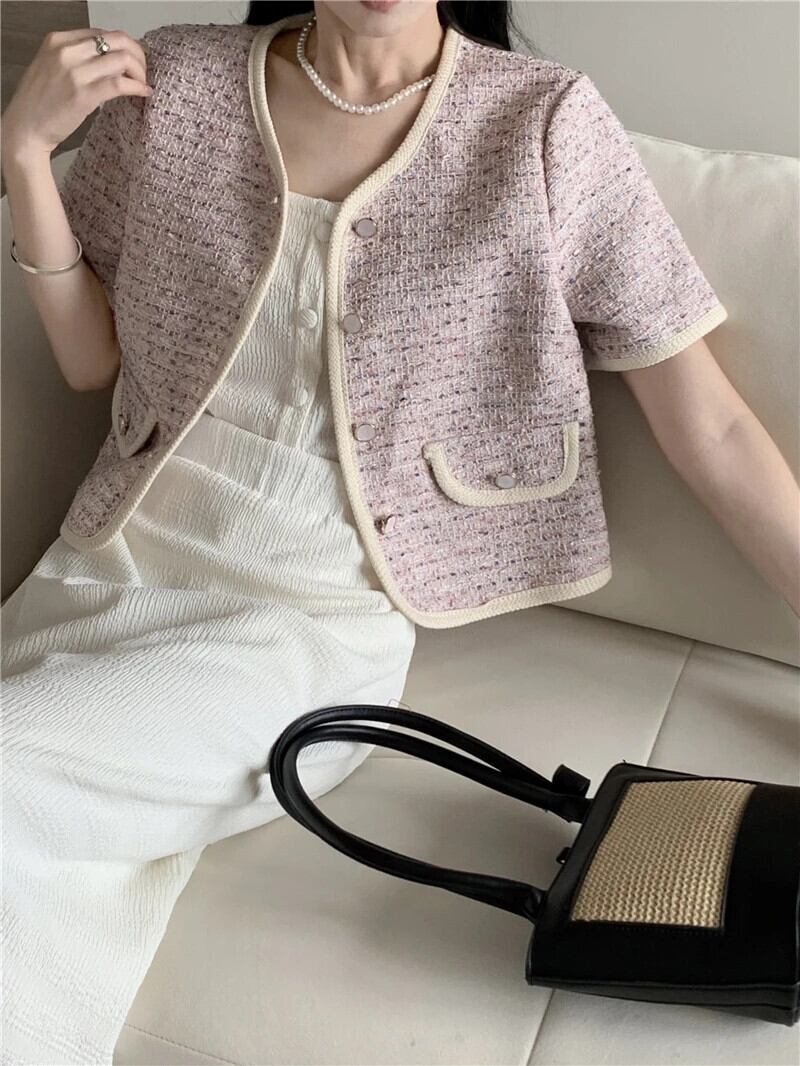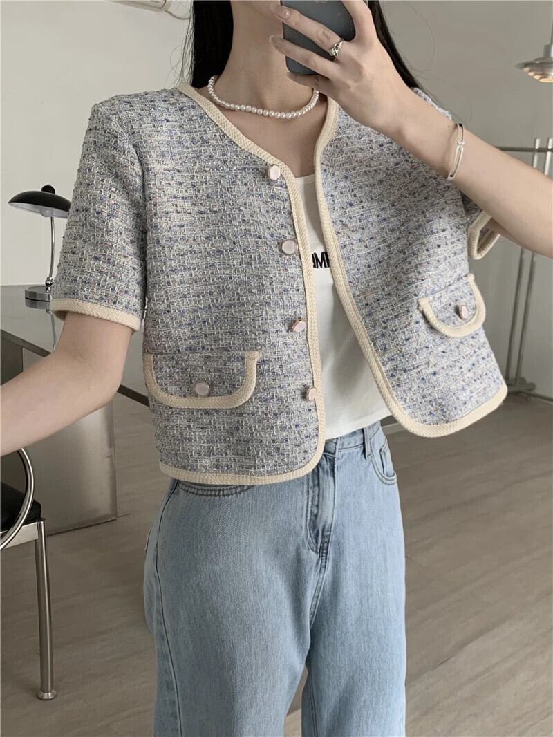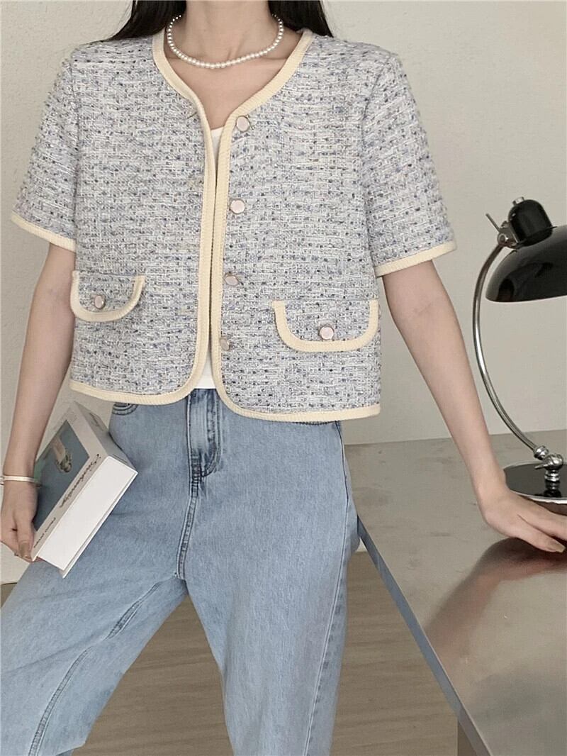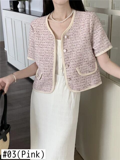 レディース 2024 春夏シックアウター粗紡ショートフレグランスコートジャケット スプリング 春物 サマー 夏物