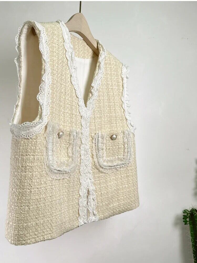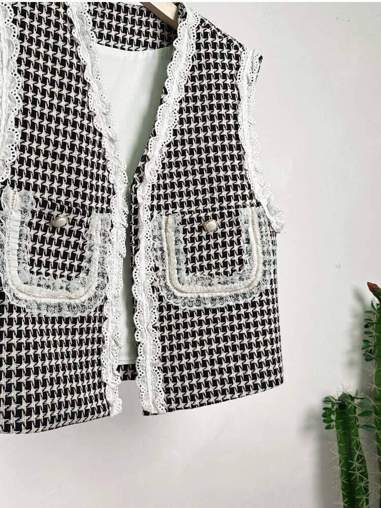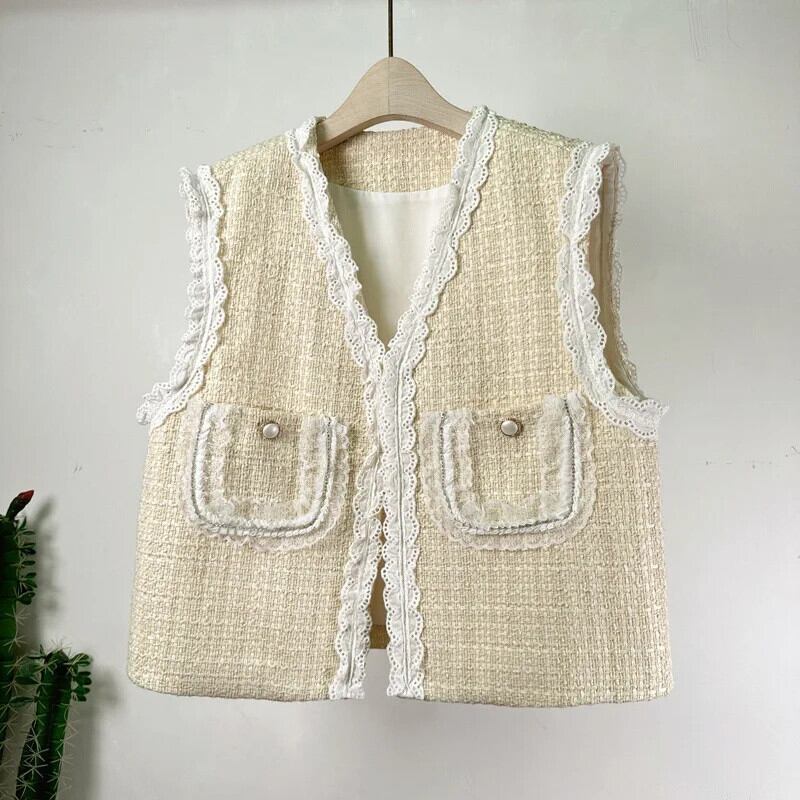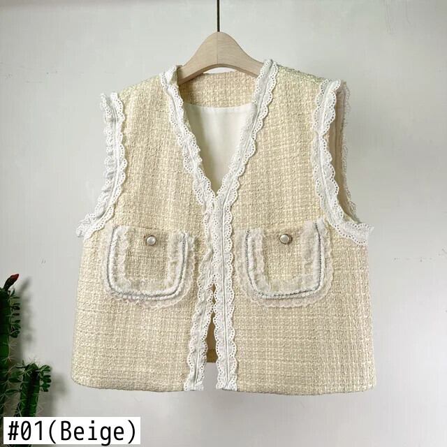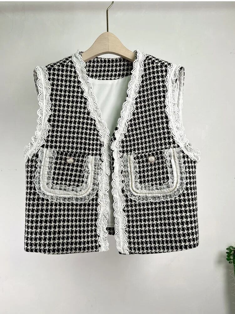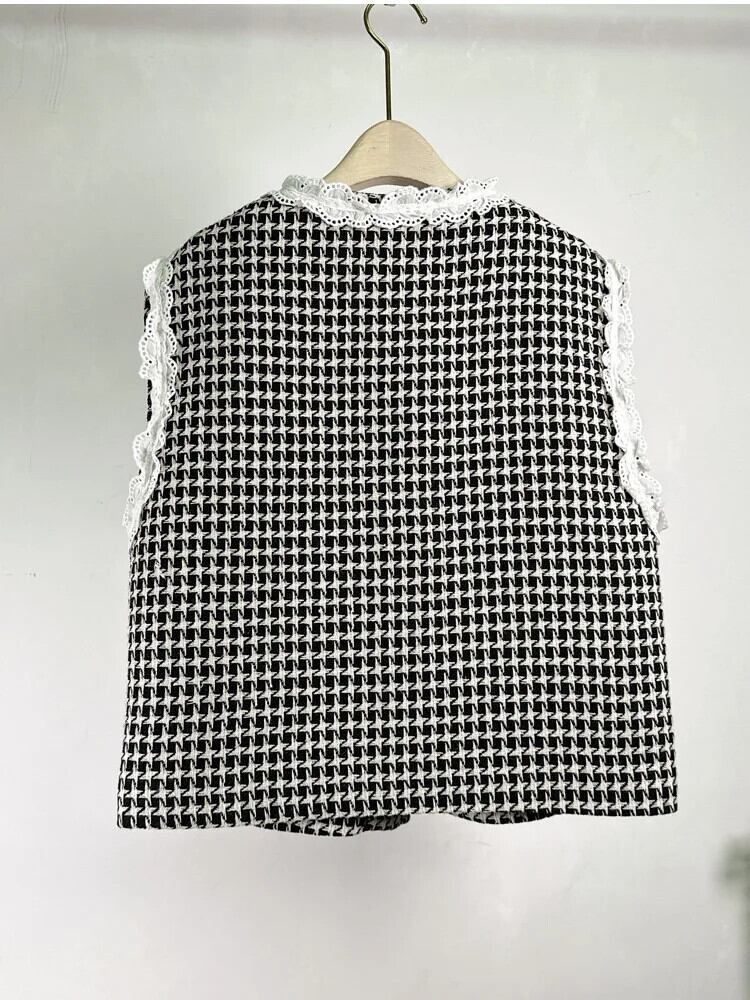 夏香りチェック柄ルーズ春ベスト甘いチョッキ 大人ガーリー スウィート キュート カジュアル スプリング 春物 サマー 夏物